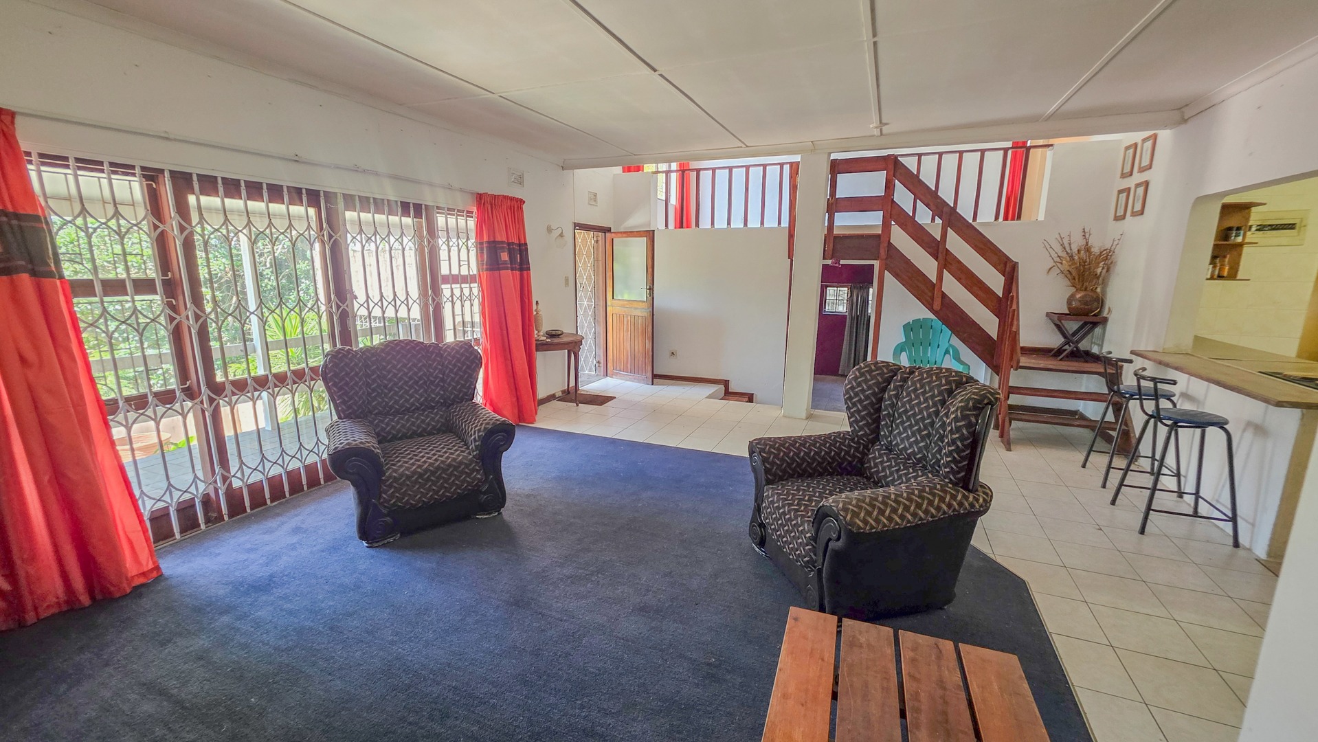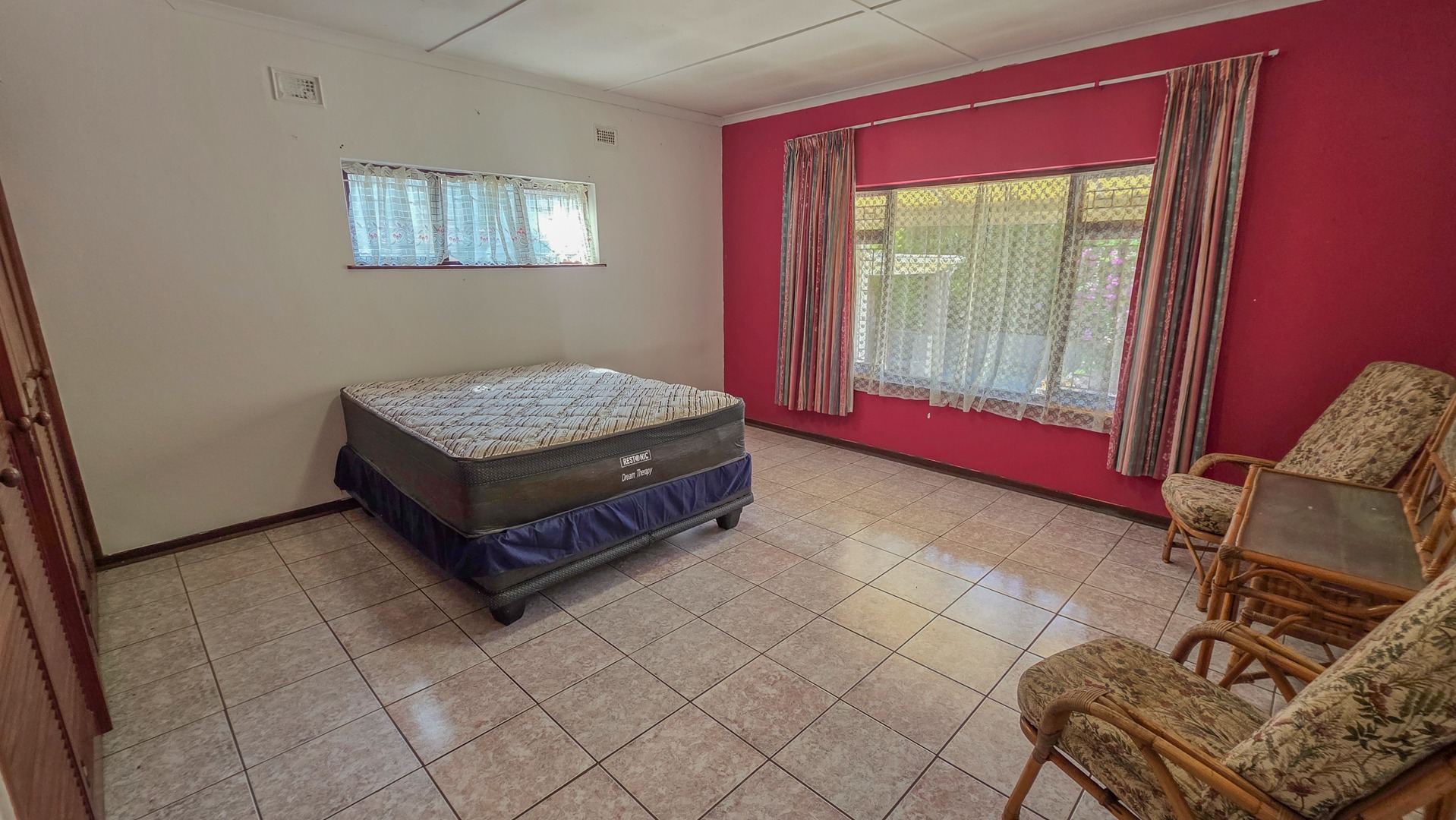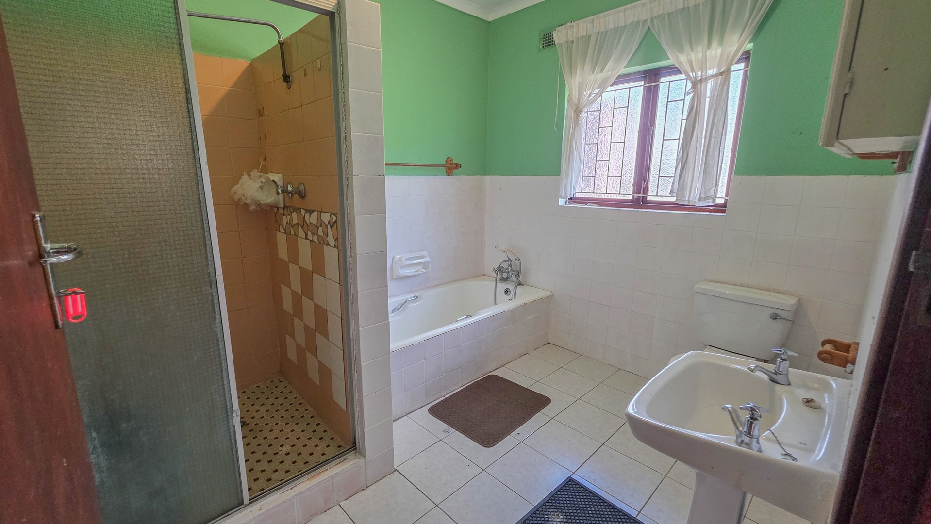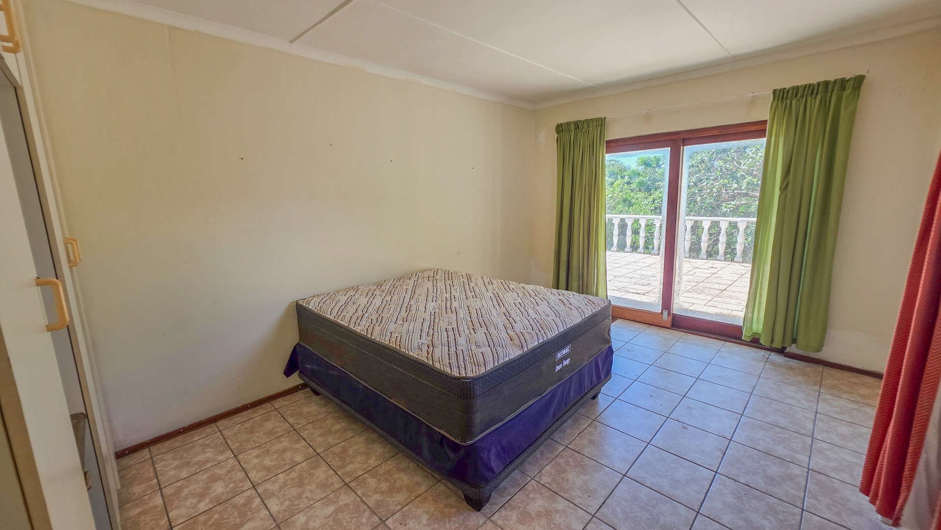 The main bedroom sits upstairs. You get built in cupboards, a private lounge and a patio with a clear view over the property. The upstairs bathroom sits a few steps down from the landing and includes a bath, toilet and basin. The outdoor area offers strong value. The pool sits next to a large entertainment space with built in braai facilities. The front yard gives you open space for recreation or future plans.