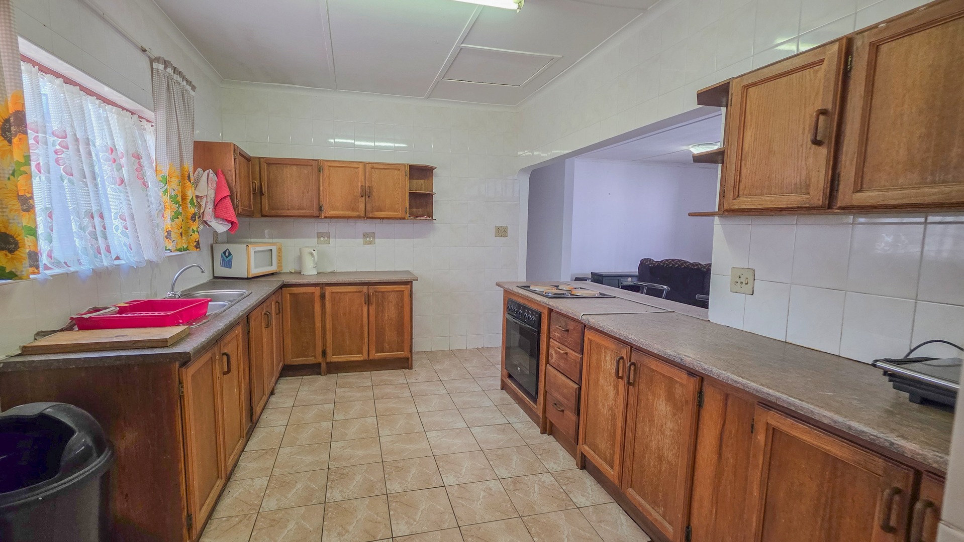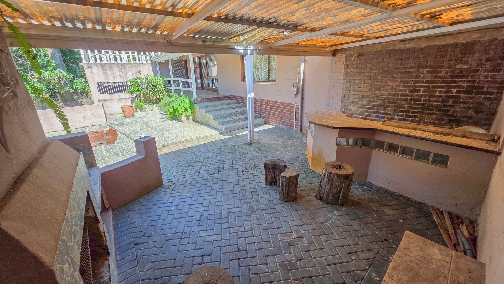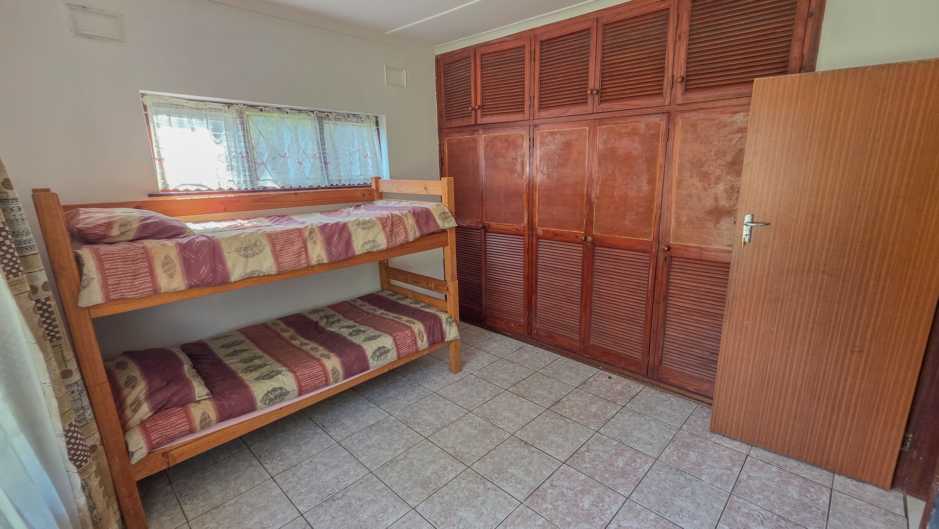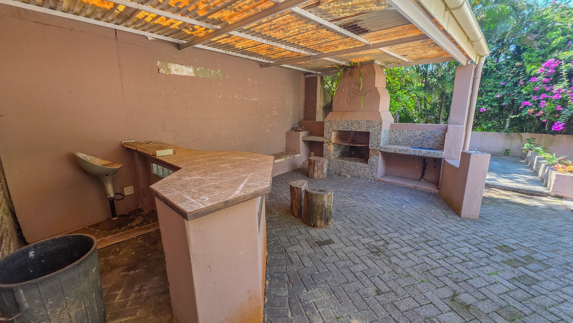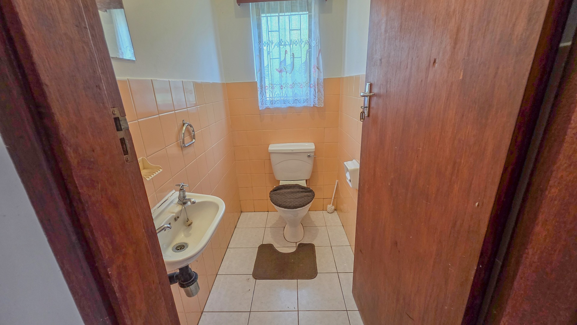 The main bedroom sits upstairs. You get built in cupboards, a private lounge and a patio with a clear view over the property. The upstairs bathroom sits a few steps down from the landing and includes a bath, toilet and basin. The outdoor area offers strong value. The pool sits next to a large entertainment space with built in braai facilities. The front yard gives you open space for recreation or future plans.