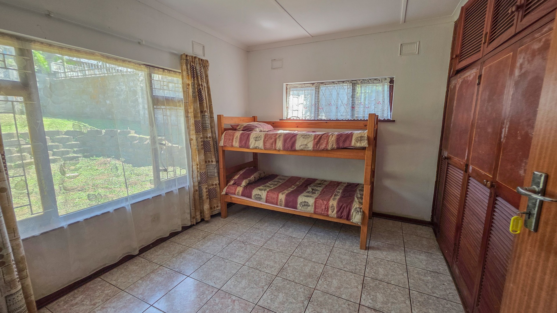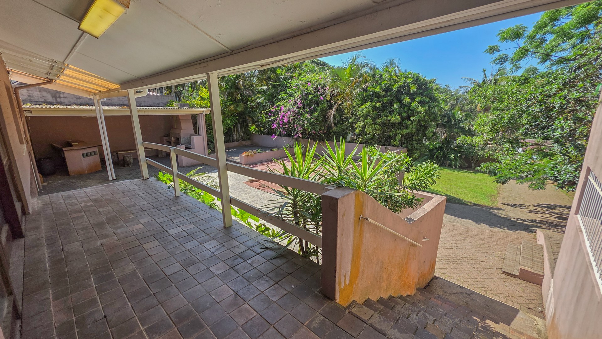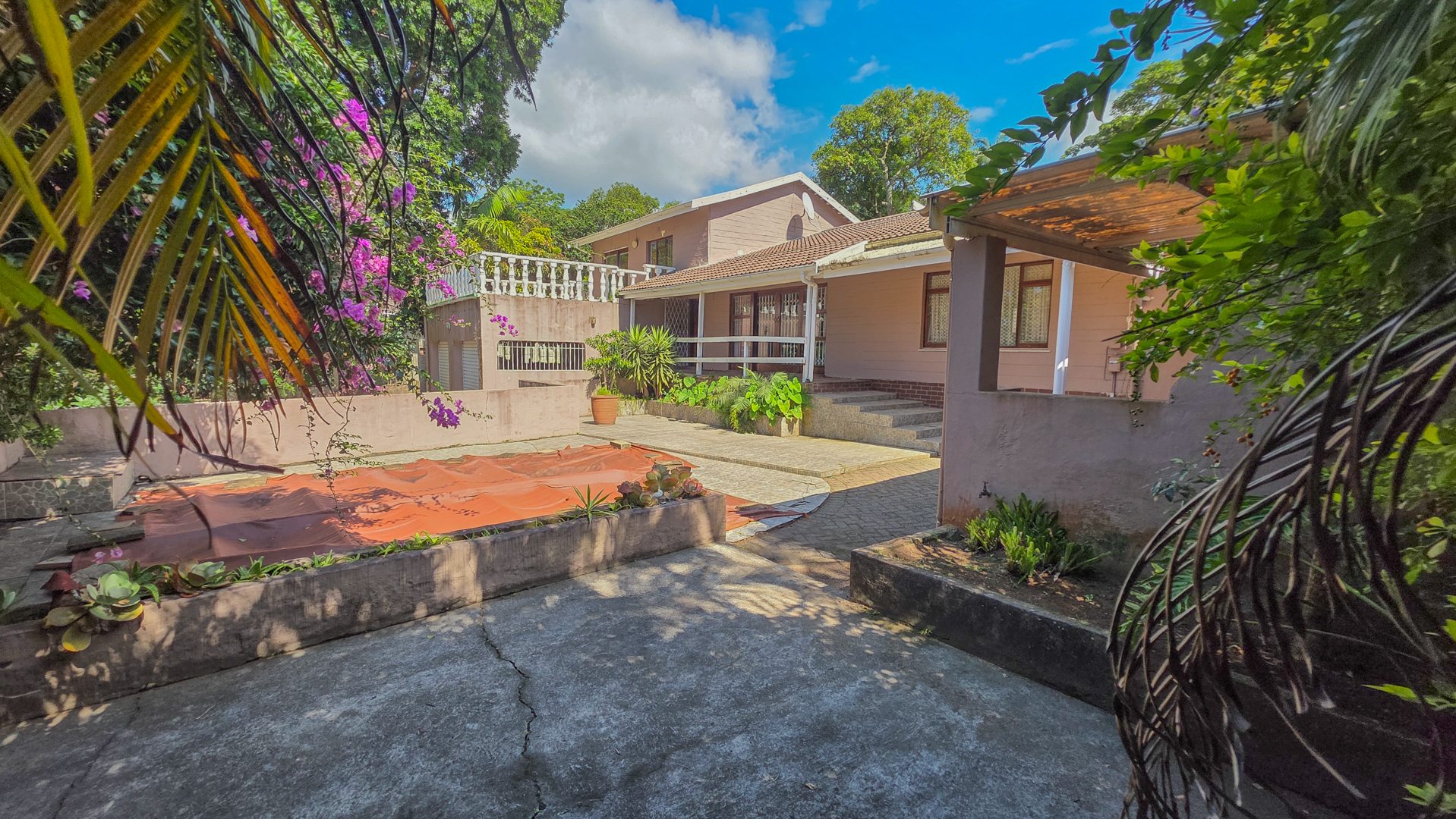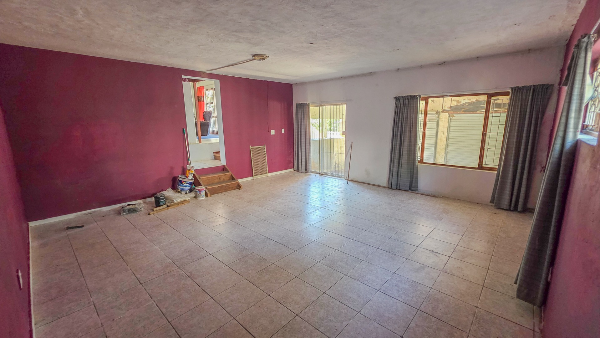 The main bedroom sits upstairs. You get built in cupboards, a private lounge and a patio with a clear view over the property. The upstairs bathroom sits a few steps down from the landing and includes a bath, toilet and basin. The outdoor area offers strong value. The pool sits next to a large entertainment space with built in braai facilities. The front yard gives you open space for recreation or future plans.