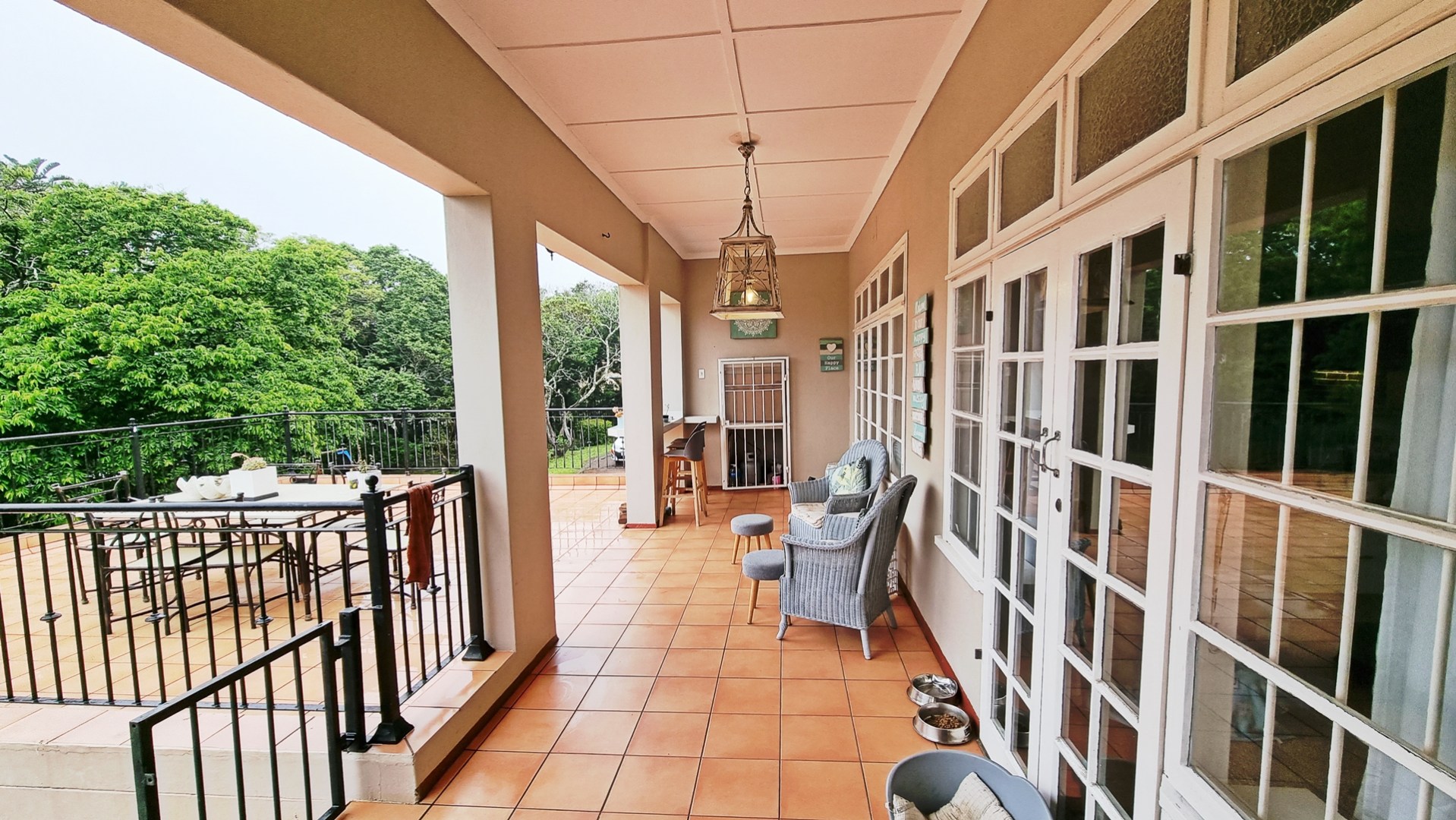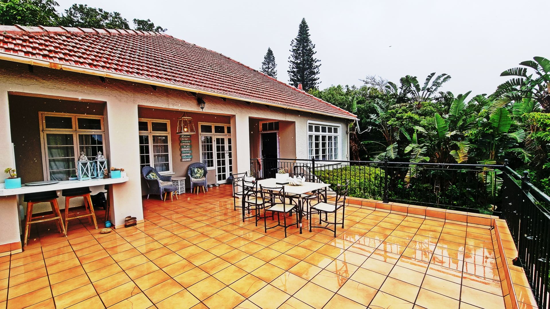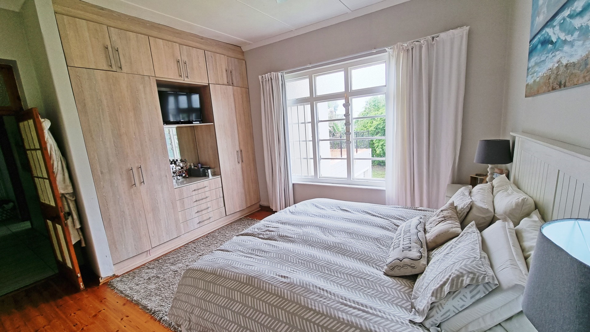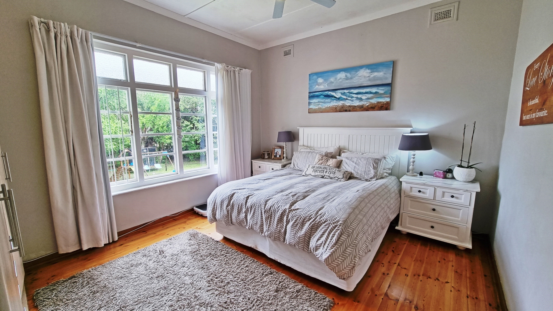 This charming, much-loved home is perfect for a family looking for privacy and a huge garden where children can safely play and enjoy themselves. As you drive into the property you will find the ample visitors parking and a double garage with automated doors. The home has beautiful wooden floors giving it a feeling of warmth. The home is light and bright and allows for a lot of natural light to filter through into the living areas as well as the bedrooms. The beautiful kitchen is newly renovated with pro quartz countertops, ample modern cupboards, five plate gas stove and a separate scullery. The four bedrooms and lounge are all air conditioned for those beautiful hot, South Coast summers.