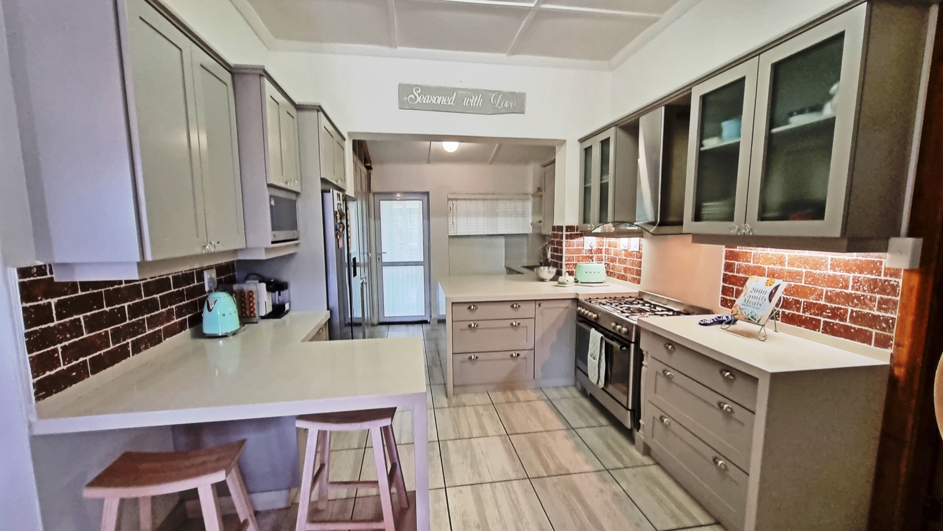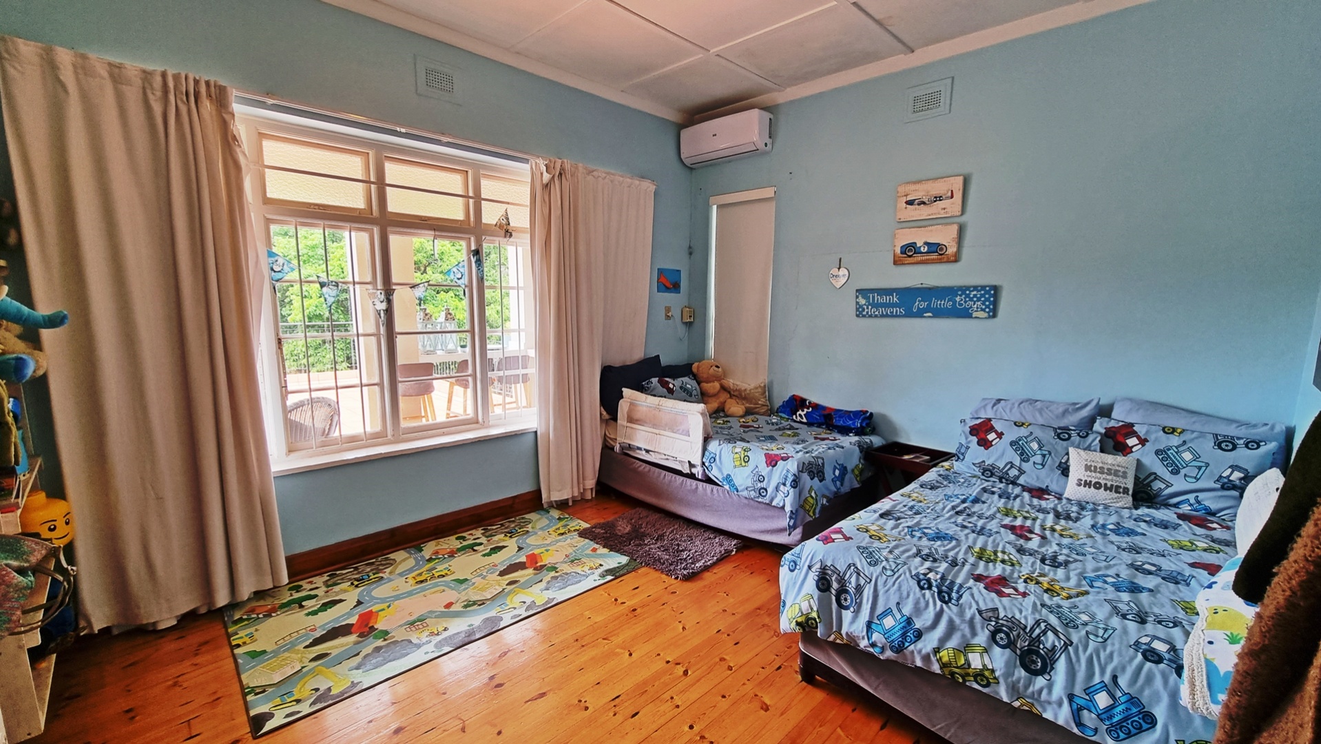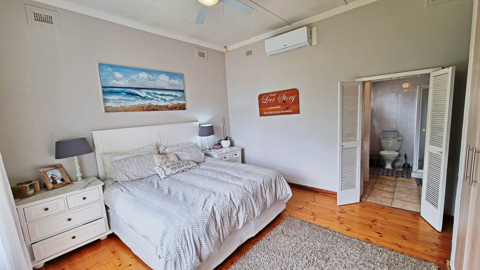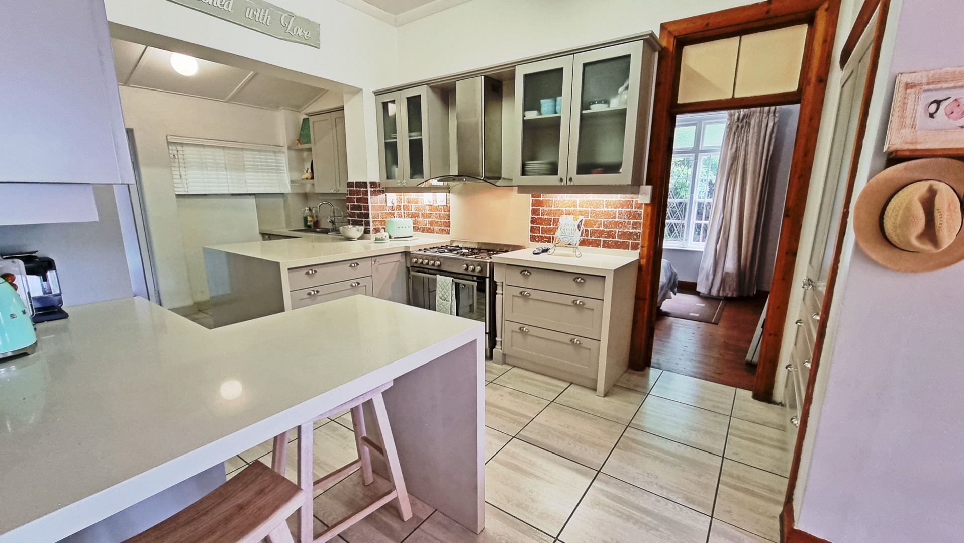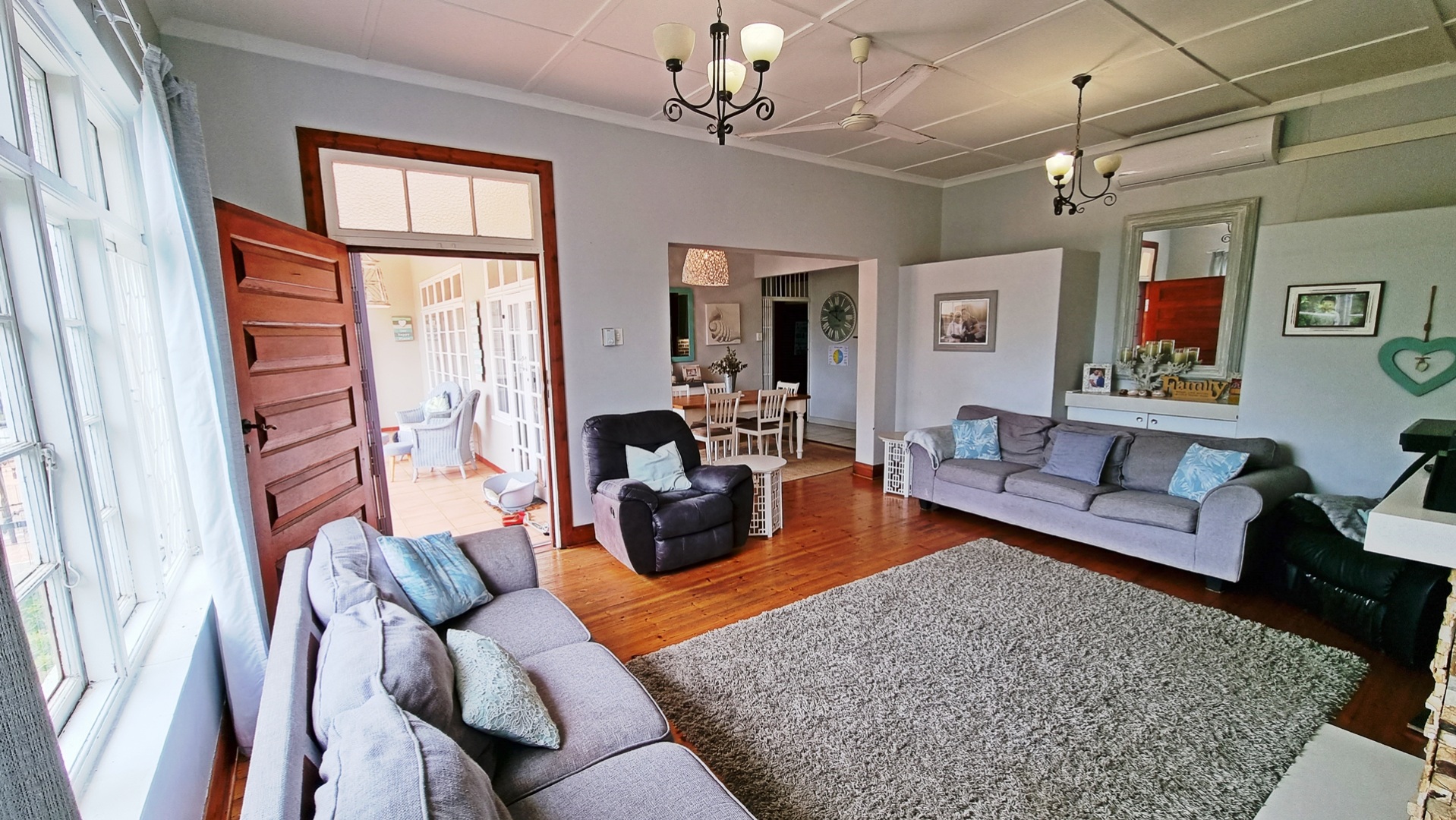 This charming, much-loved home is perfect for a family looking for privacy and a huge garden where children can safely play and enjoy themselves. As you drive into the property you will find the ample visitors parking and a double garage with automated doors. The home has beautiful wooden floors giving it a feeling of warmth. The home is light and bright and allows for a lot of natural light to filter through into the living areas as well as the bedrooms. The beautiful kitchen is newly renovated with pro quartz countertops, ample modern cupboards, five plate gas stove and a separate scullery. The four bedrooms and lounge are all air conditioned for those beautiful hot, South Coast summers.