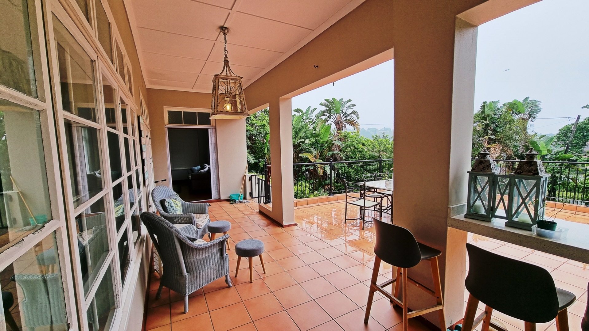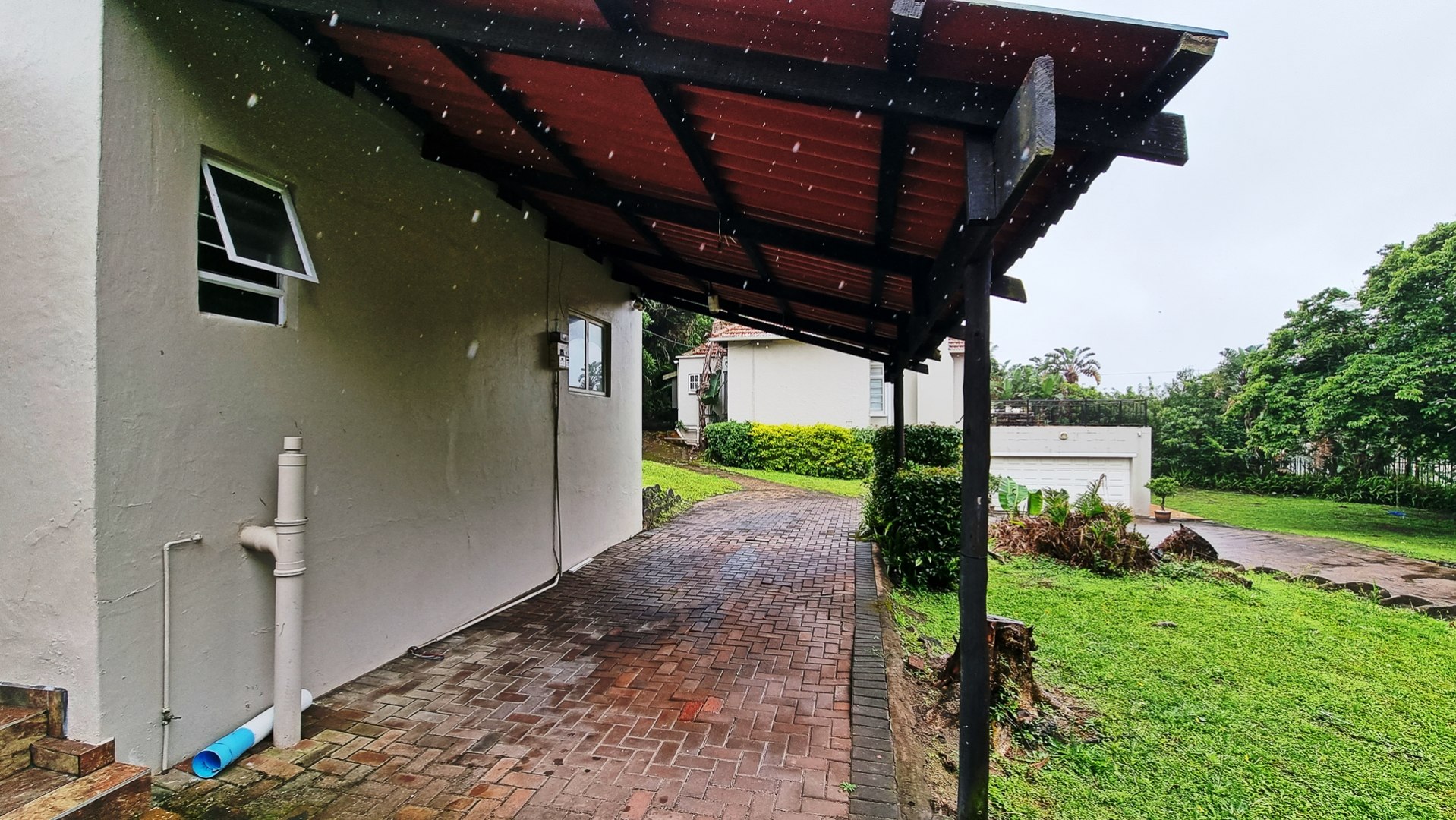 The front entrance has a lovely sized covered patio with built-in gas braai - perfect for entertaining while overlooking the lush gardens.