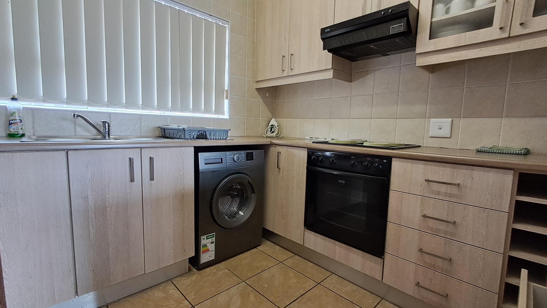 The open plan kitchen with ample cupboard space, laminated counter tops, a electric hob with undercounter oven and a extractor fan, has a modern look and offers enough space for a master chef serving wonderful meals to the family sitting at the breakfast nook which divides the kitchen from the spacious lounge.