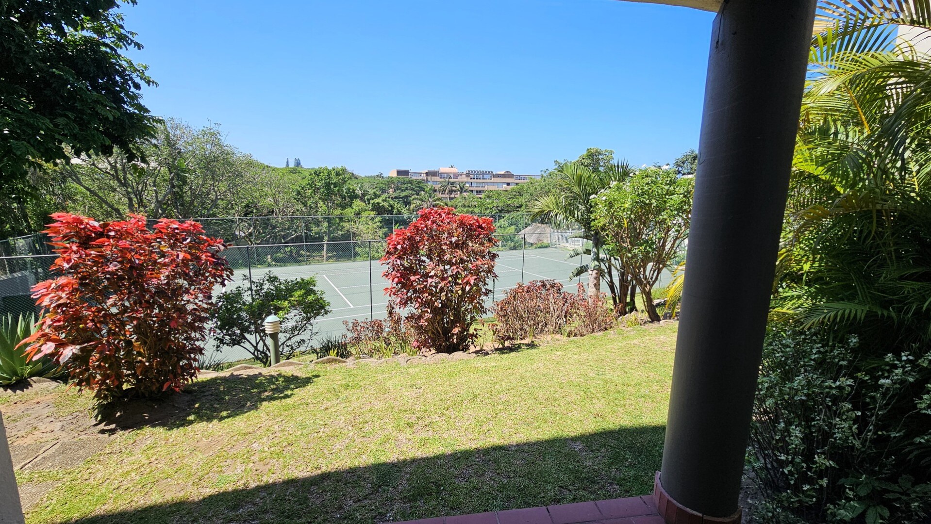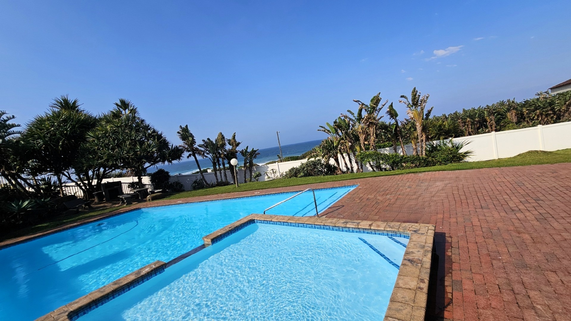 Discover coastal living at its best with this lovely ground-floor, two-bedroom apartment in the ever-popular Laguna La Crete in Uvongo. This well-known complex is a favourite holiday destination for many and offers fantastic facilities, including two sparkling swimming pools, a tennis court, and direct access to the beach. The apartment is modern and features an open-plan kitchen, lounge, and dining area that flows seamlessly onto a private patio. Being on the ground floor, you can step directly onto the lush green lawn with the tennis court right in front of you — the perfect setting for relaxation or family fun.