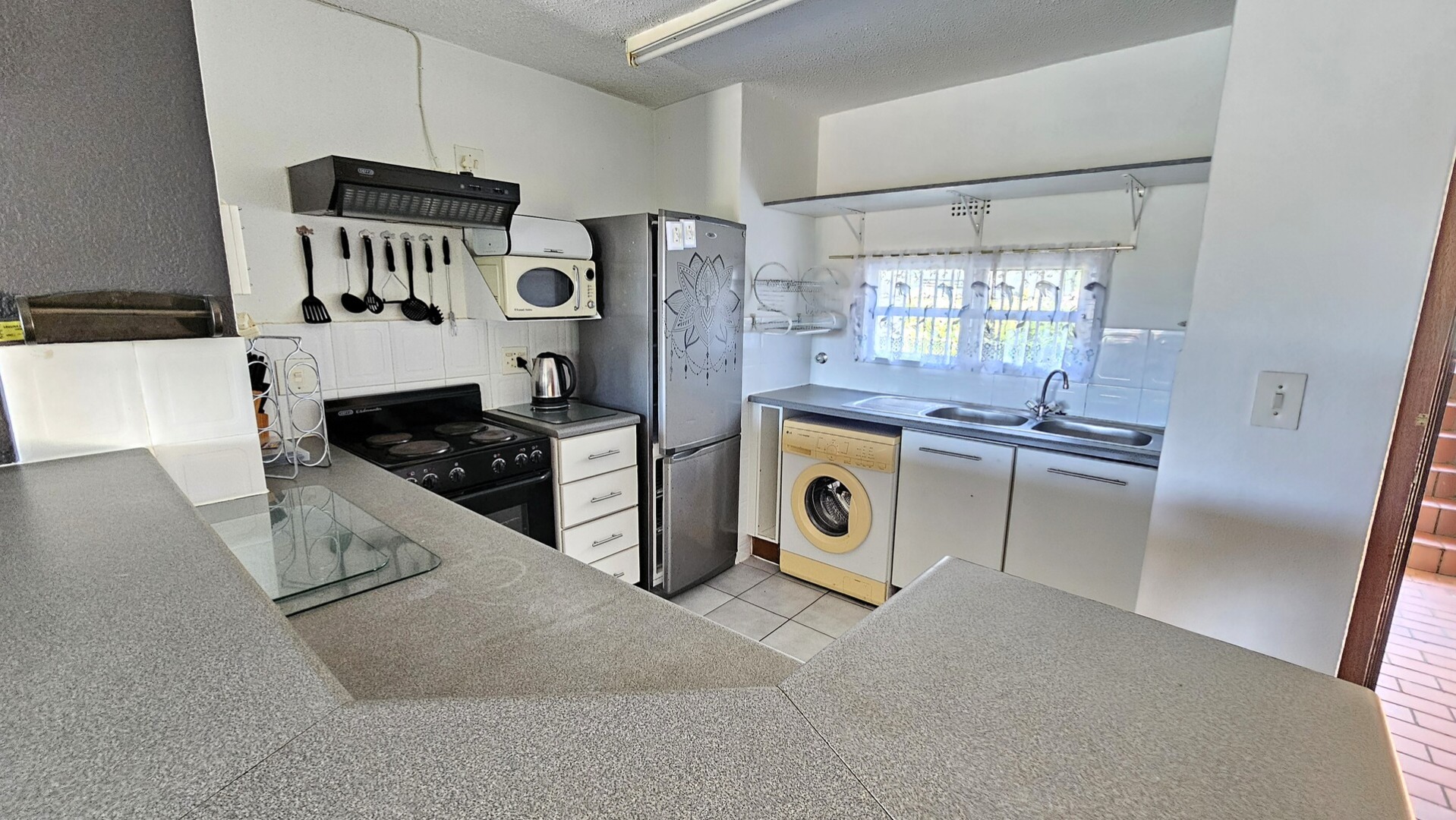 Discover coastal living at its best with this lovely ground-floor, two-bedroom apartment in the ever-popular Laguna La Crete in Uvongo. This well-known complex is a favourite holiday destination for many and offers fantastic facilities, including two sparkling swimming pools, a tennis court, and direct access to the beach. The apartment is modern and features an open-plan kitchen, lounge, and dining area that flows seamlessly onto a private patio. Being on the ground floor, you can step directly onto the lush green lawn with the tennis court right in front of you — the perfect setting for relaxation or family fun.