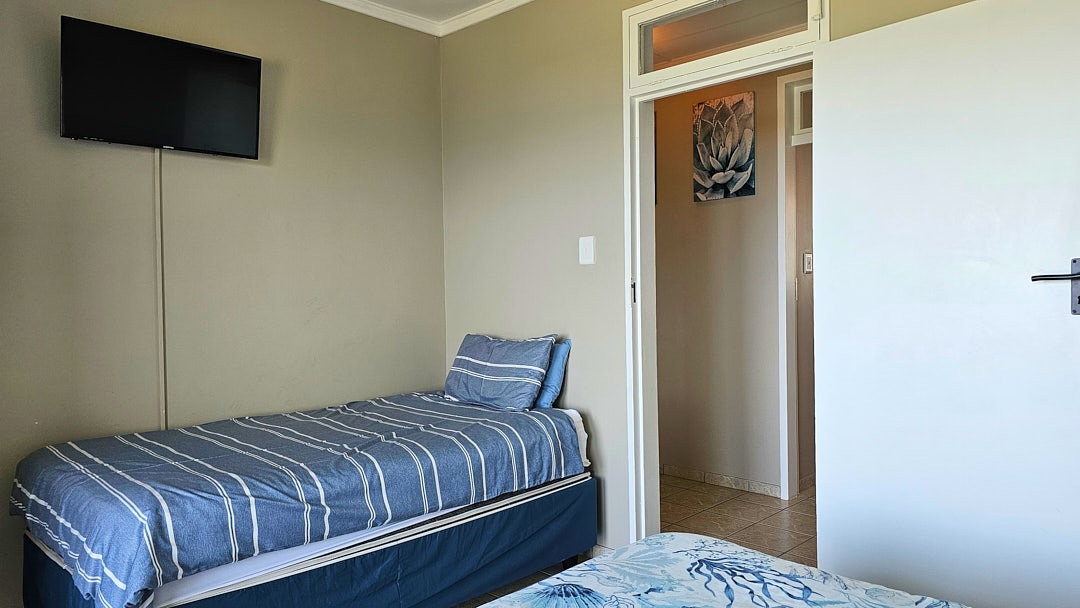 The two bedrooms are super spacious with the main bedroom opening to the said balcony as well. You can enjoy the ocean vibes while you fall asleep, as the apartment is on the second floor and ultimately safe in a super safe complex. The bedrooms share the full, beautiful and modern bathroom that is tiled to the ceiling. The apartment comes elegantly furnished, saving you time and effort in setting up your space. There are convenient amenities like braai areas for lrelaxing evenings, water tanks, a laundry room, and a wonderful caretaker to ensure everything runs smoothly. Move-in ready, this stunning apartment is delivers the ultimate coastal lifestyle. You also have one designated undercover parking with extra parking for visitors. Call me....IT"S WORTH IT!!!!