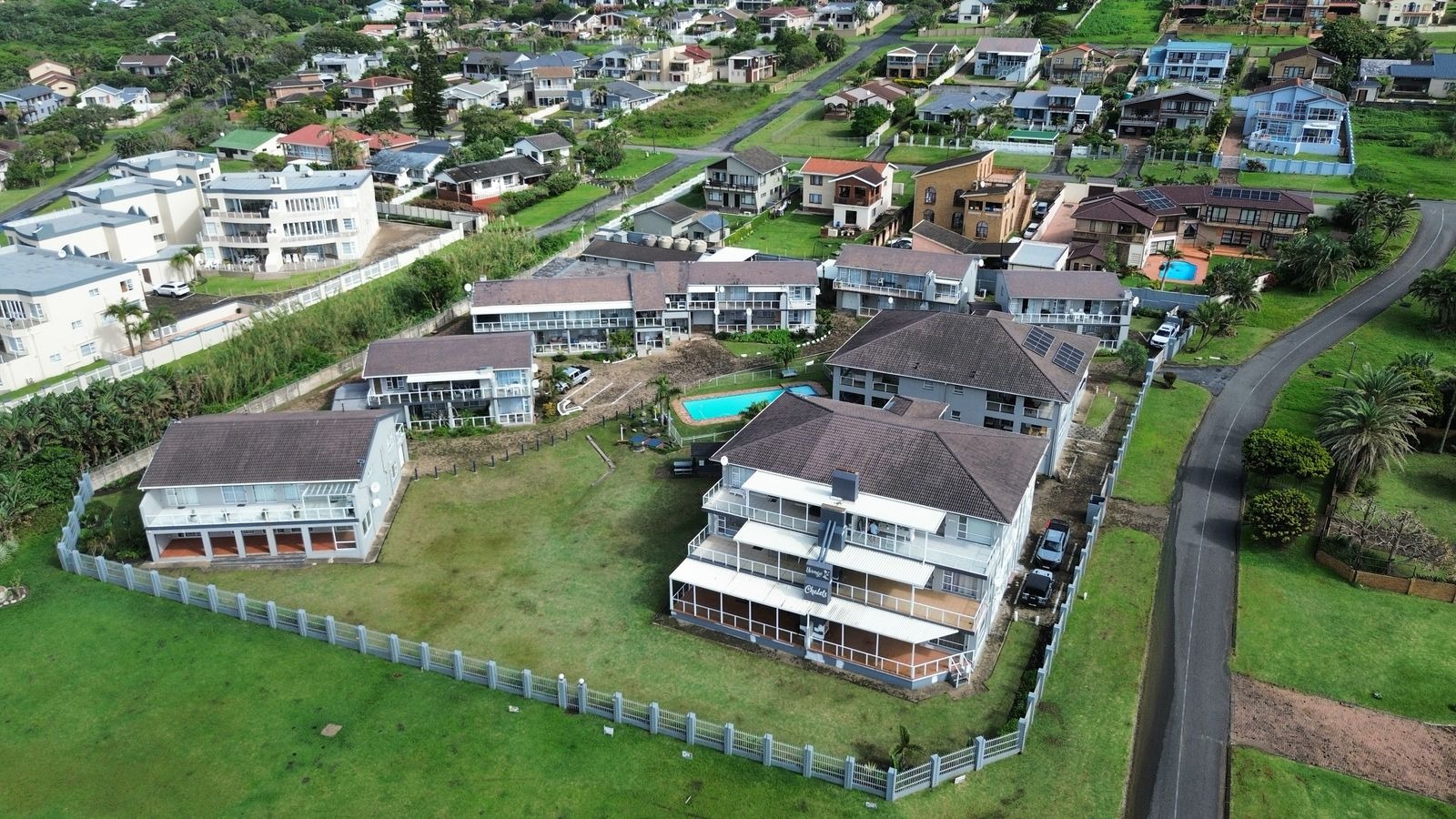Accommodation includes three spacious bedrooms and three contemporary bathrooms, providing ample comfort and privacy for residents. External amenities are equally impressive, featuring a private balcony perfect for enjoying the coastal panorama, a refreshing swimming pool, and a lapa with a built-in braai for al fresco dining. The property also benefits from a private garden, offering a verdant retreat within the expansive 6842 square metre communal grounds.