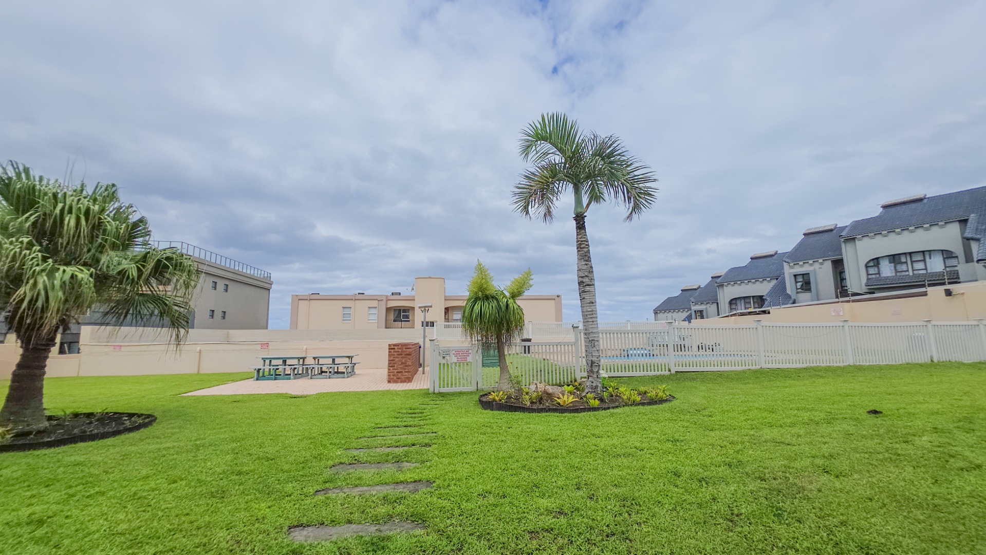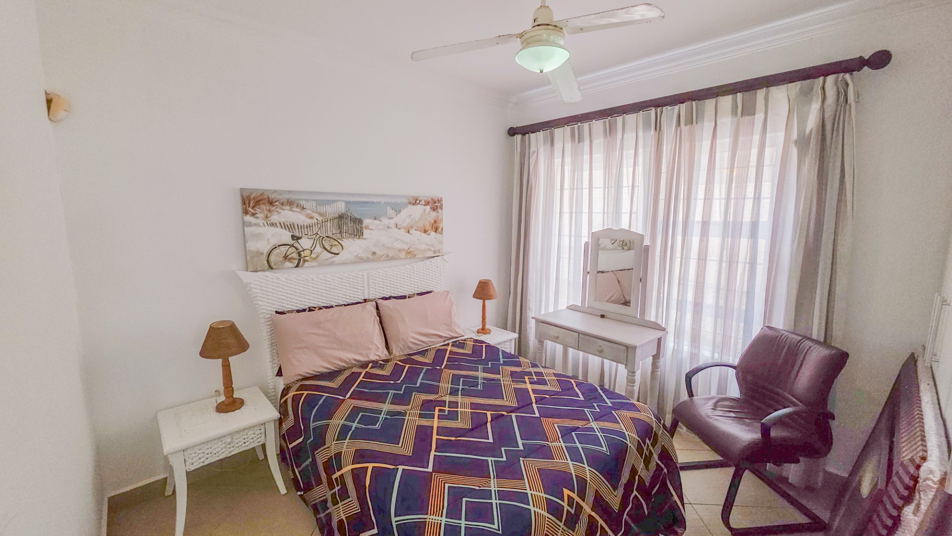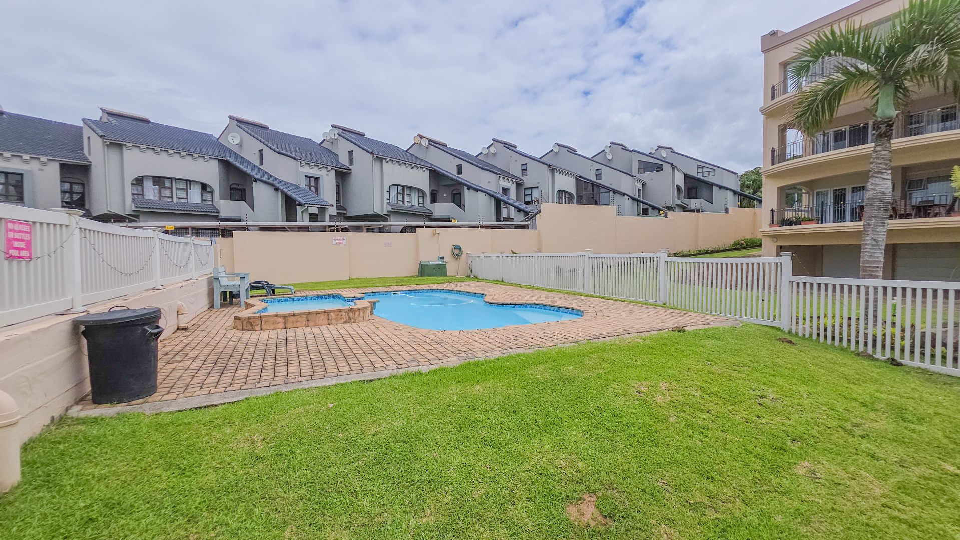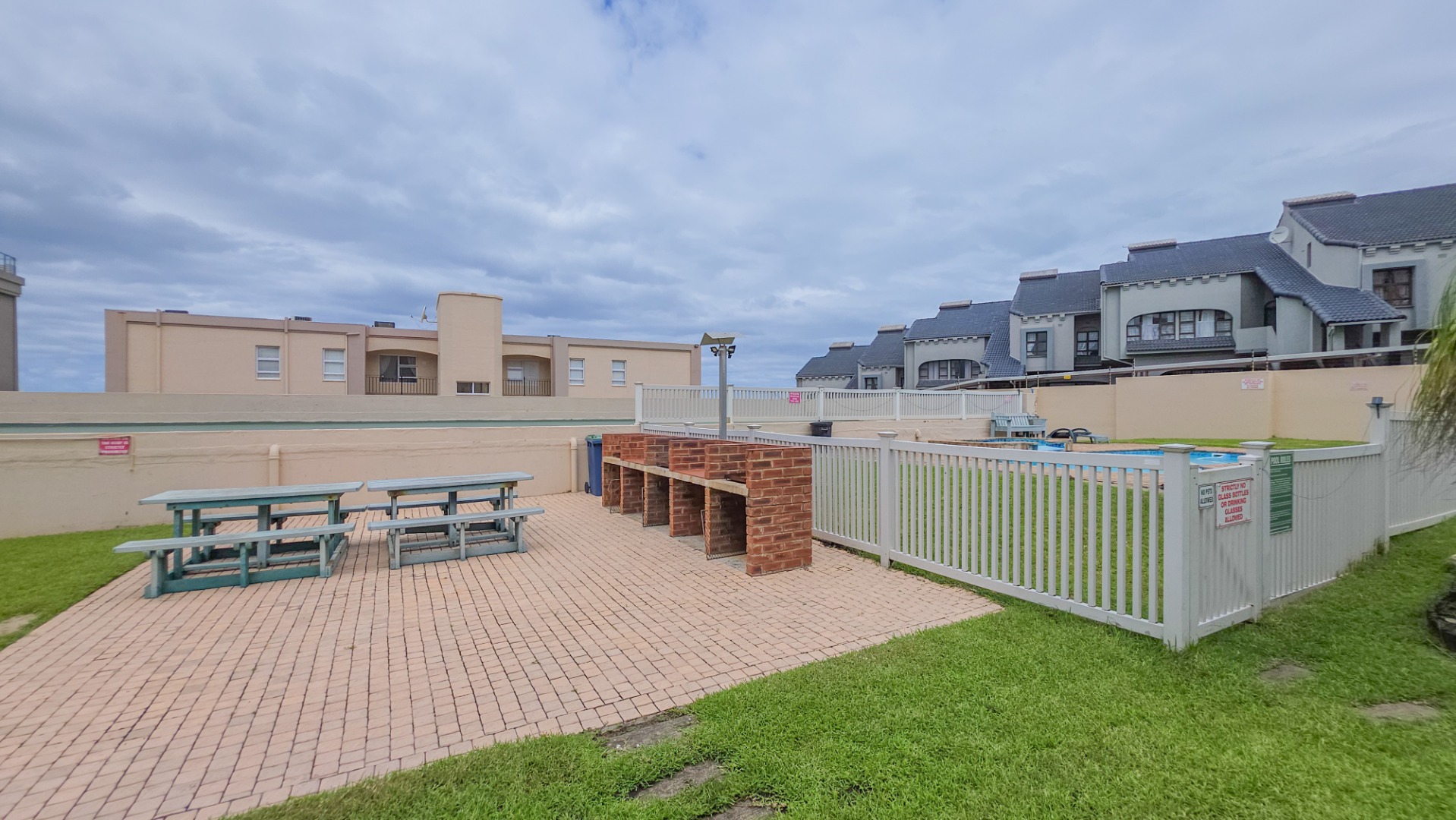 Step outside to a covered patio with a built-in braai, ideal for dining or relaxing while enjoying the coastal atmosphere. Residents have access to a communal swimming pool, and the property includes a single garage. Security is strong, with a fully walled complex, gated access, burglar bars, and an alarm system, providing peace of mind.
