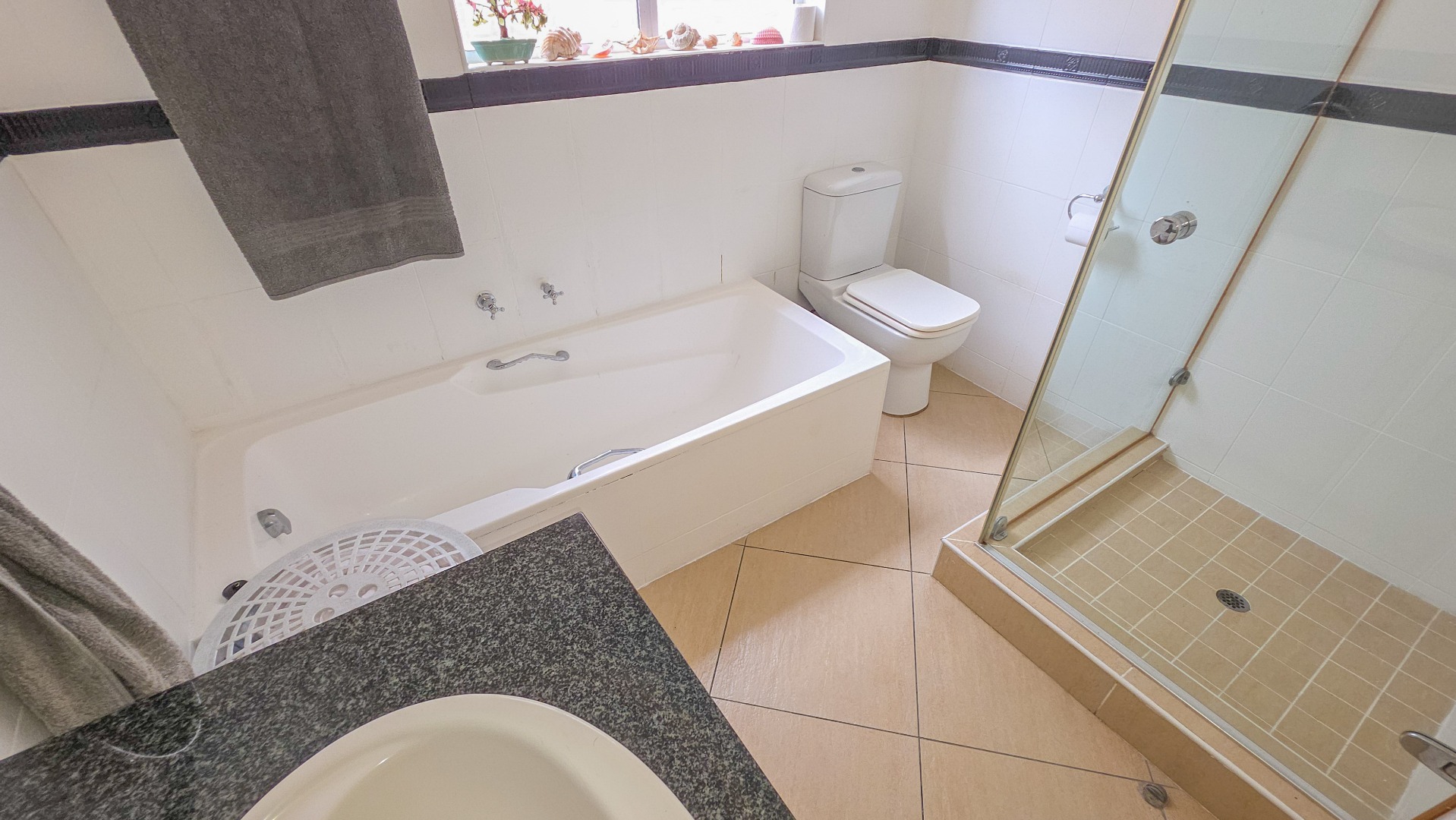 The main bedroom is a bright, private sanctuary with sweeping, uninterrupted sea views, its own en-suite with shower, bath, toilet, and basin, and direct balcony access to enjoy the ocean breeze. The two additional bedrooms are spacious and light-filled, sharing a second bathroom with a shower, toilet, and basin, designed for convenience and comfort.