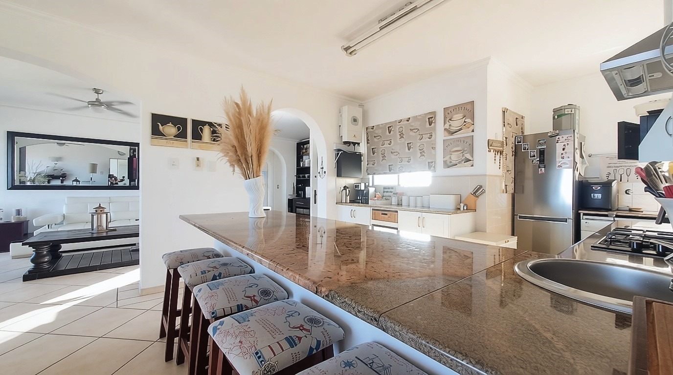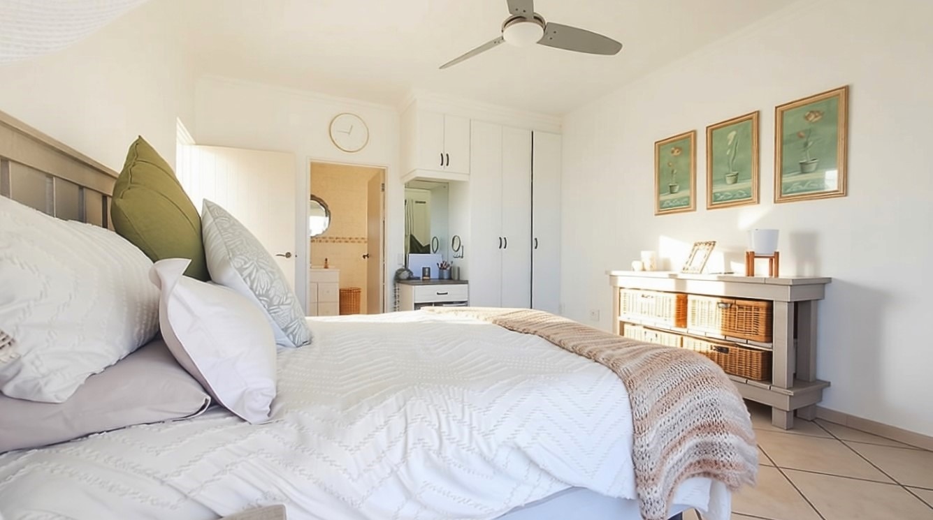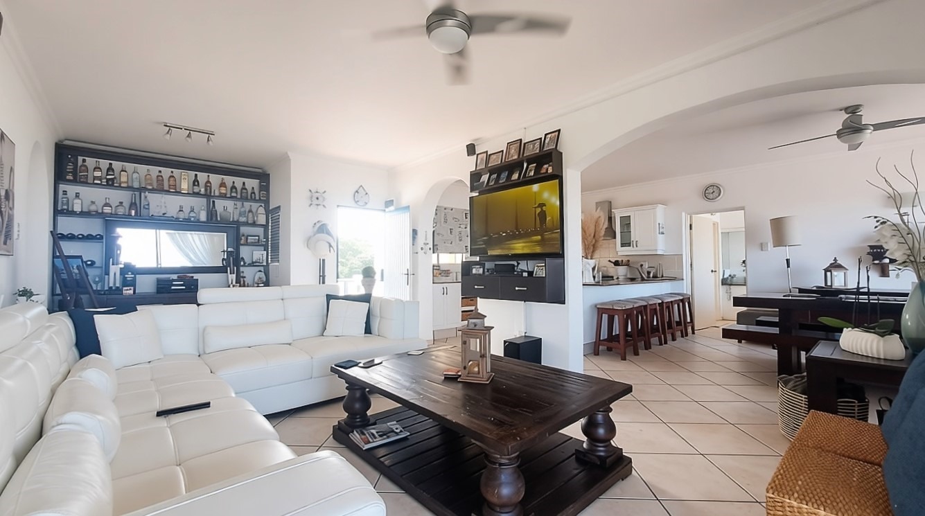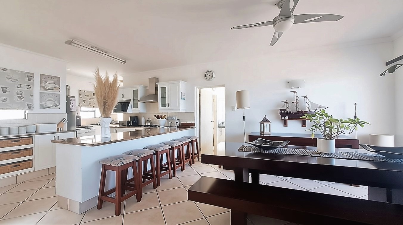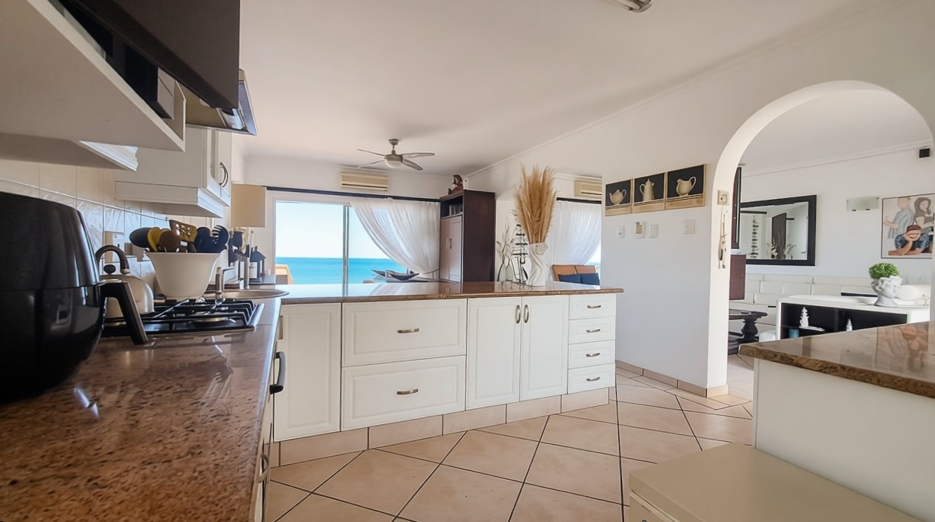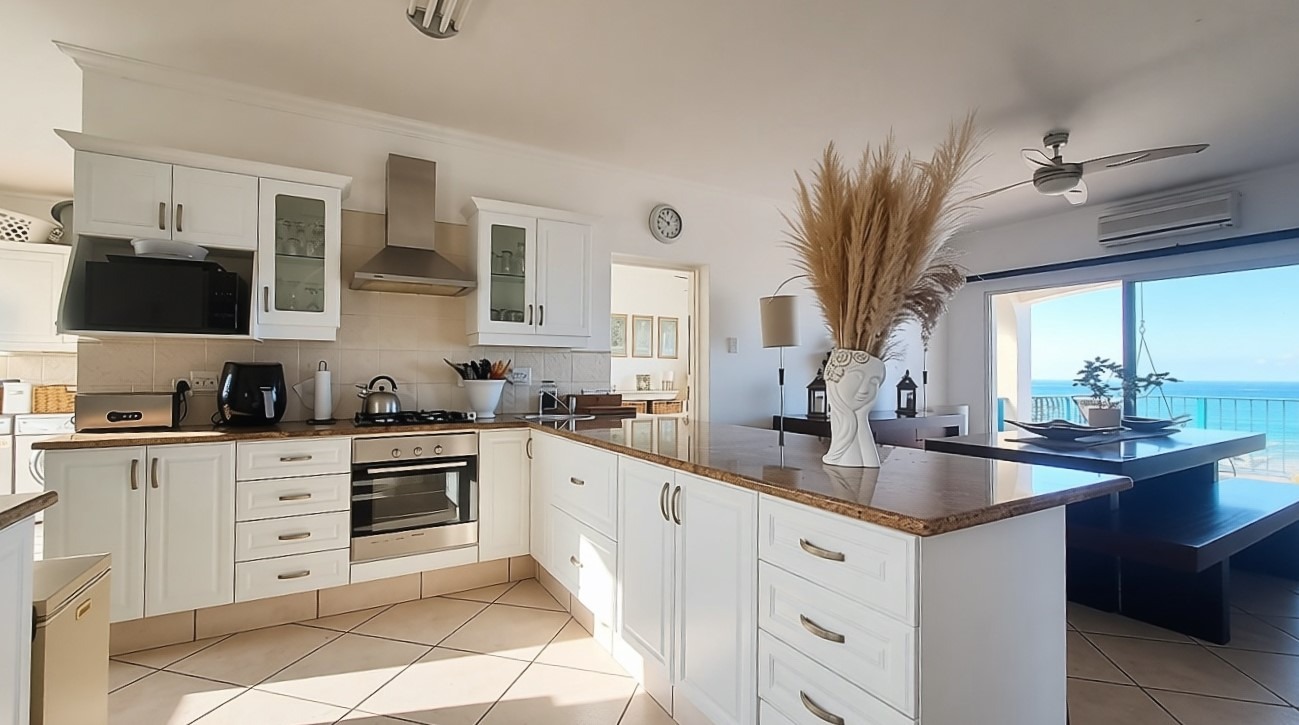 The penthouse offers four generously sized bedrooms, each thoughtfully designed for privacy and comfort. The main bedroom suite is a true sanctuary, featuring a private en-suite bathroom and a balcony, allowing you to wake up to the refreshing sea breeze. One of the guest bedrooms also enjoys its own en-suite bathroom and balcony, providing guests with their own private retreat. Down the passage, the remaining two bedrooms share a well-appointed guest bathroom.