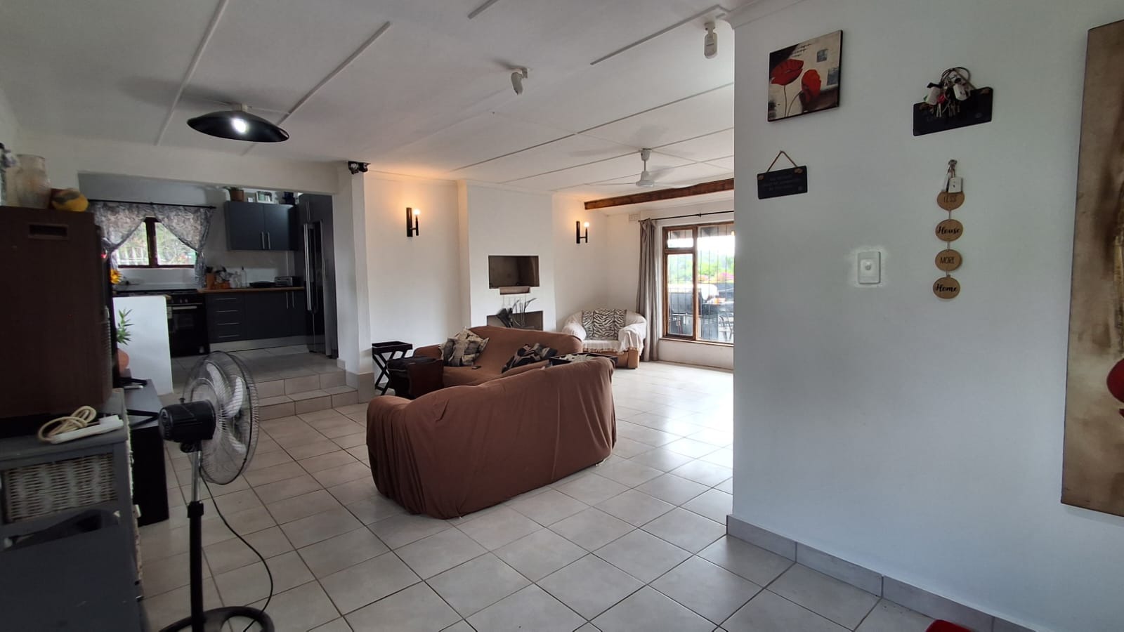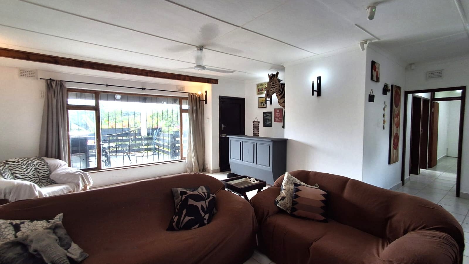 Discover this inviting 4-bedroom, 2-bathroom residence nestled in the desirable coastal suburb of Uvongo. This property offers a blend of comfortable living and outdoor enjoyment, perfect for a family home or a holiday retreat. The interior features an open-plan layout, seamlessly connecting the living spaces, including a dedicated lounge and family TV room, all adorned with practical tiled flooring. Large windows throughout ensure ample natural light and offer pleasant views of the surrounding greenery.