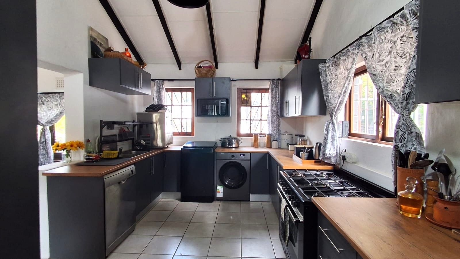 Step outside to a private oasis designed for relaxation and entertainment. The property features a refreshing swimming pool, a spacious wooden deck with flower boxes, and a patio area, ideal for outdoor gatherings. An established garden with mature trees and lush greenery provides a serene backdrop and scenic views, complemented by a dedicated braai area. With two open parking spaces, an access gate, and a fenced perimeter, this pet-friendly home offers both convenience and security.