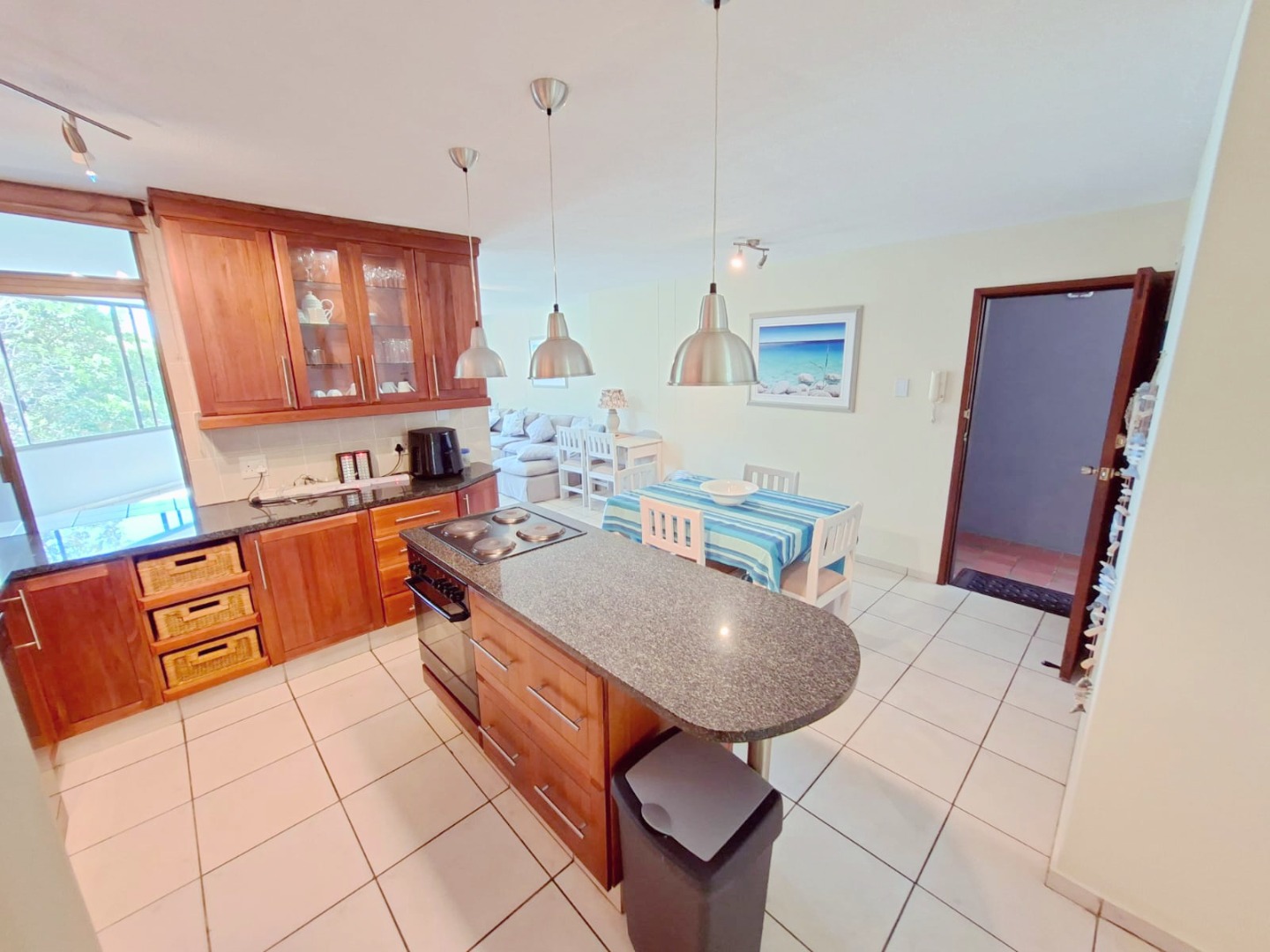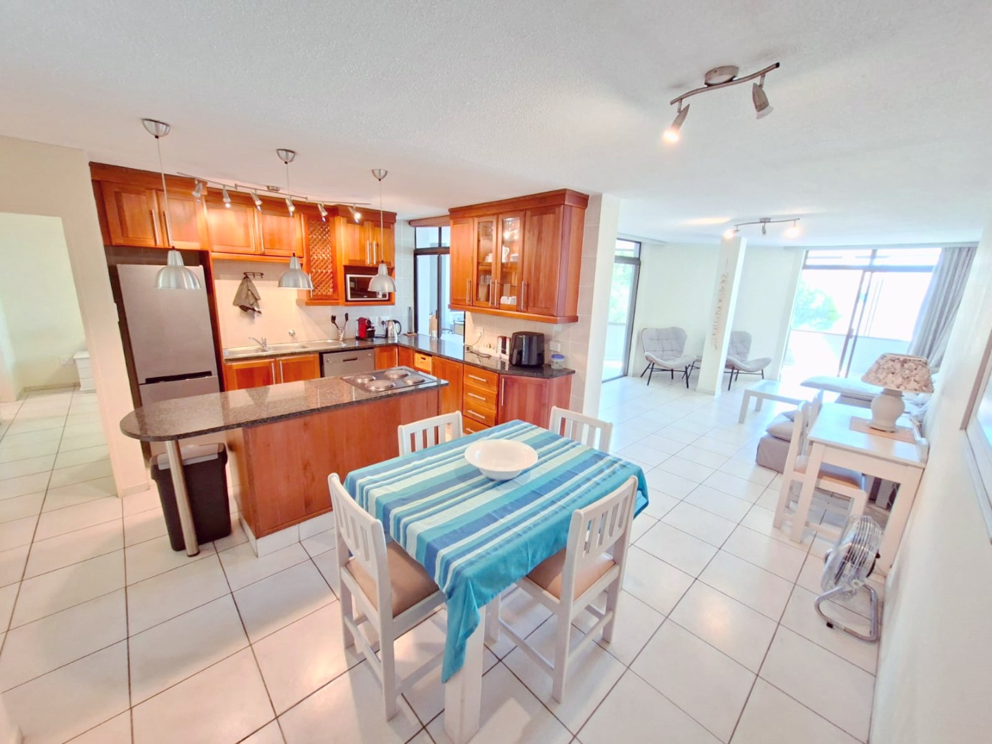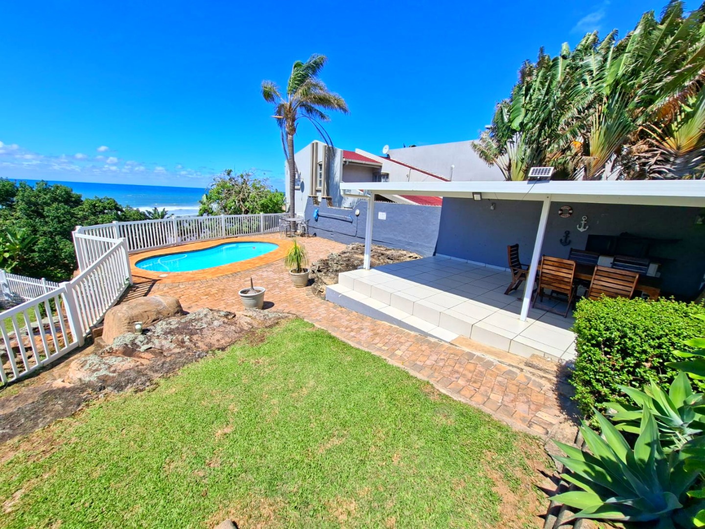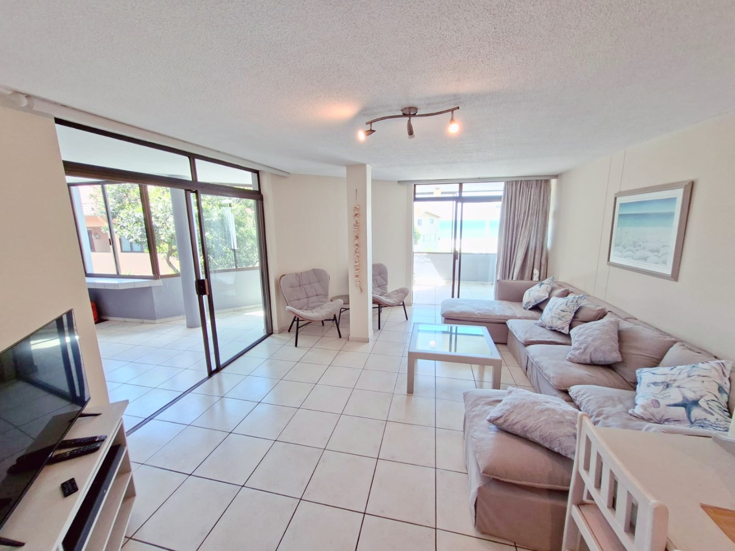 Discover the epitome of coastal living in this exquisite 3-bedroom, 2-bathroom residence, perfectly positioned within a desirable complex in Uvongo. Boasting a generous 130 sqm of meticulously designed space, this furnished holiday home offers an unrivalled lifestyle with breathtaking panoramic ocean and sandy beach views that captivate from multiple vantage points.