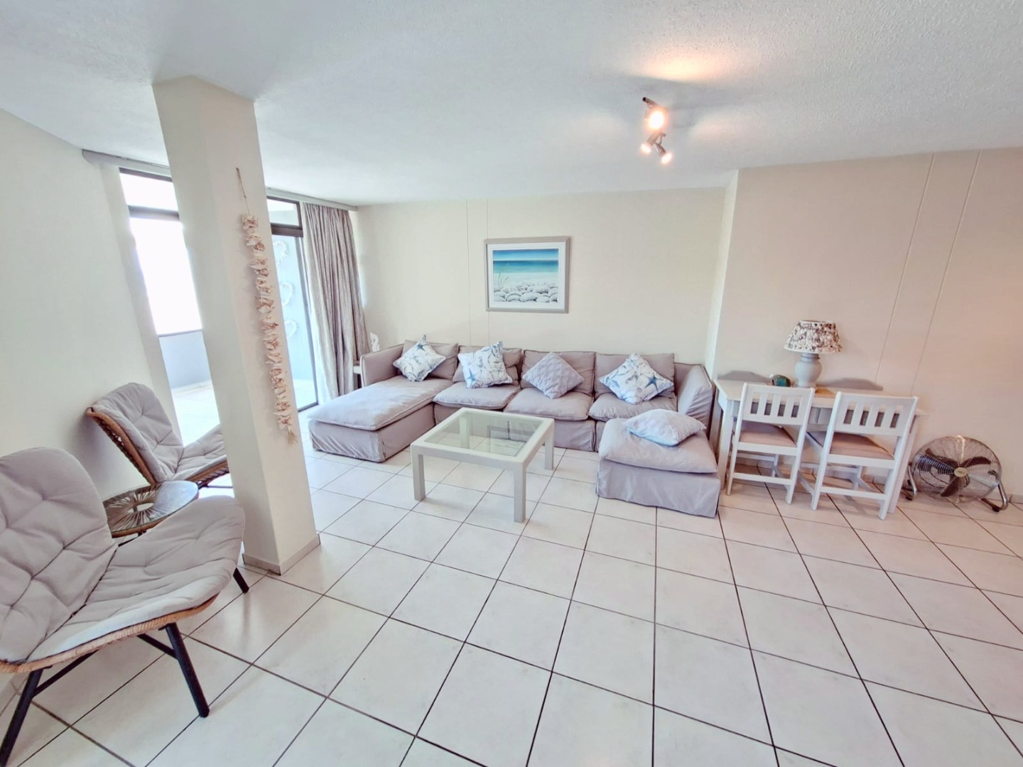 Discover the epitome of coastal living in this exquisite 3-bedroom, 2-bathroom residence, perfectly positioned within a desirable complex in Uvongo. Boasting a generous 130 sqm of meticulously designed space, this furnished holiday home offers an unrivalled lifestyle with breathtaking panoramic ocean and sandy beach views that captivate from multiple vantage points.