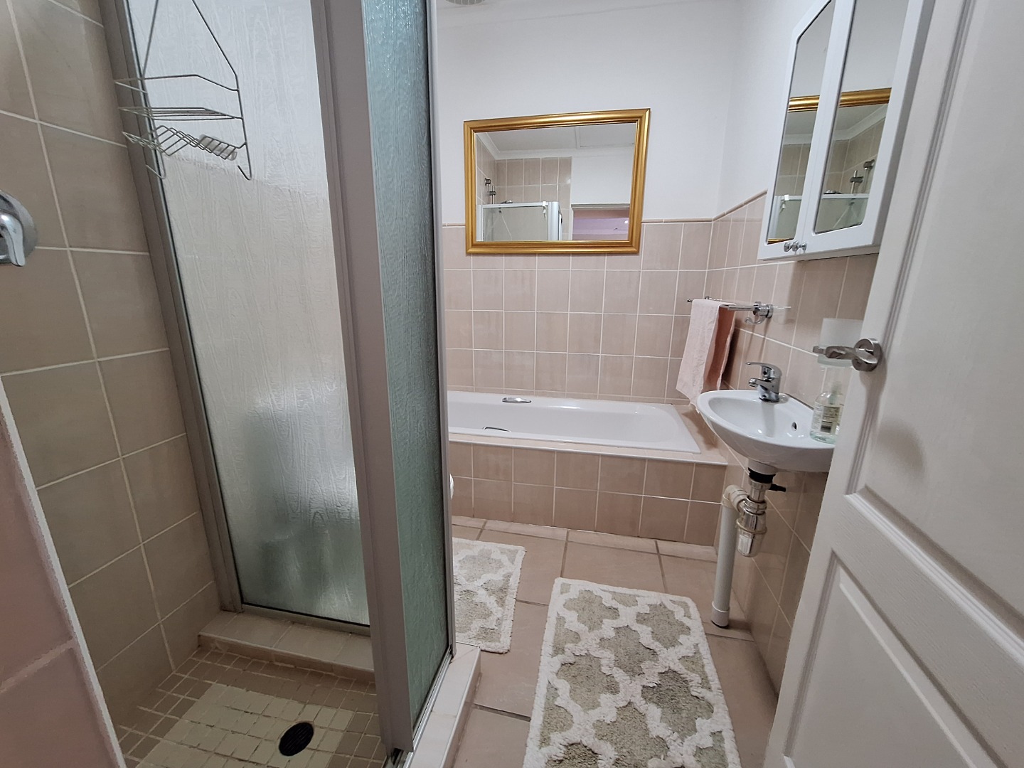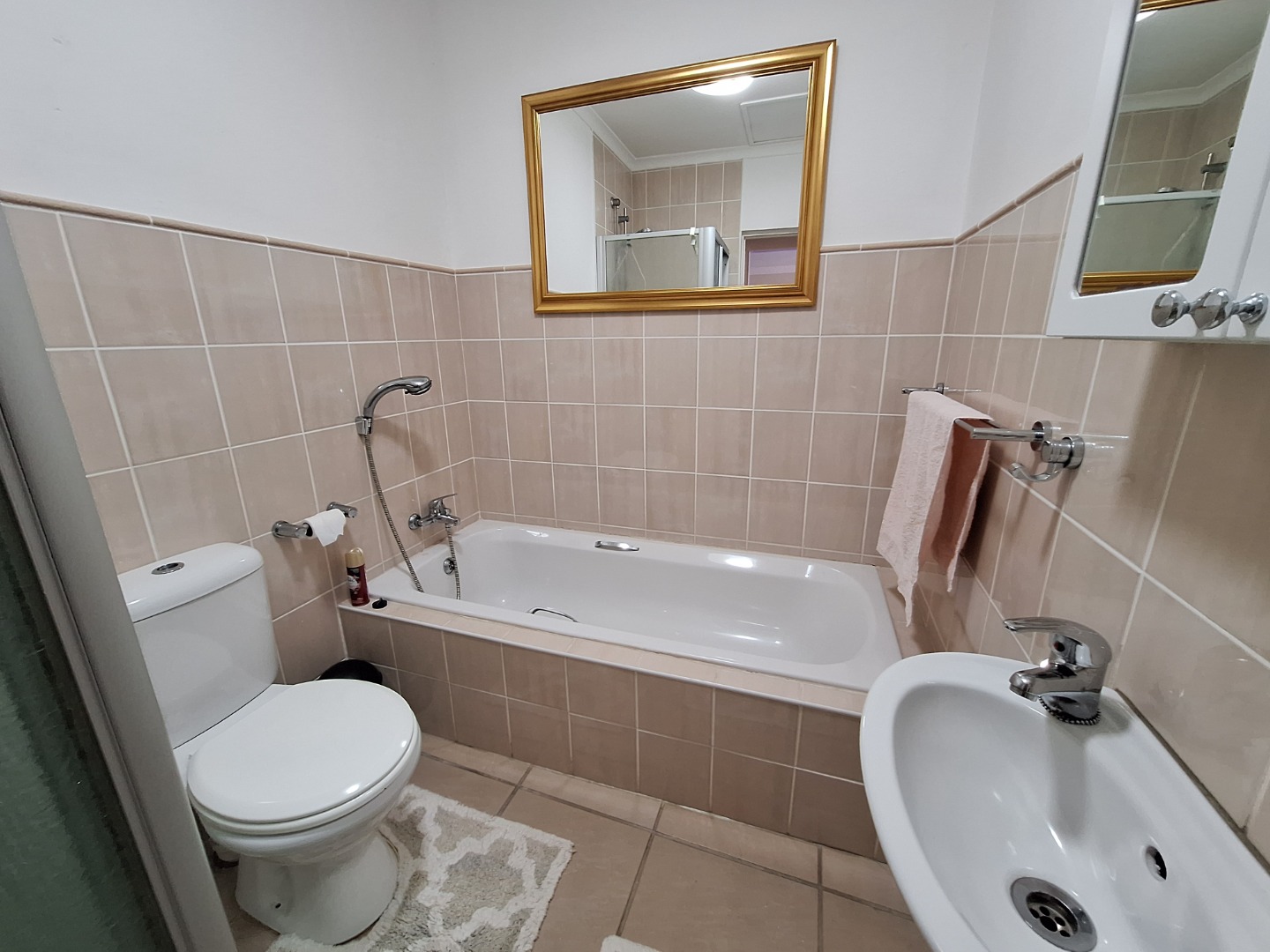 This residence comprises three well-proportioned bedrooms and two bathrooms, including a private en-suite. Each bedroom benefits from ample natural light, ceiling fans, and neutral decor, offering a versatile foundation for personal customisation. One bathroom is appointed with a corner jacuzzi tub, a contemporary vanity, and a large window, creating a relaxing retreat.