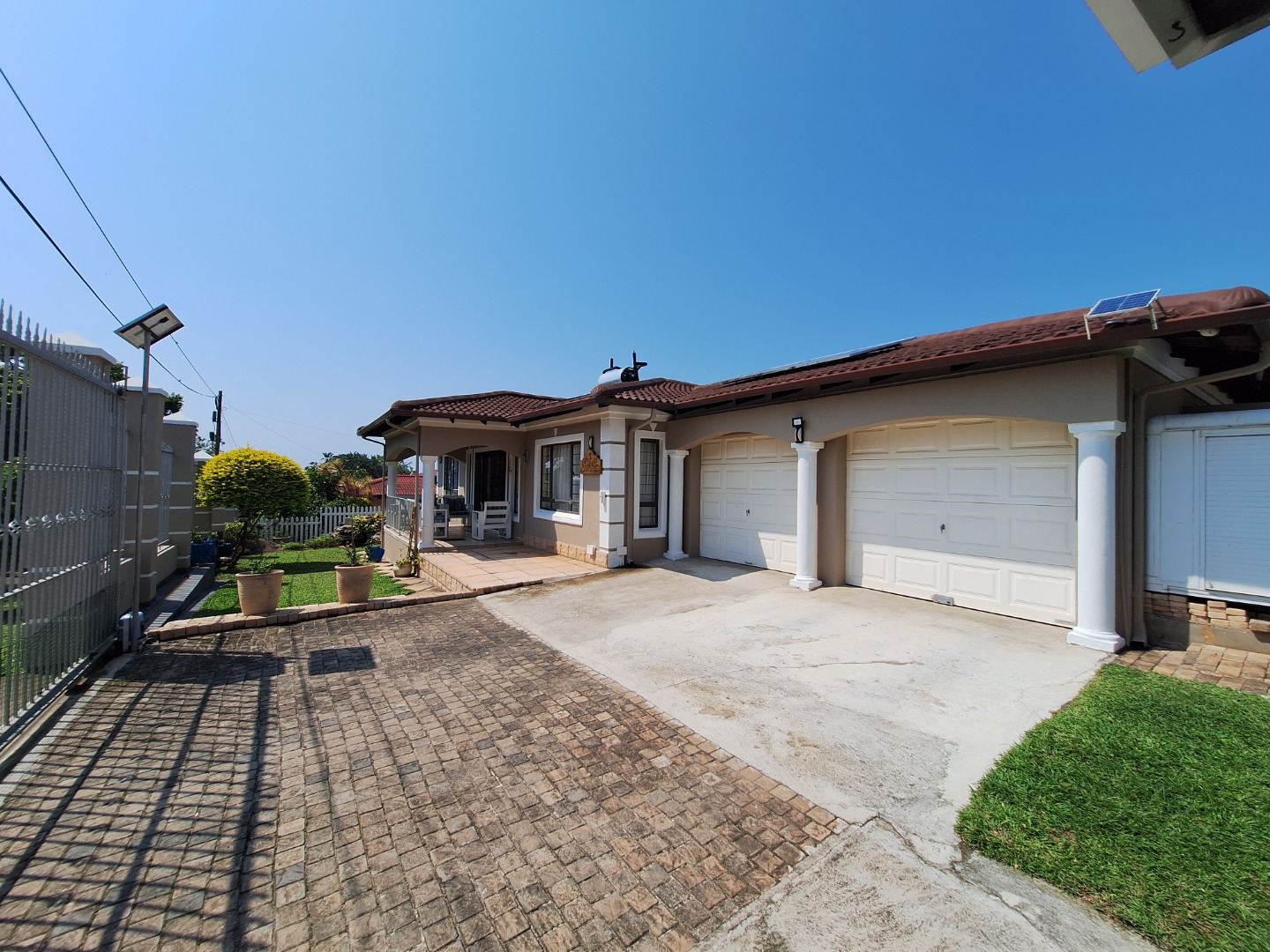 Upon approach, the property presents with commendable kerb appeal, featuring a well-manicured lawn and a welcoming covered porch. The single-story dwelling, incorporates practical security measures such as window bars and fencing, ensuring peace of mind. A notable commitment to sustainability is evident with the inclusion of a solar water heater, enhancing energy efficiency.