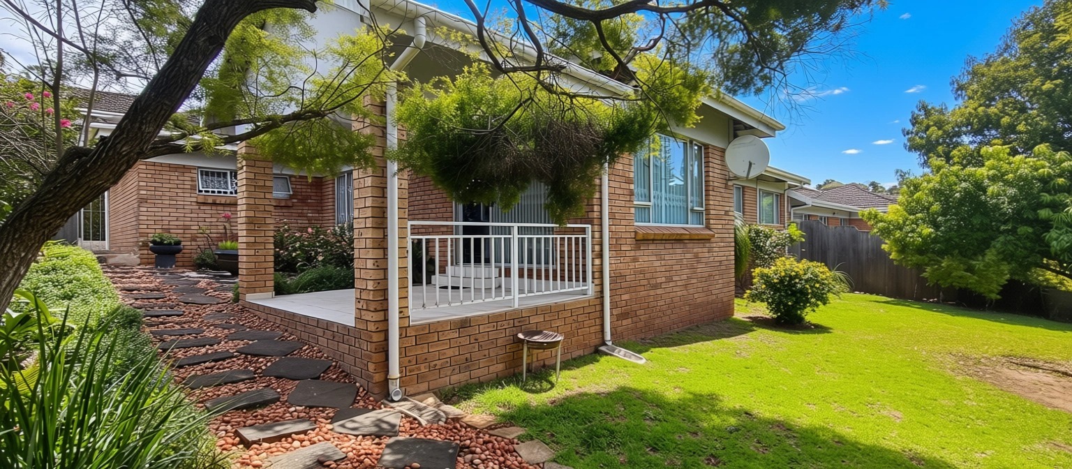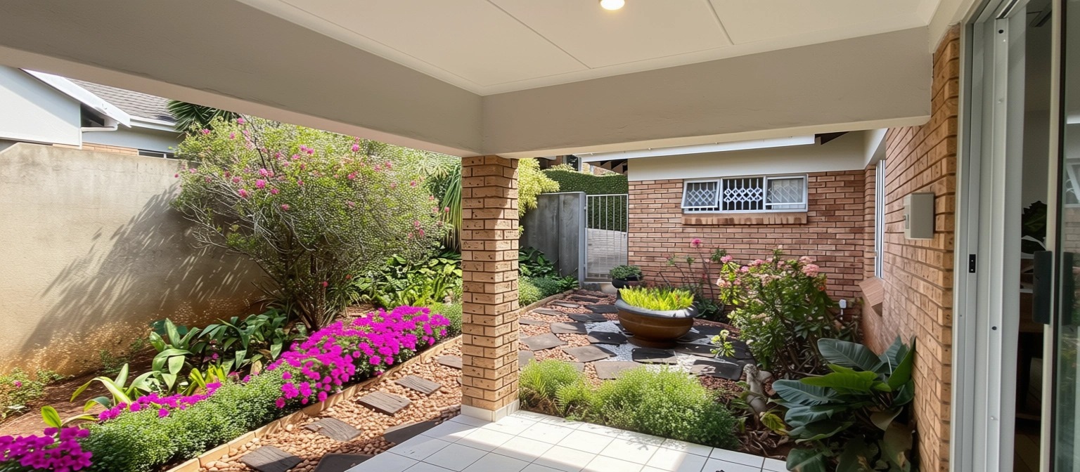 From the lounge, sliding doors open onto a covered porch that overlooks a generously sized yard, offering ample space for outdoor relaxation, gardening, or children’s play. The property includes a double garage with extra parking, catering to multiple vehicles and adding to its practicality. The complex itself is meticulously maintained, providing a safe and attractive environment with manicured surroundings that enhance the overall appeal. With its combination of modern finishes, open-plan living, private outdoor spaces, and secure setting, this townhouse is truly move-in ready and presents an excellent opportunity for buyers seeking a neat, stylish, and family-friendly home in a desirable location.