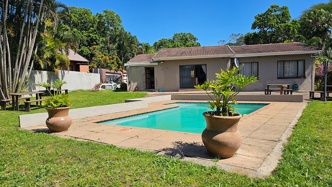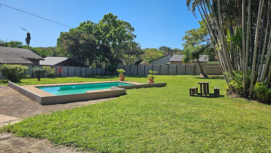 As you enter the house and the kitchen is to your right, there is a corridor to the left, that takes you to the bedrooms and bathrooms. The spacious main bedroom is en-suite to a full bathroom and has a large window that will allow the sun to brighten your room whilst you can read a book whilst keeping an eye on the children in the pool and garden. The second bedroom is also spacious, light and has a similar window as the main bedroom. The second bathroom is shared by the 2 other bedrooms. The 3rd bedroom is quite small and perfect for one of the children. Next to the house is a comfortable flat with a kitchenette and one spacious bedroom and has an en-suite with a shower. The area is a well established, quiet, safe suburb of Uvongo, close to all amenities that you might want. The house needs to be painted on the outside, but the inside is neat. Give me a call and make this joyful house yours!!!
