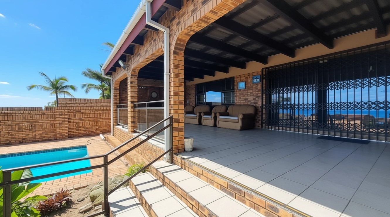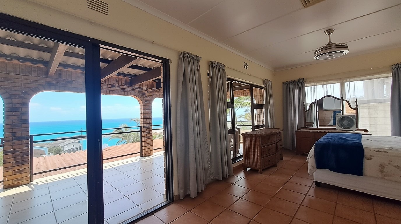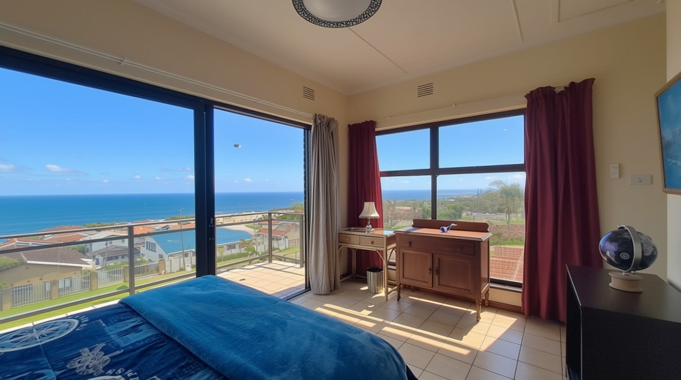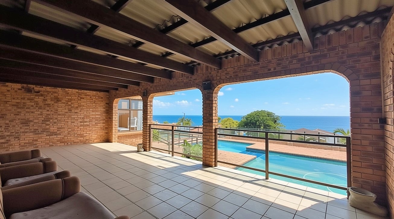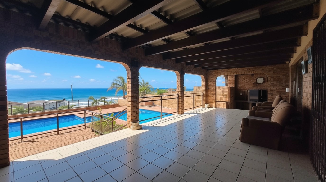 This remarkable, fully furnished, two-story face-brick residence offers spacious coastal living with breathtaking 180° ocean views. Nestled in the highly desirable Uvongo area, the property features 5 bedrooms, 4 bathrooms of which 3 are en-suite, making it a perfect family haven or holiday investment. The main bedroom opens onto a private patio, while another bedroom leads to a balcony, both ideal for taking in serene sea views.