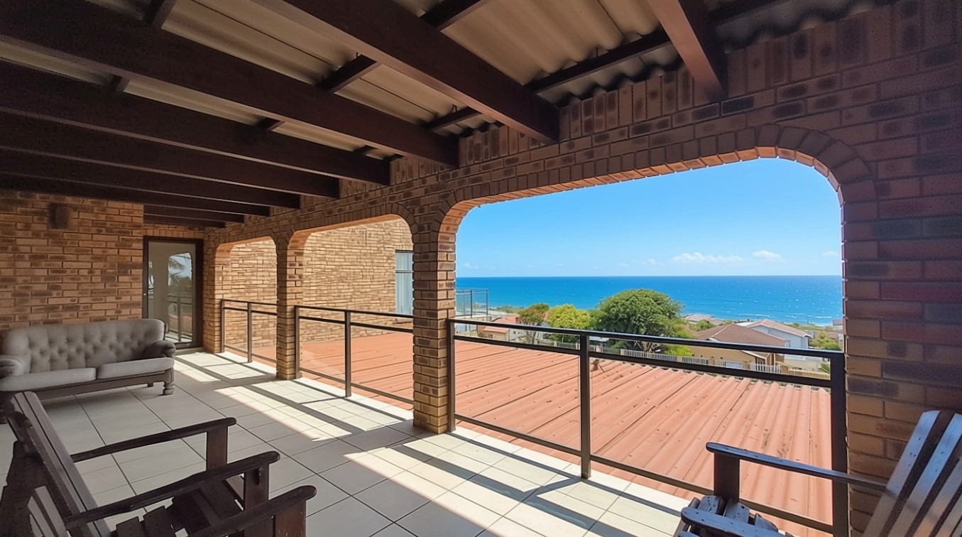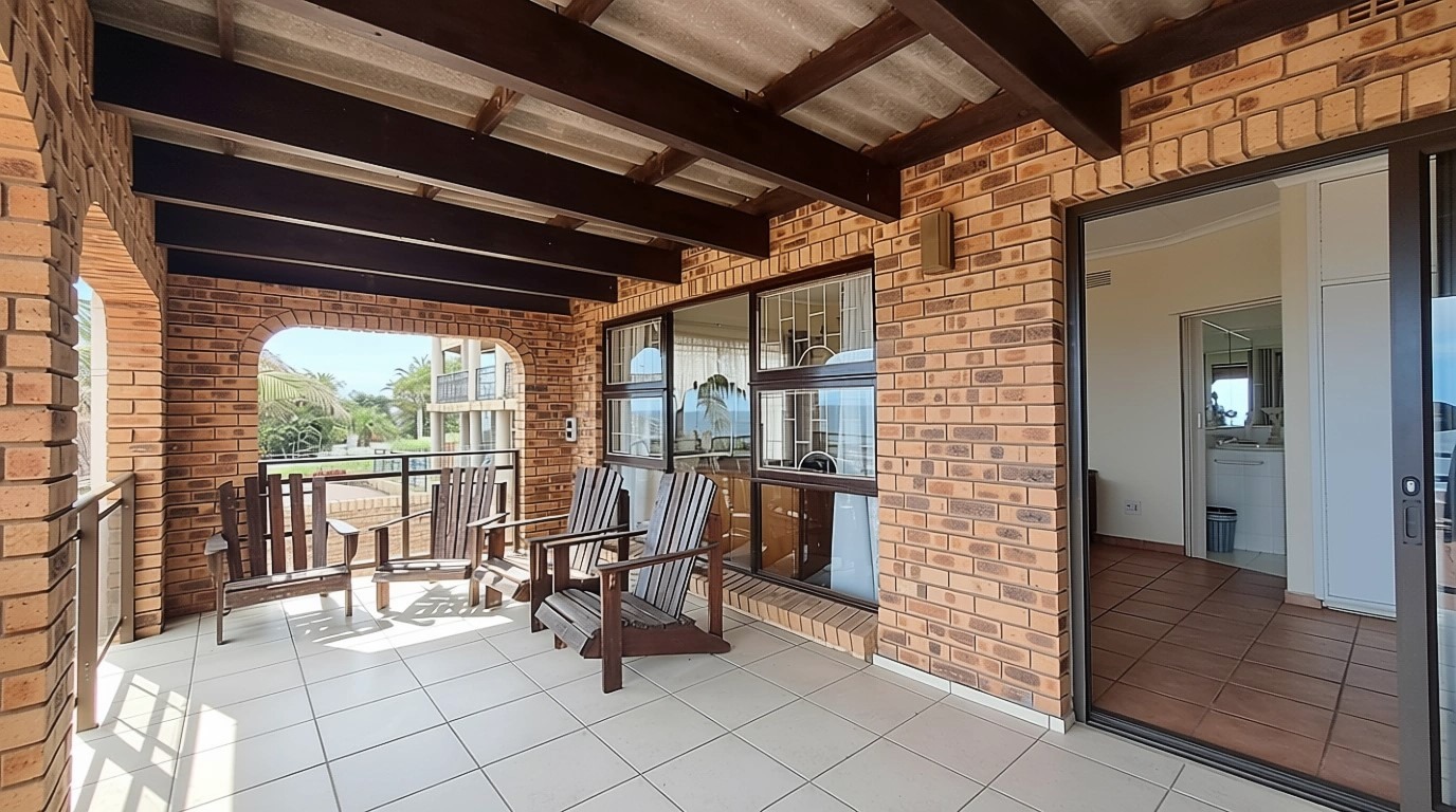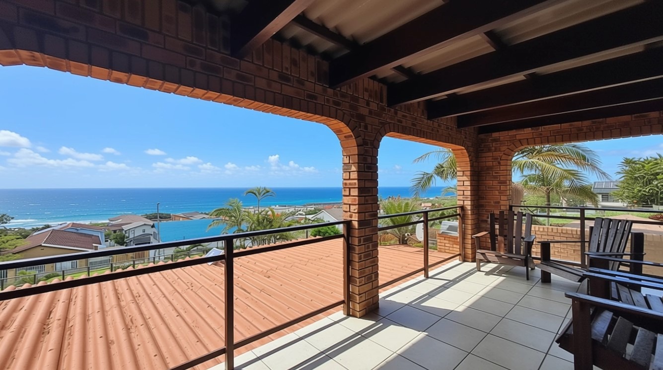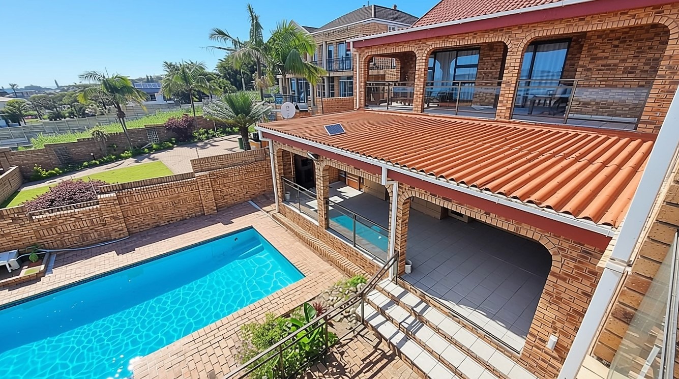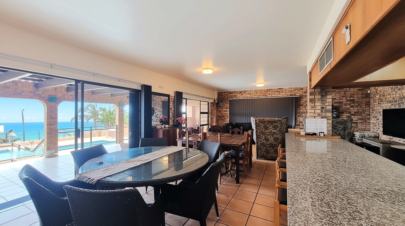 This remarkable, fully furnished, two-story face-brick residence offers spacious coastal living with breathtaking 180° ocean views. Nestled in the highly desirable Uvongo area, the property features 5 bedrooms, 4 bathrooms of which 3 are en-suite, making it a perfect family haven or holiday investment. The main bedroom opens onto a private patio, while another bedroom leads to a balcony, both ideal for taking in serene sea views.