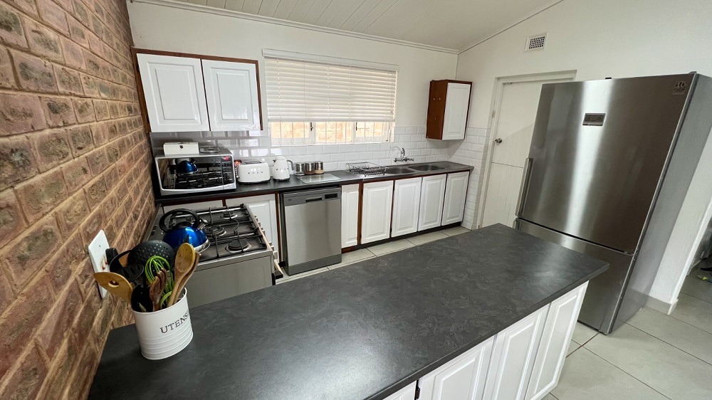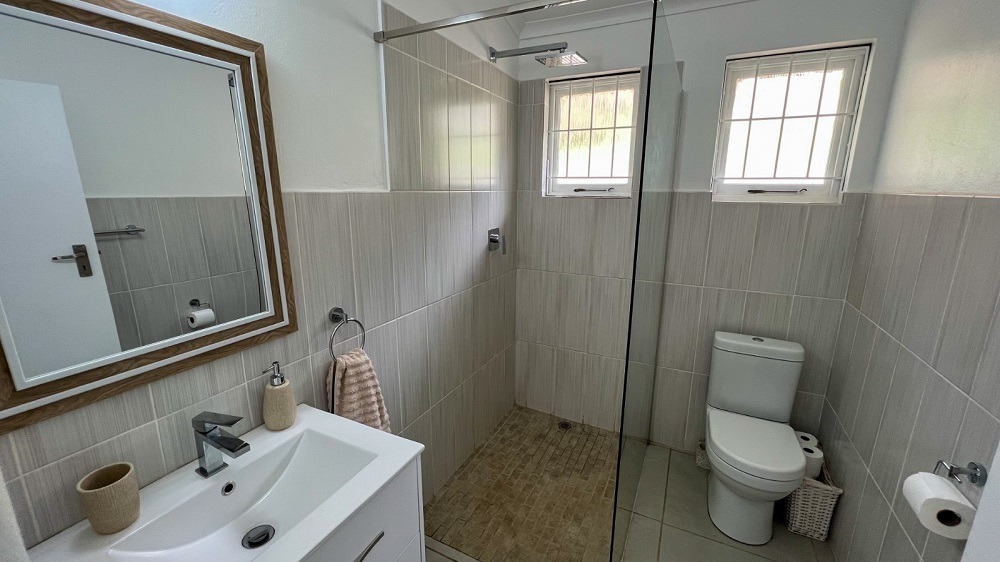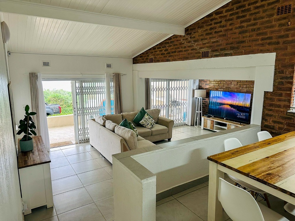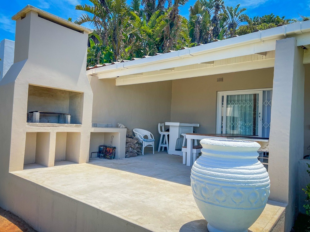 This charming home with beautiful sea views is perfectly positioned just a short stroll from the beach where sun, sand and sea awaits. The open plan design creates a warm and welcoming living space - Offering open plan lounge, dining room and kitchen, laundry, three bedrooms with build in cupboards of which the main bedroom has a walk in cupboard, two bathrooms, one with shower and one with bath. The large outside covered veranda with build in braai and stunning sea views is ideal for relaxing, entertaining or simply soaking up the view. Also offering an outside staff room with separate bathroom and large garden with more than enough space for children to play and pets to run around. Security includes alarm system, beams, electric fence and automated gate.