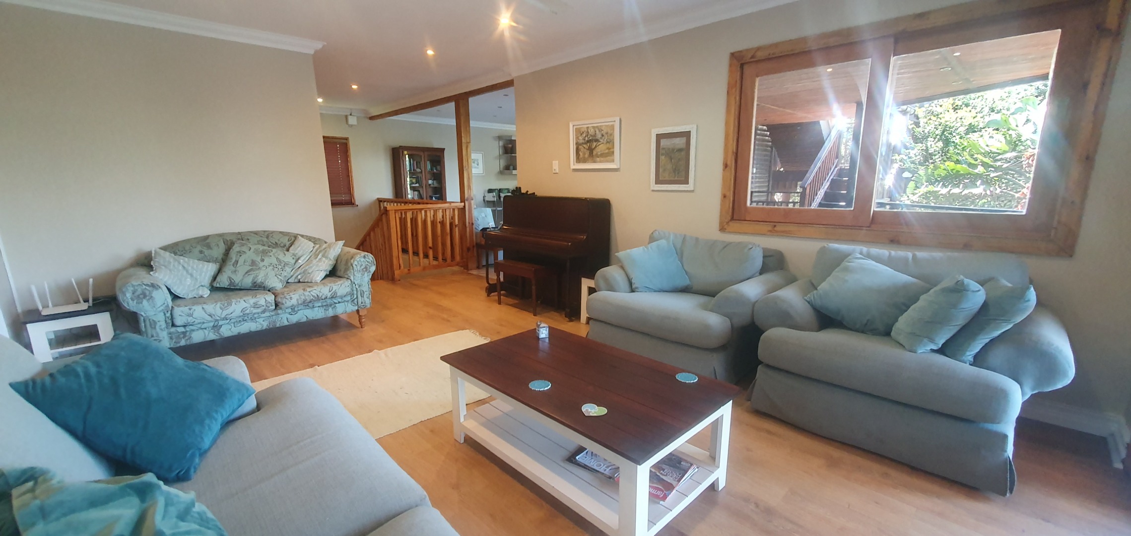 Step inside to discover an expansive 298 sqm of meticulously designed living space. The heart of the home is a contemporary, open-plan kitchen, boasting luxurious granite counter tops, and a central island featuring an integrated hob and oven. This culinary haven, complete with a breakfast bar and generous storage, flows effortlessly into the elegant dining room and sophisticated lounge, perfect for both intimate gatherings and grand entertaining. Four generously proportioned bedrooms provide private retreats, complemented by three exquisitely appointed bathrooms, including two luxurious ensuites and a convenient guest toilet. Each space is crafted for comfort and serenity, reflecting a commitment to refined living and personal indulgence. The allure extends outdoors to magnificent, covered wooden decks and balconies, offering idyllic settings for al fresco dining and relaxation. Imagine entertaining guests with a BBQ amidst lush tropical foliage, or simply unwinding while soaking in the private, verdant vistas and distant sea views. A double garage and additional parking ensure convenience, while the expansive garden and elegant paving enhance the property's sophisticated appeal. Residing within an eco-estate, this property benefits from enhanced security and a commitment to preserving its natural beauty, offering peace of mind and an exclusive lifestyle.