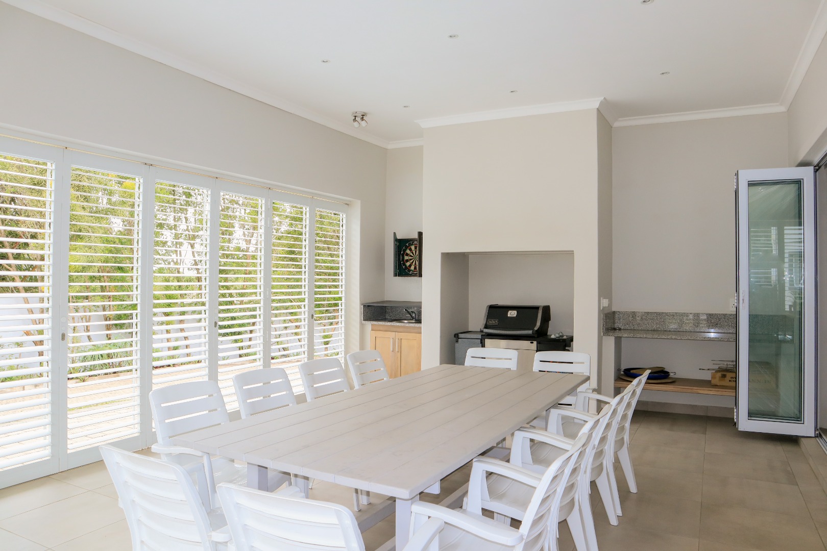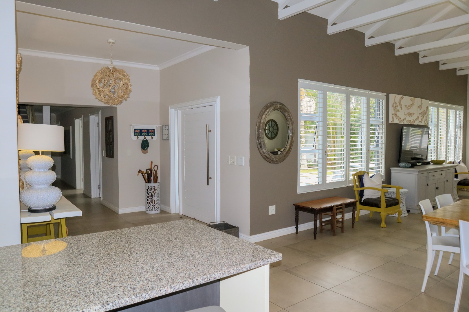 Step into a world of elegance and sophistication with this stunning beach house, designed to captivate even the most discerning buyers. This exceptional property boasts modern finishes and fittings throughout, offering an inviting atmosphere for comfortable living. As you enter, you'll be greeted by spacious open-plan living areas, featuring elegant double-volume ceilings and exposed beams that exude charm and character. The inviting enclosed patio and braai area provide the perfect space for entertaining, while the large designer kitchen is a chef's dream. Complete with double eye-level ovens, a gas hob, sleek granite countertops, and ample cupboard space, you'll have everything you need to create culinary masterpieces.