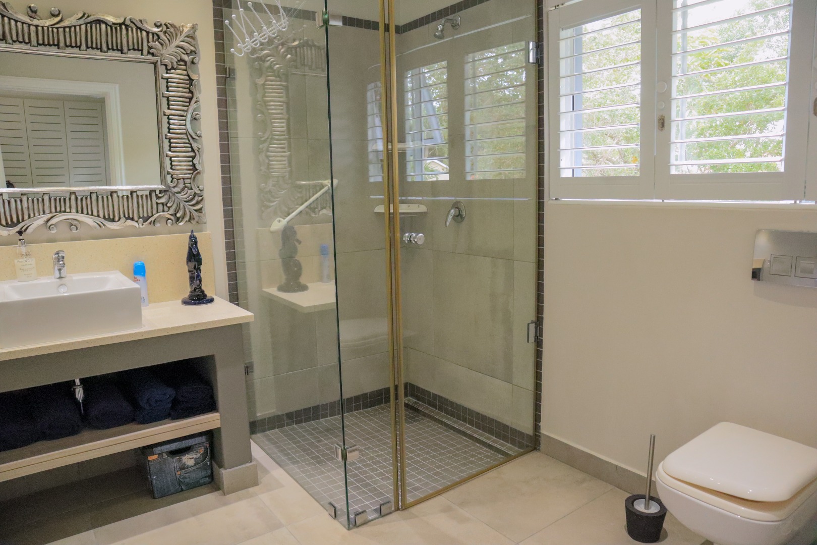 This beach house offers seven well-appointed bedrooms, each equipped with built-in cupboards and air conditioning. Six of the bedrooms are complemented by en-suite bathrooms, with three offering luxurious full bathrooms and three featuring spacious showers. Upstairs, you'll find three generously proportioned additional bedrooms that provide plenty of space for family and guests.