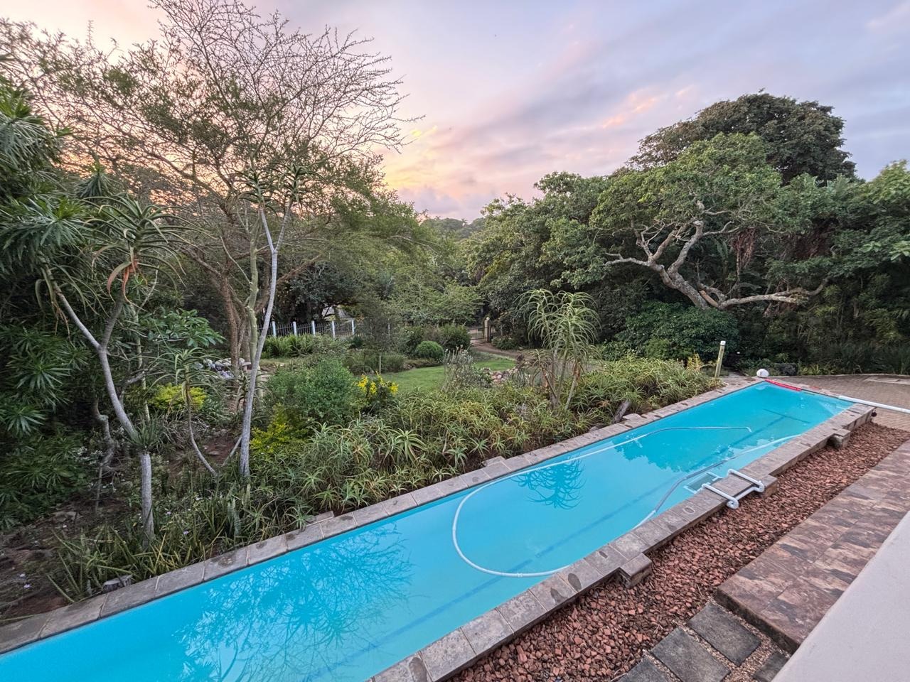 Discover this inviting two-story residence in Leisure Bay, Port Edward, offering a harmonious blend of comfort and coastal living. The property boasts a lush, well-maintained garden with mature trees and a spacious brick-paved driveway, creating a private and verdant entrance. Inside, the home features a generous 295 sqm floor size with an open-plan layout, seamlessly connecting the living, dining, and kitchen areas. Large windows throughout ensure abundant natural light and offer scenic views of the surrounding greenery.