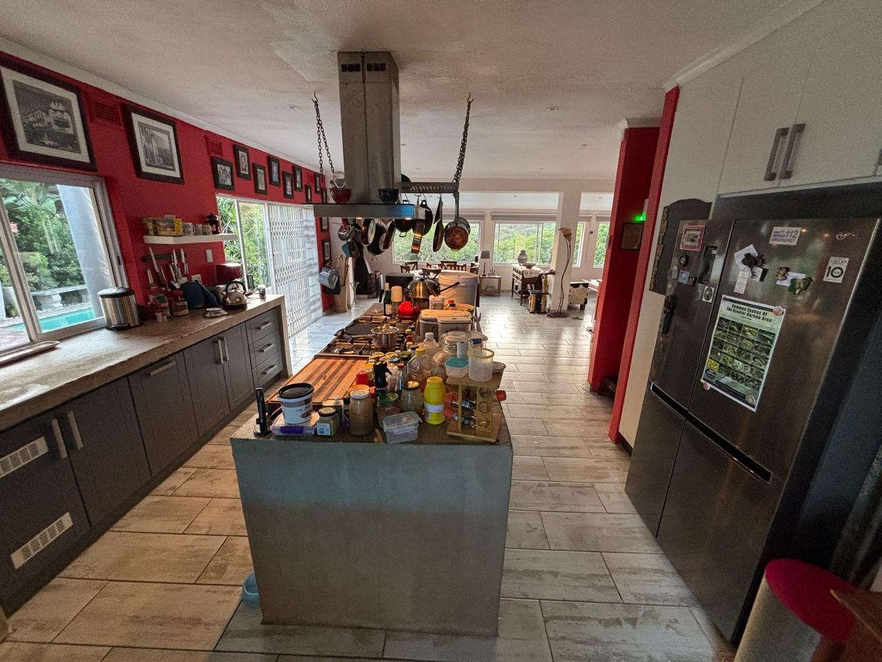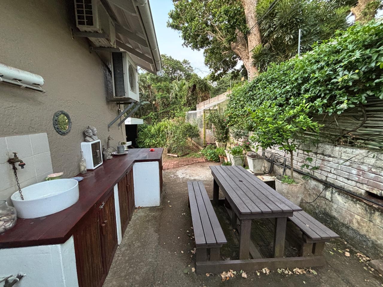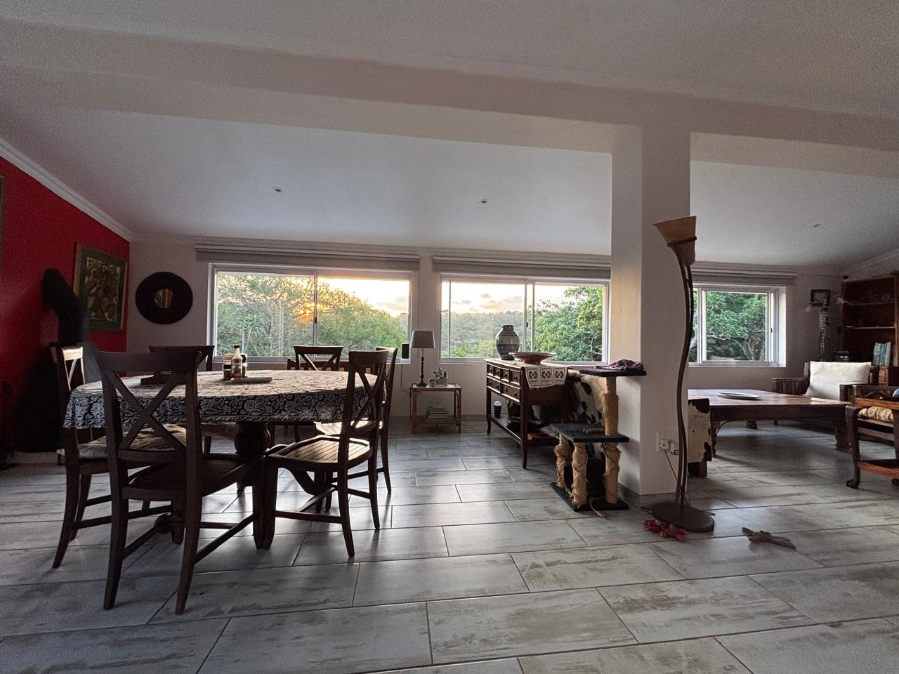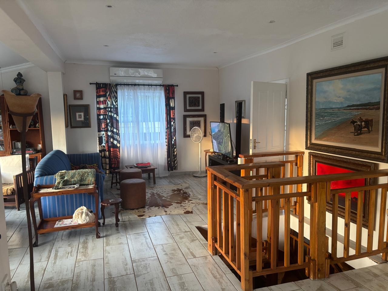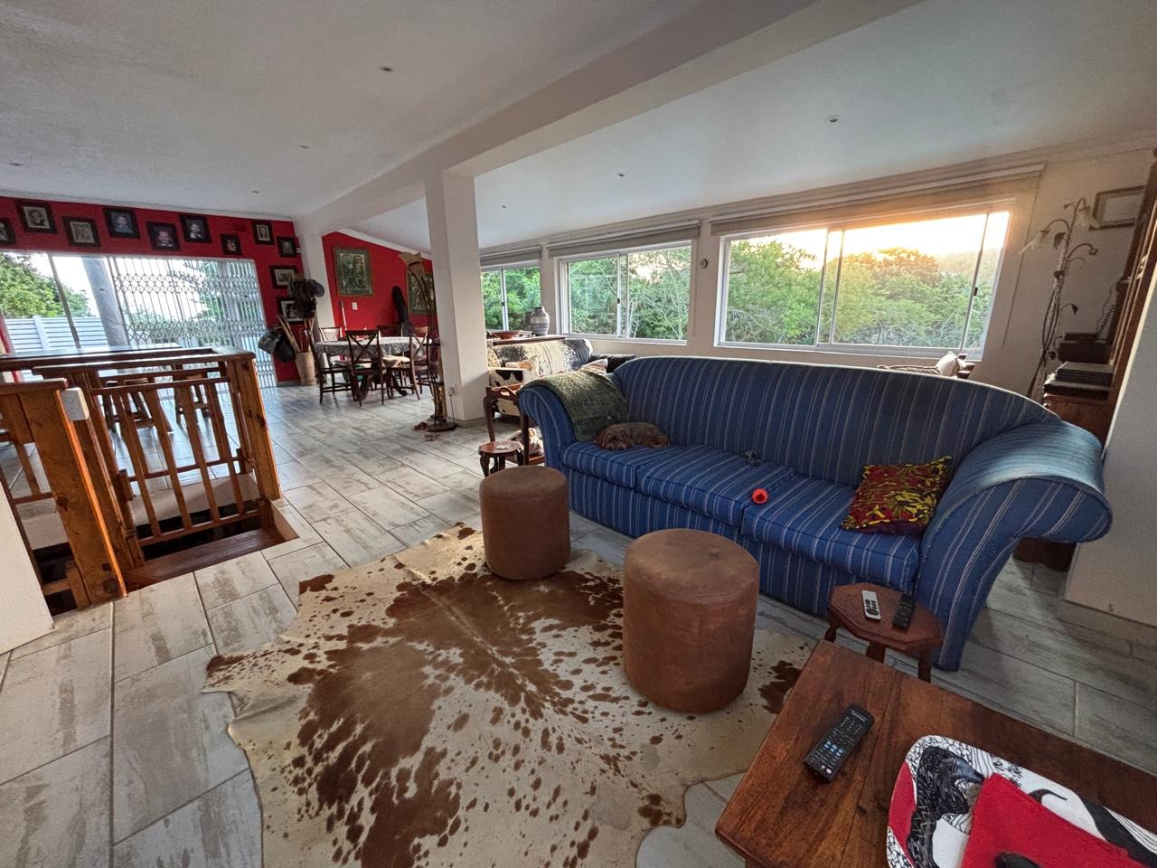 Discover this inviting two-story residence in Leisure Bay, Port Edward, offering a harmonious blend of comfort and coastal living. The property boasts a lush, well-maintained garden with mature trees and a spacious brick-paved driveway, creating a private and verdant entrance. Inside, the home features a generous 295 sqm floor size with an open-plan layout, seamlessly connecting the living, dining, and kitchen areas. Large windows throughout ensure abundant natural light and offer scenic views of the surrounding greenery.