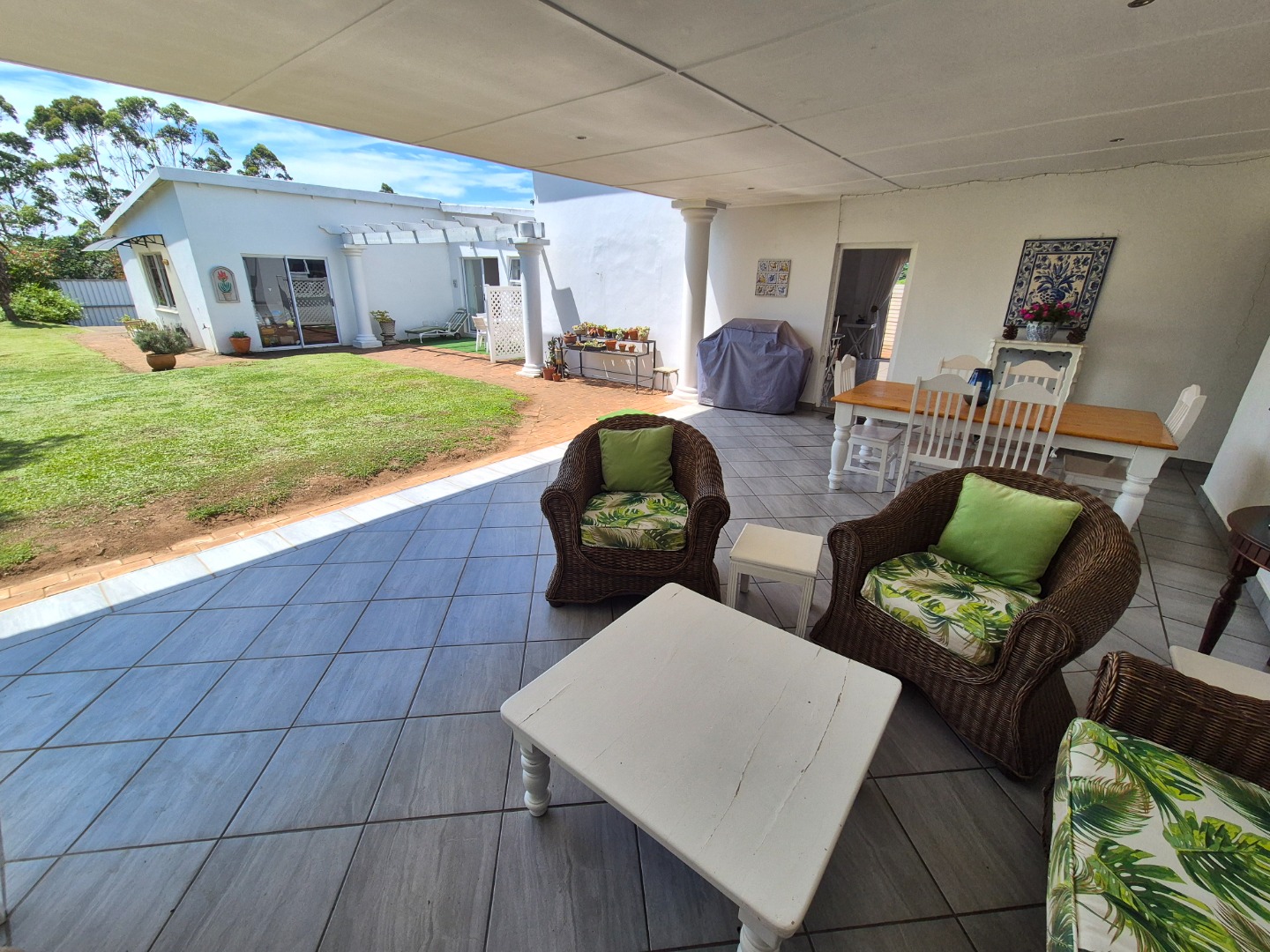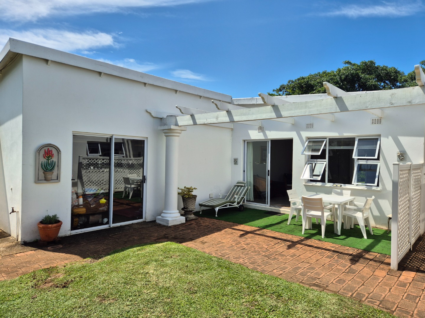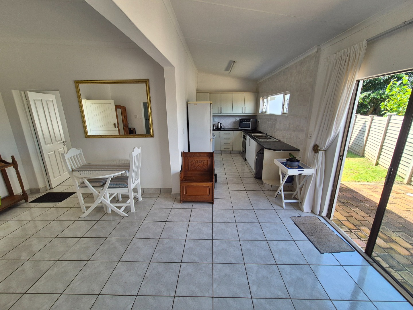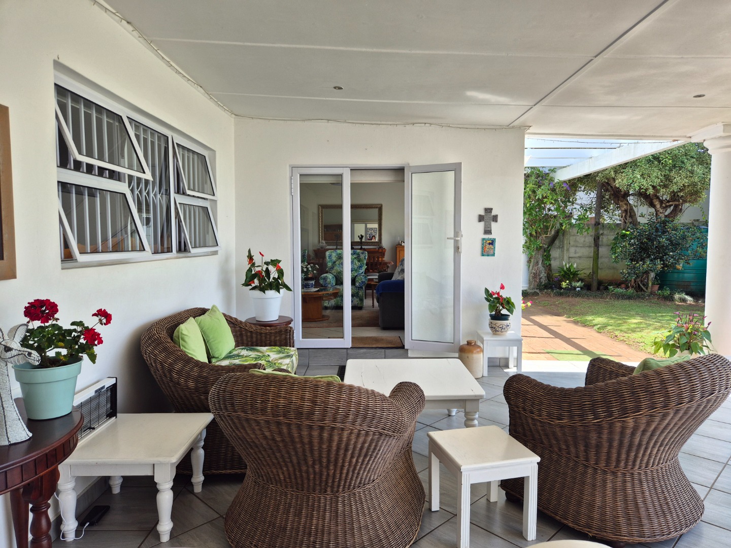 The versatile flatlet offers excellent options for extended family, guest accommodation or rental income. It comprises a bedroom with ample built-in cupboards, a stylish bathroom with walk-in shower, a well-fitted kitchen with gas stove, and a generous living area opening via sliding doors to a private courtyard. The flatlet and main residence share a large covered patio with peaceful garden views.