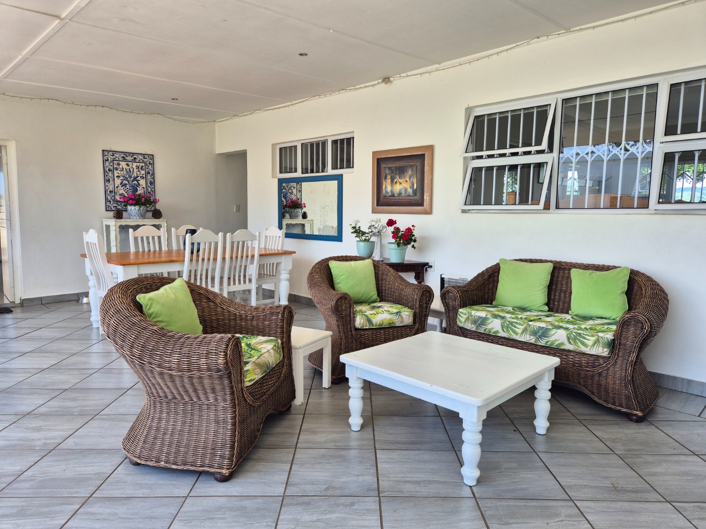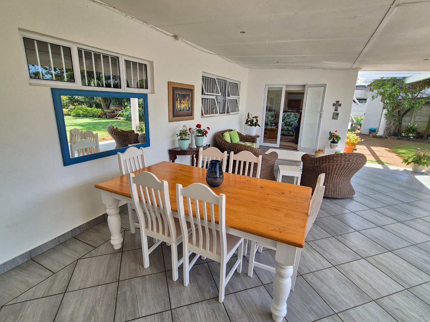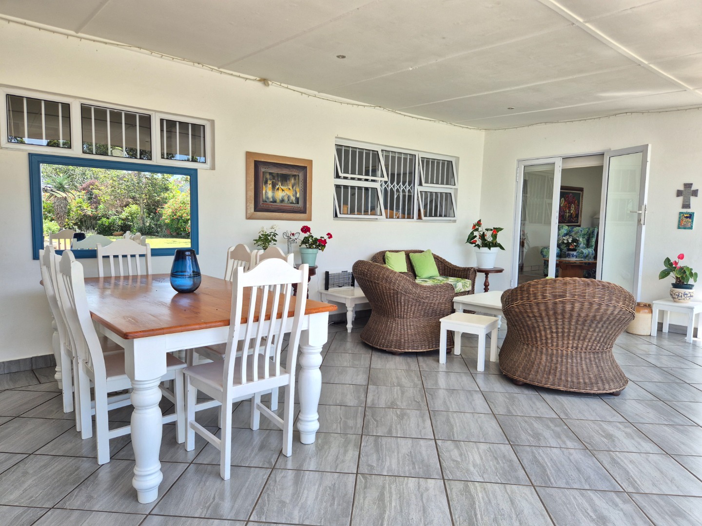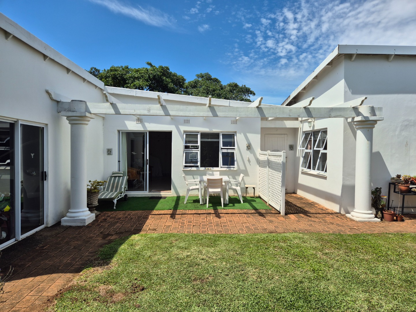 The versatile flatlet offers excellent options for extended family, guest accommodation or rental income. It comprises a bedroom with ample built-in cupboards, a stylish bathroom with walk-in shower, a well-fitted kitchen with gas stove, and a generous living area opening via sliding doors to a private courtyard. The flatlet and main residence share a large covered patio with peaceful garden views.