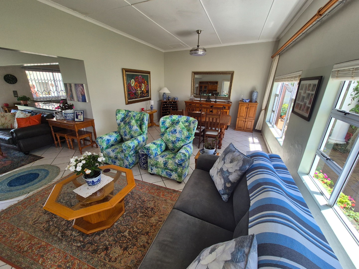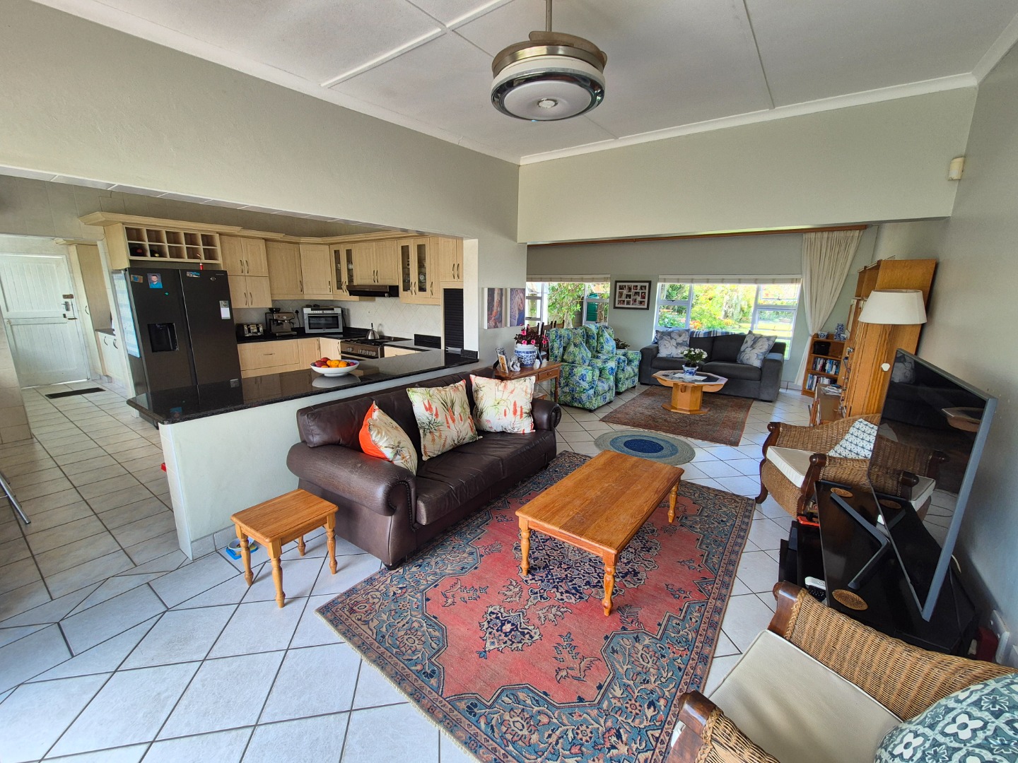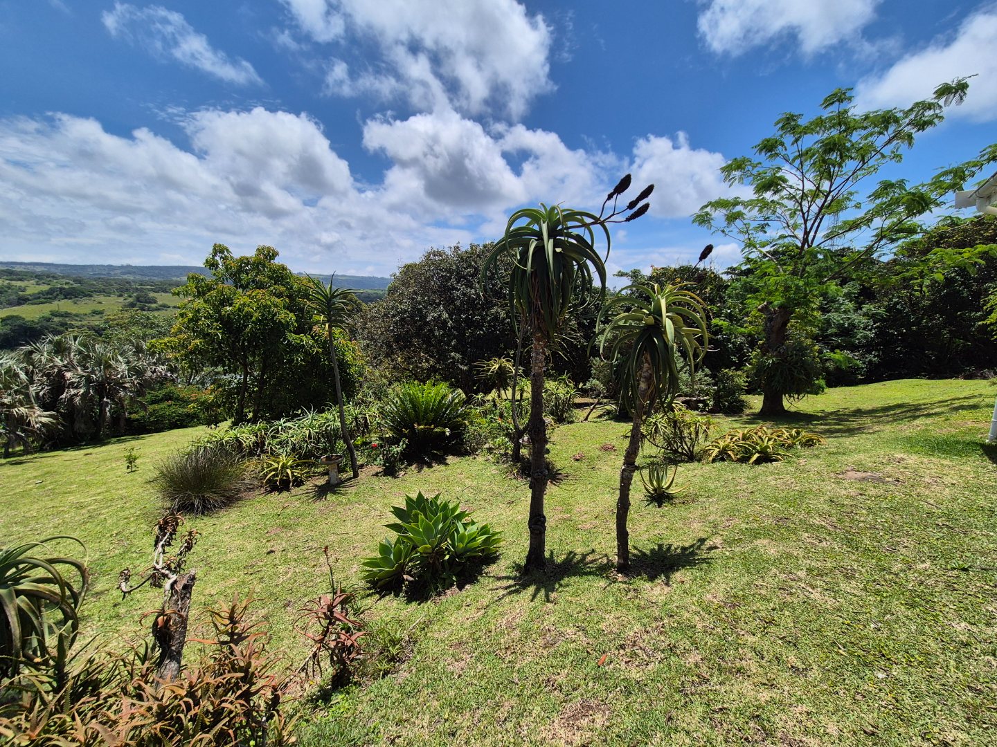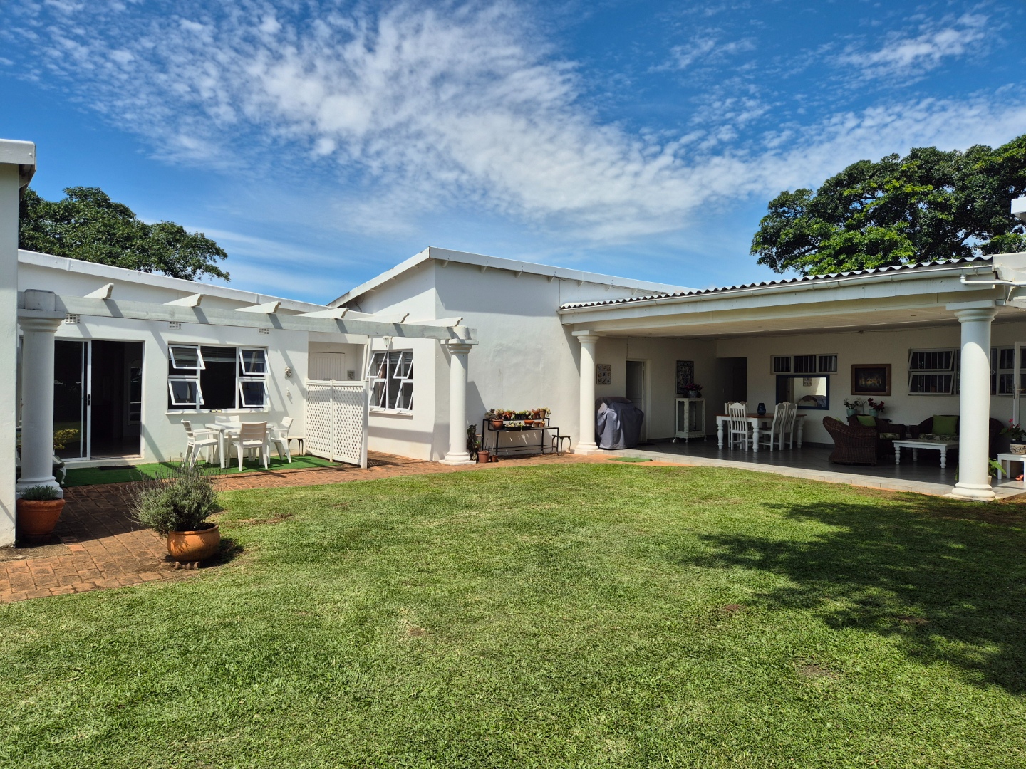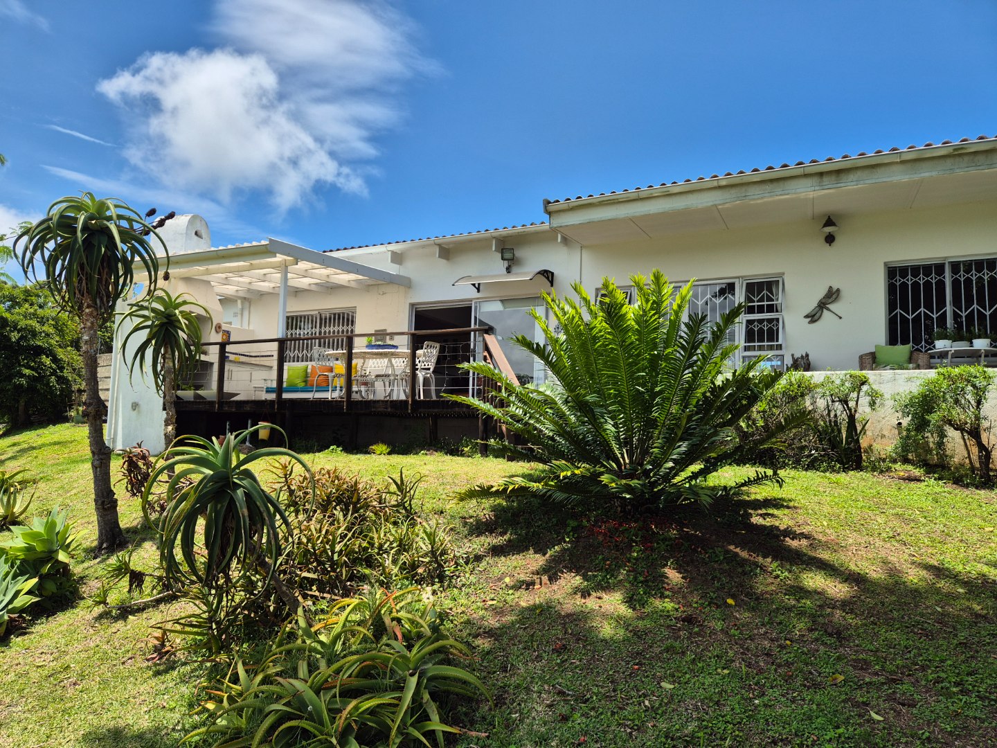 Outdoor living is a key highlight, with a built-in braai, multiple patios and decks perfect for al fresco dining and relaxation. The expansive garden is meticulously maintained and planted with mature avo, litchi and mango trees, while scenic valley views, glimpses of a neighbouring dam and spectacular sunsets enhance the lifestyle appeal.