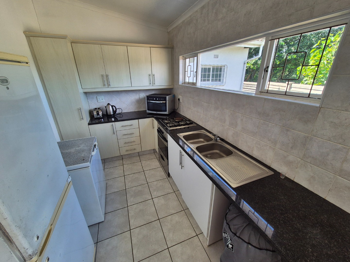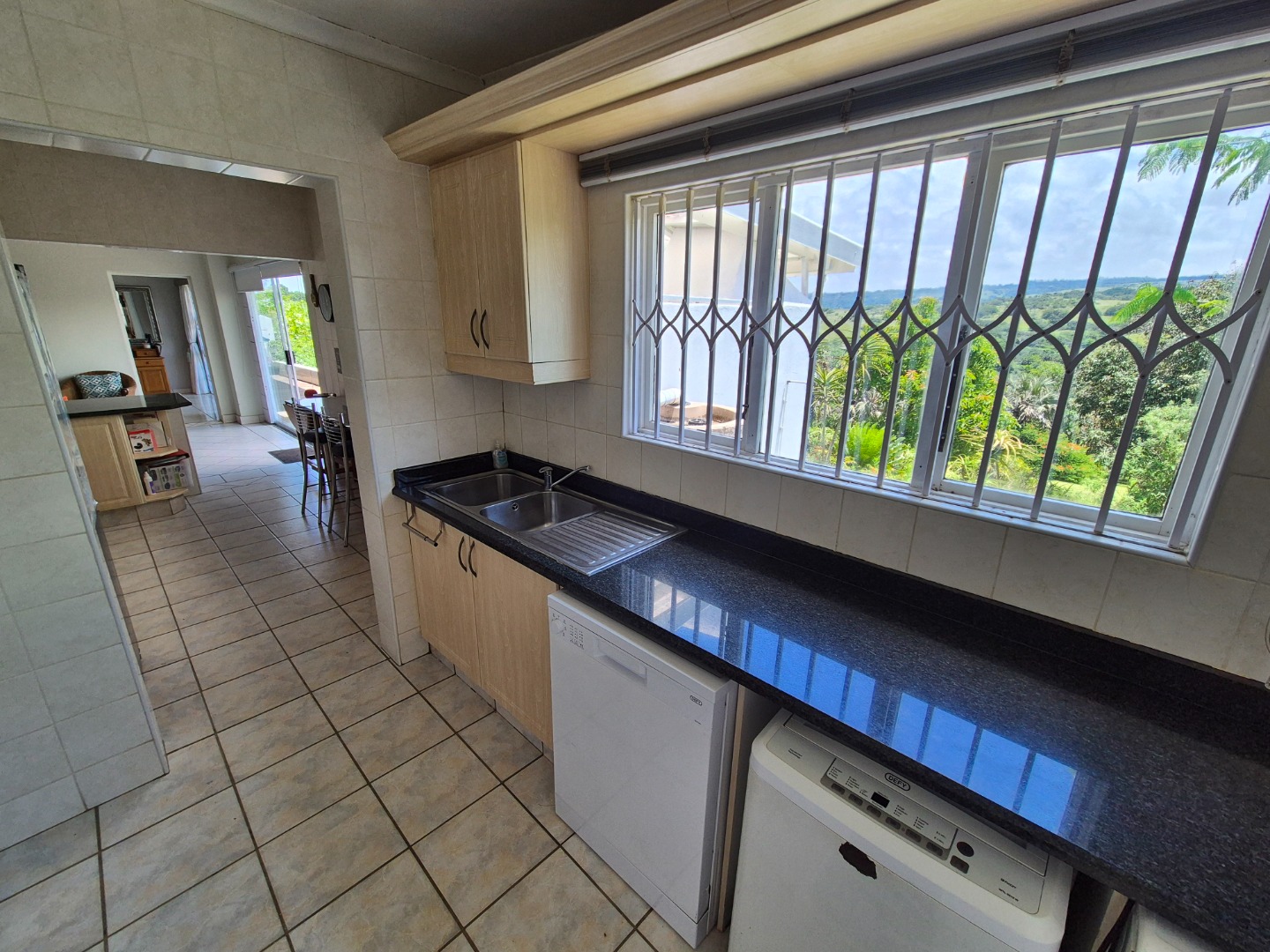 The main residence is designed for comfortable living and effortless entertaining. Interior spaces include a formal dining room and a spacious lounge that opens onto a balau-wood deck. The home features a large main bedroom with walk-in cupboard and full en-suite bathroom fitted with bath, shower and double basin. A well-appointed kitchen with breakfast bar overlooks the garden and offers a gas stove, ample cabinetry, scullery and access to a private courtyard. An office positioned off the scullery, with its own separate entrance, provides an ideal work-from-home setup.