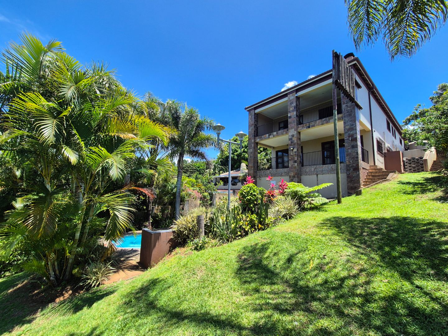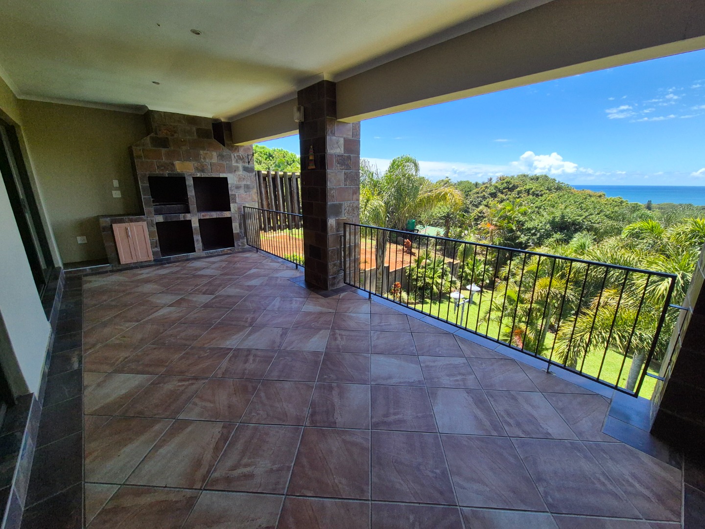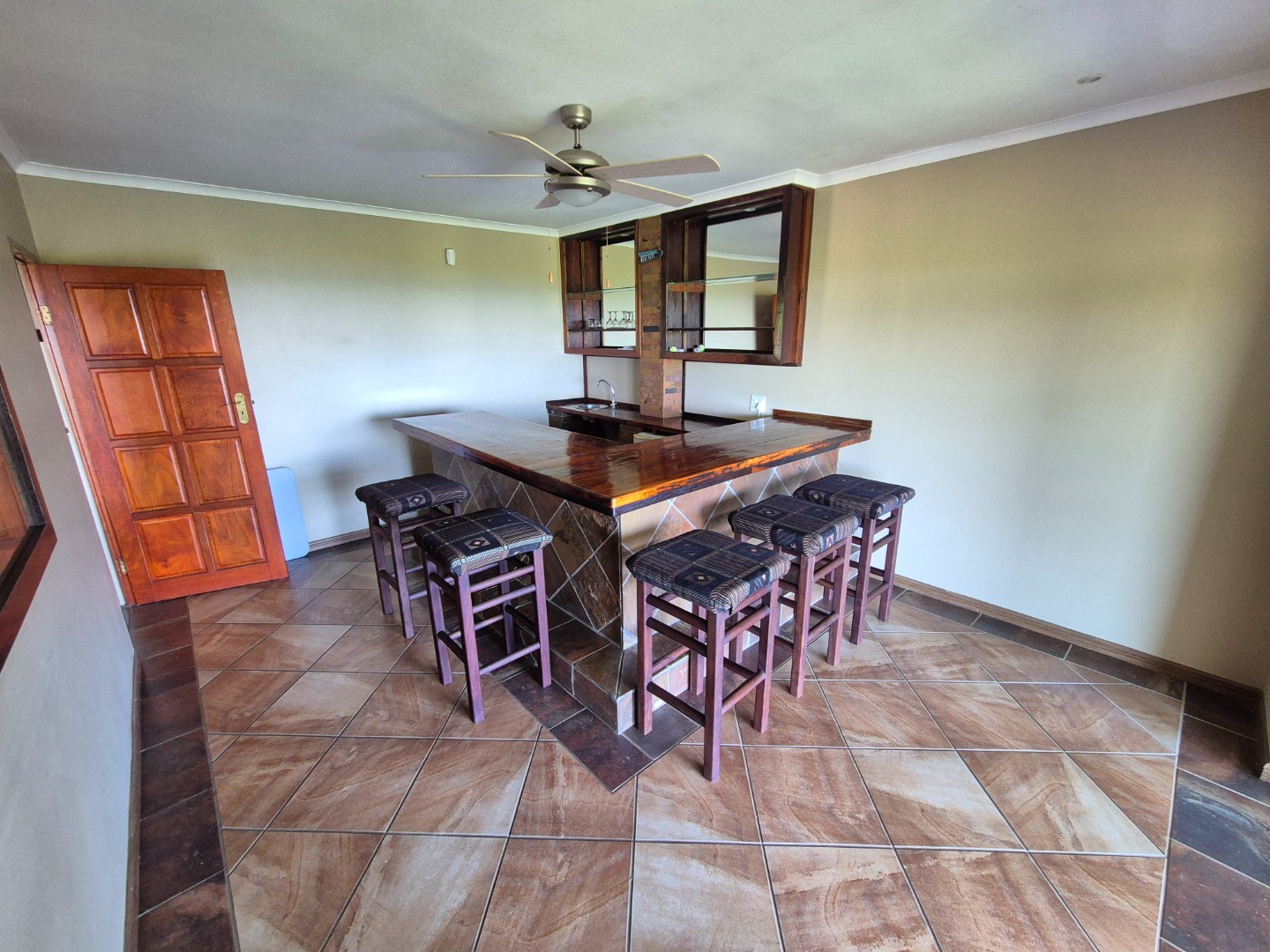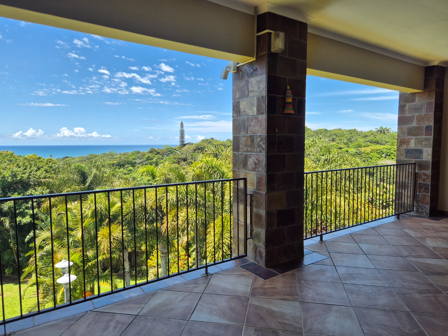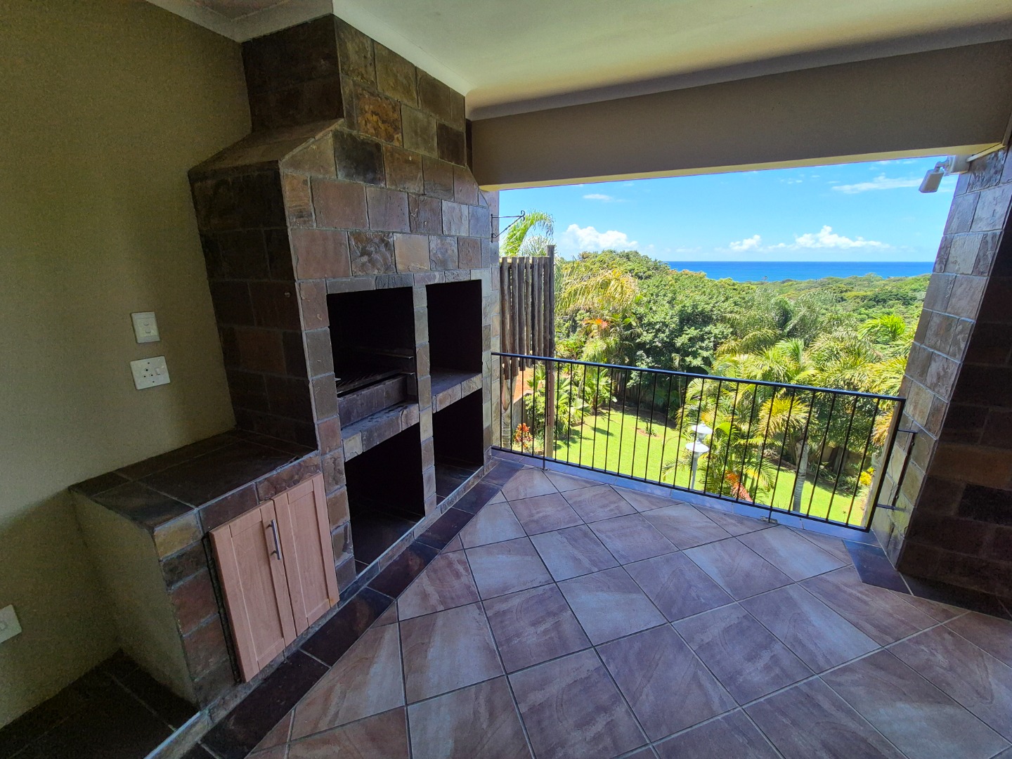 Step outside to embrace the quintessential South African lifestyle. The property boasts a private swimming pool, perfect for cooling off on warm days, complemented by a built-in braai area and tiled seating for effortless outdoor entertaining. Lush tropical landscaping, mature palm trees, and a well-maintained garden create a serene and private oasis. Multiple balconies provide elevated positions to enjoy the scenic and distant sea views, enhancing the home's appeal.