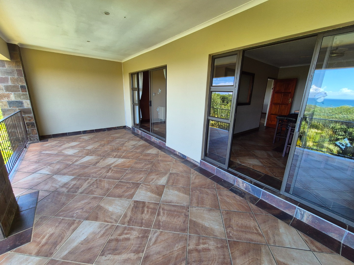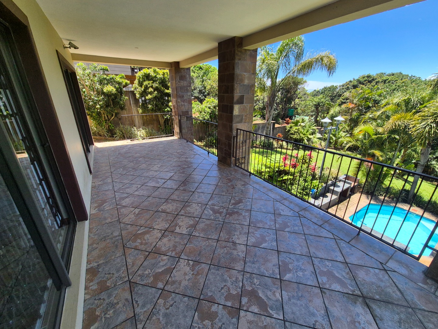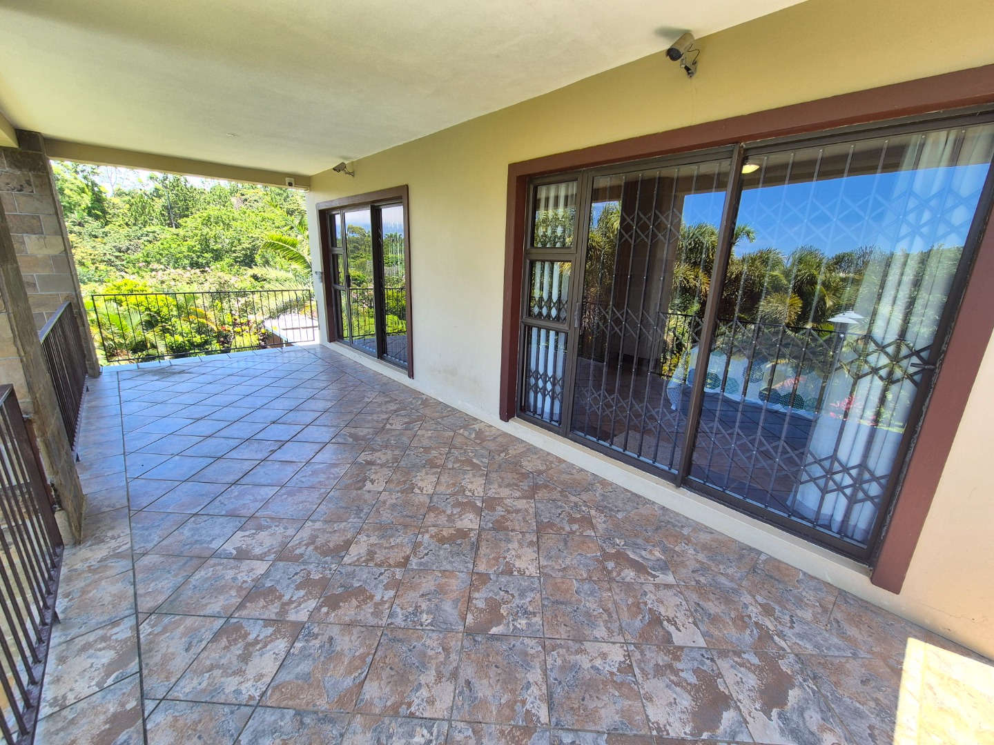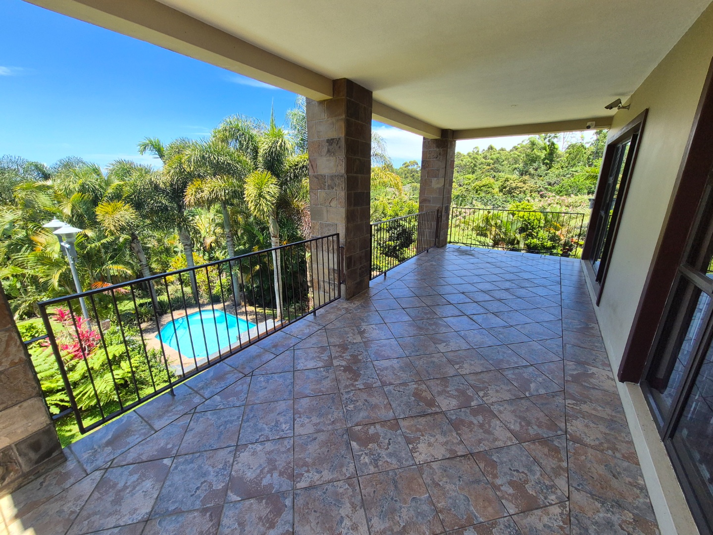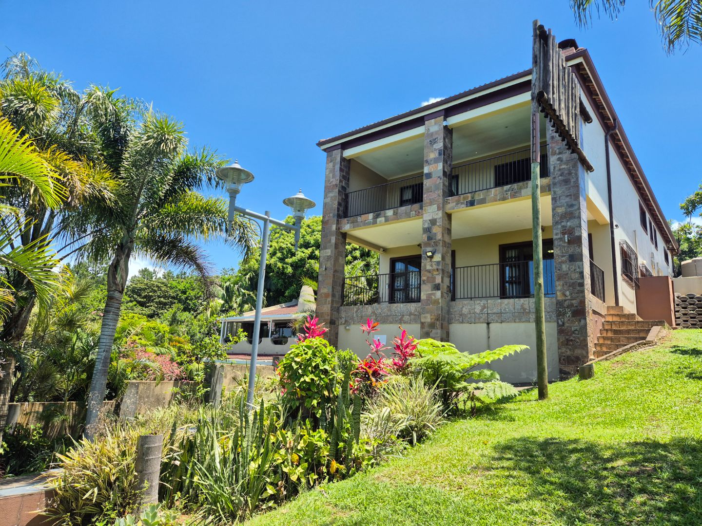 Step outside to embrace the quintessential South African lifestyle. The property boasts a private swimming pool, perfect for cooling off on warm days, complemented by a built-in braai area and tiled seating for effortless outdoor entertaining. Lush tropical landscaping, mature palm trees, and a well-maintained garden create a serene and private oasis. Multiple balconies provide elevated positions to enjoy the scenic and distant sea views, enhancing the home's appeal.