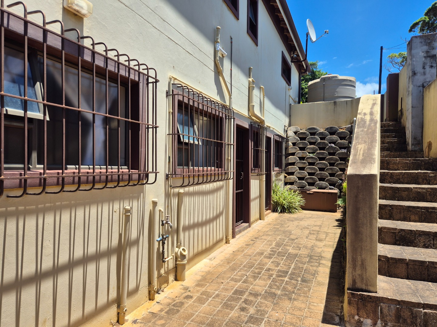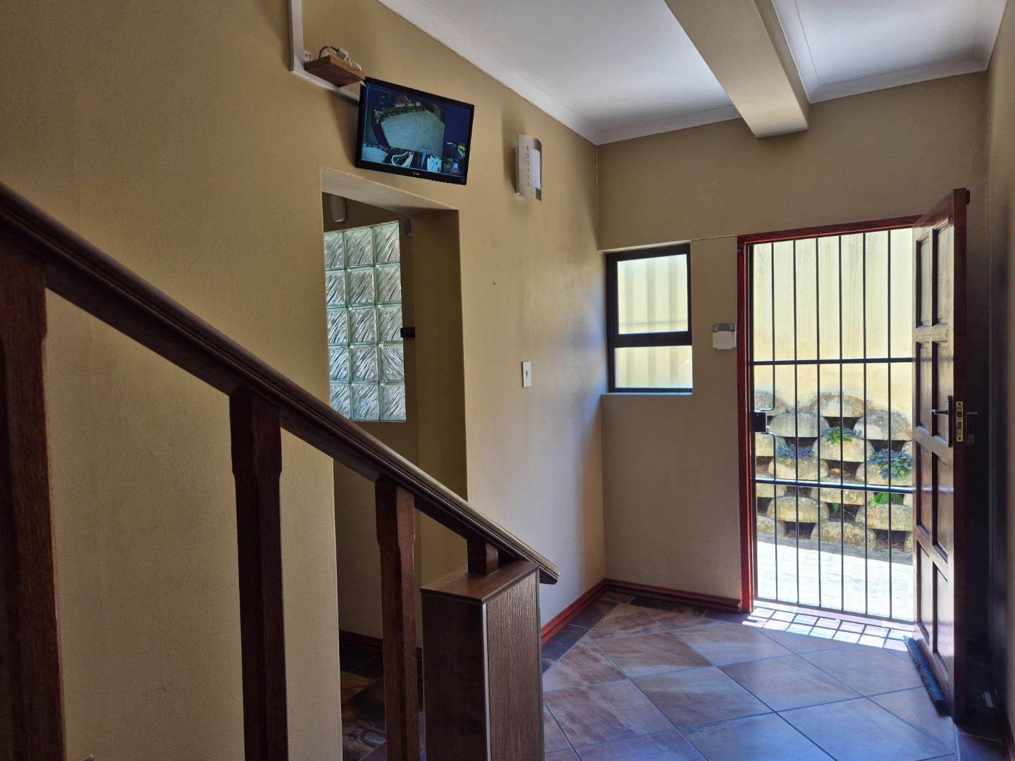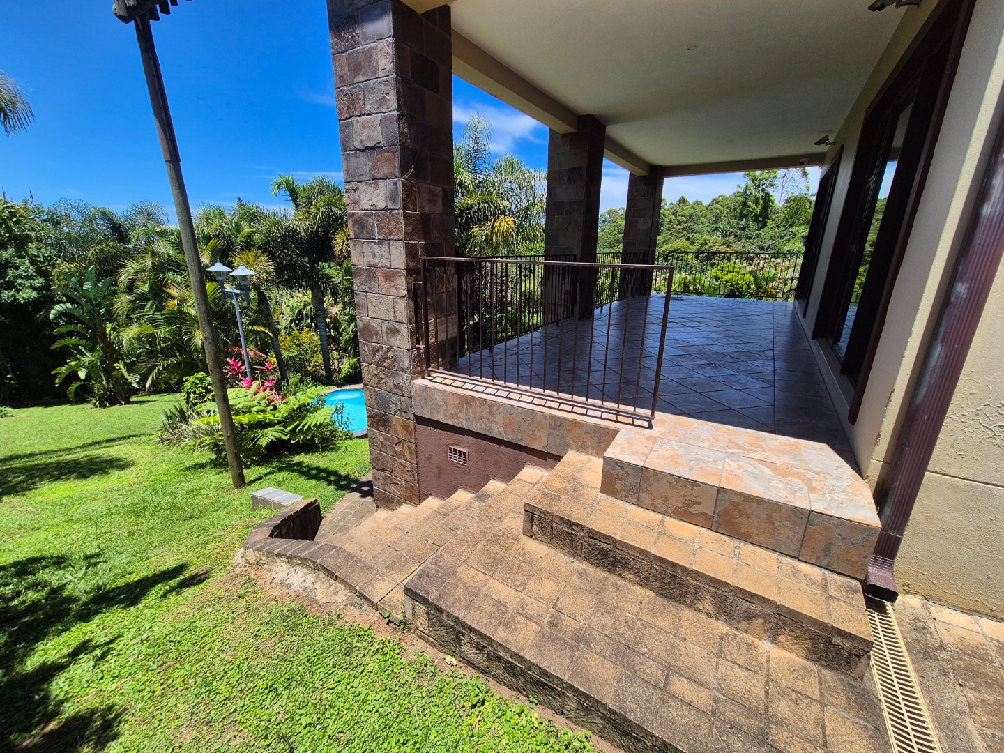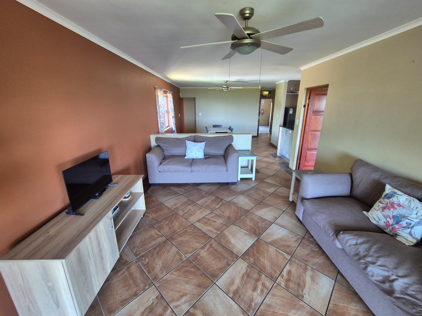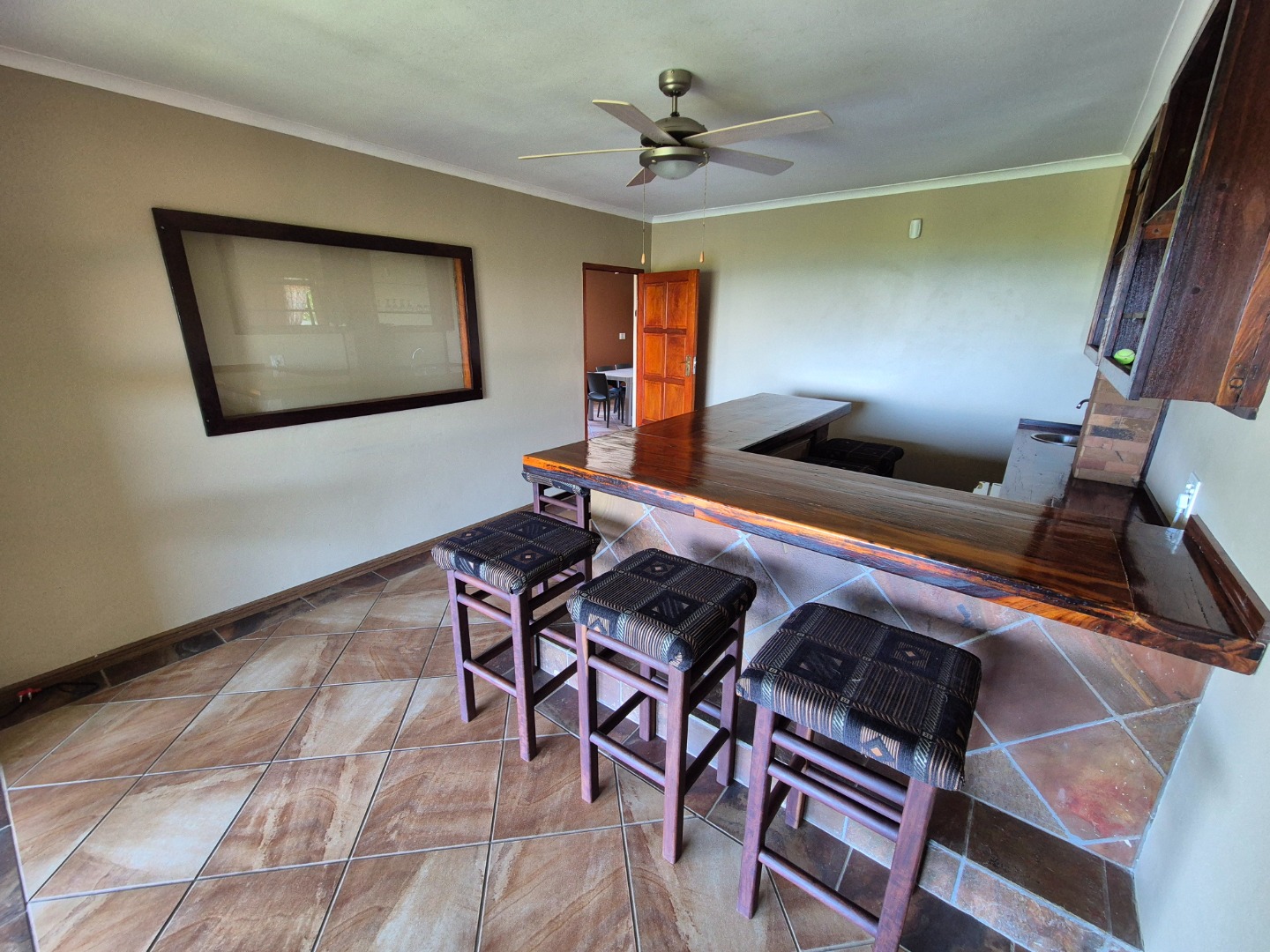Step outside to embrace the quintessential South African lifestyle. The property boasts a private swimming pool, perfect for cooling off on warm days, complemented by a built-in braai area and tiled seating for effortless outdoor entertaining. Lush tropical landscaping, mature palm trees, and a well-maintained garden create a serene and private oasis. Multiple balconies provide elevated positions to enjoy the scenic and distant sea views, enhancing the home's appeal.