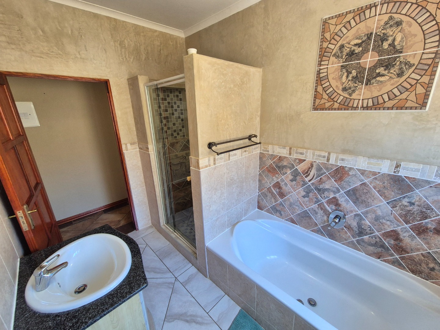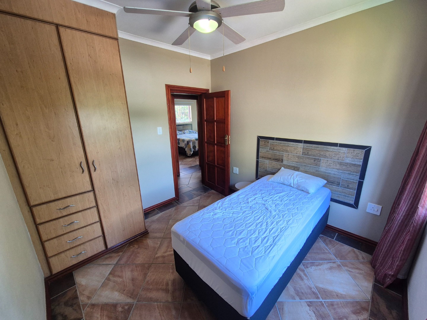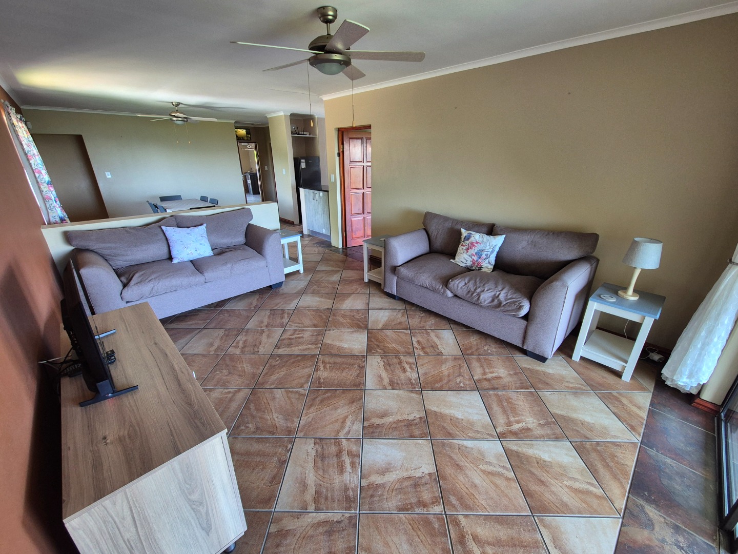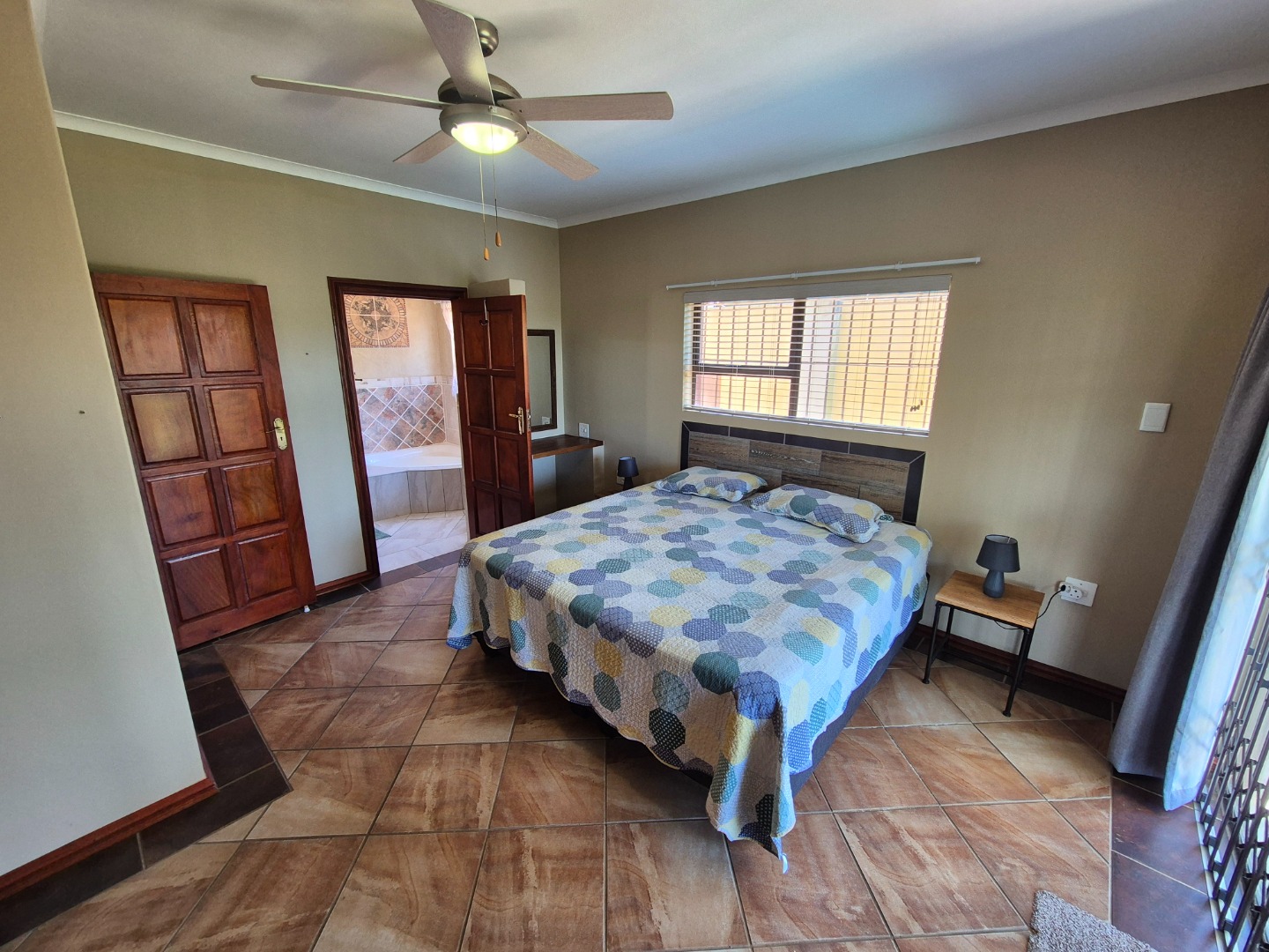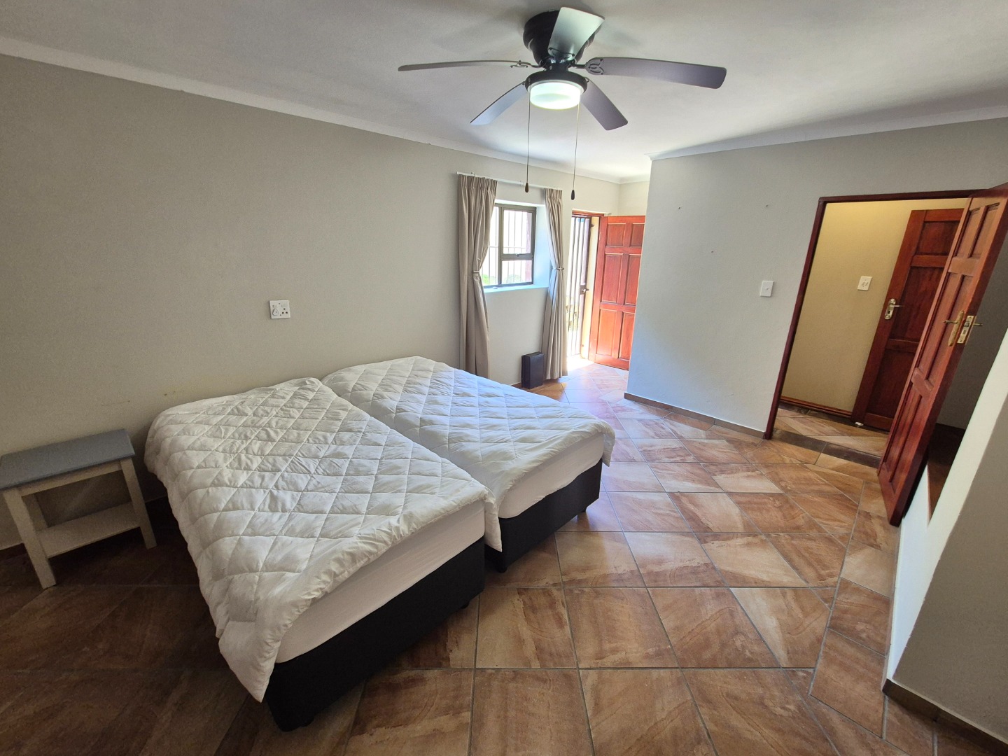 Step outside to embrace the quintessential South African lifestyle. The property boasts a private swimming pool, perfect for cooling off on warm days, complemented by a built-in braai area and tiled seating for effortless outdoor entertaining. Lush tropical landscaping, mature palm trees, and a well-maintained garden create a serene and private oasis. Multiple balconies provide elevated positions to enjoy the scenic and distant sea views, enhancing the home's appeal.