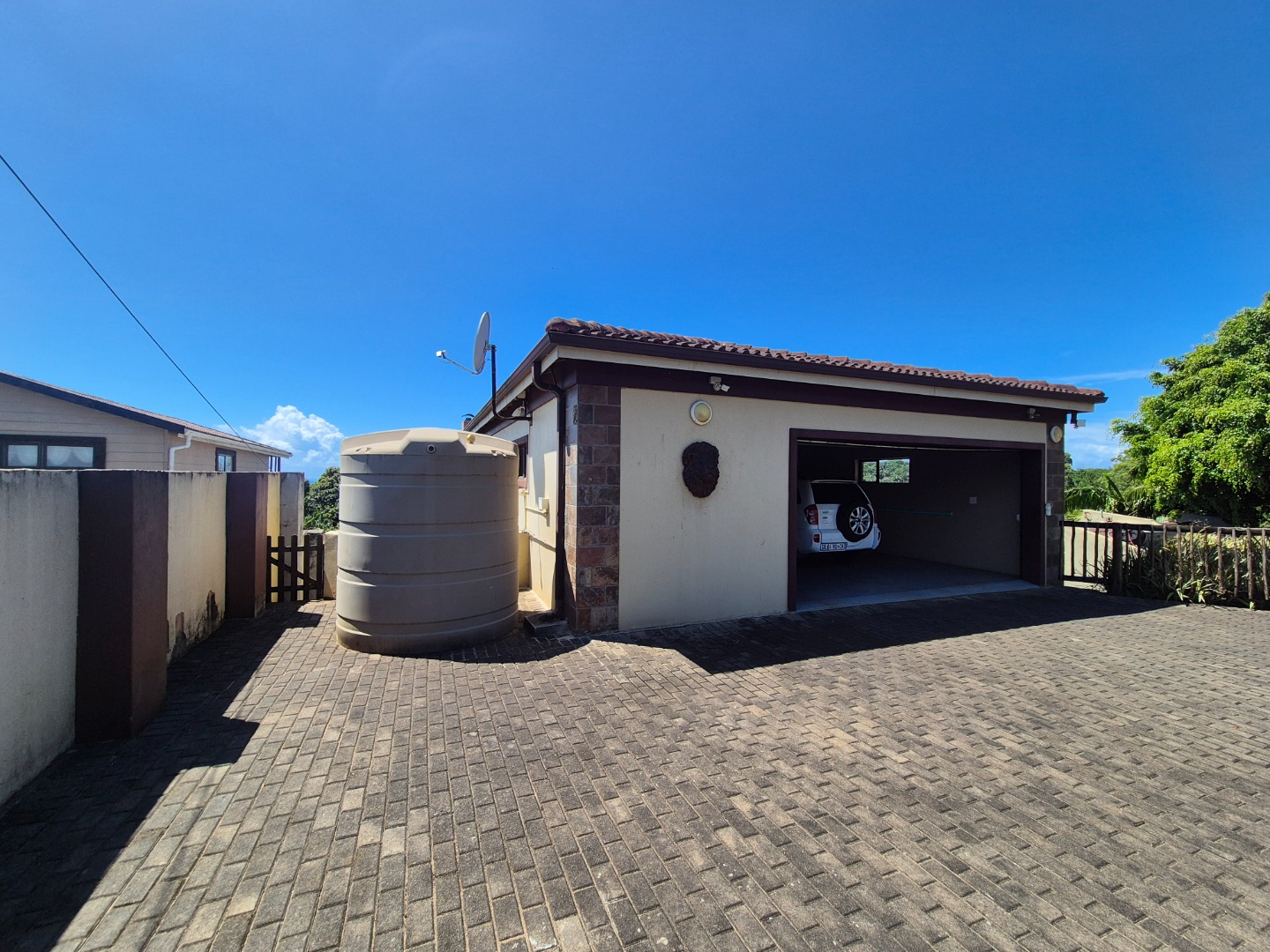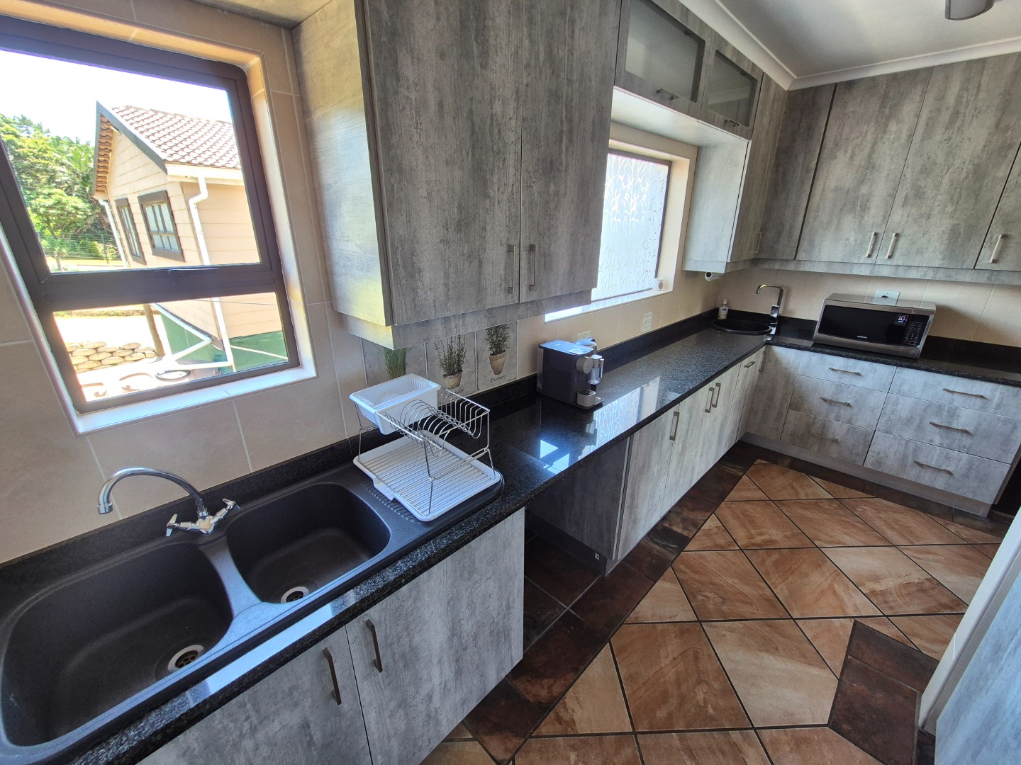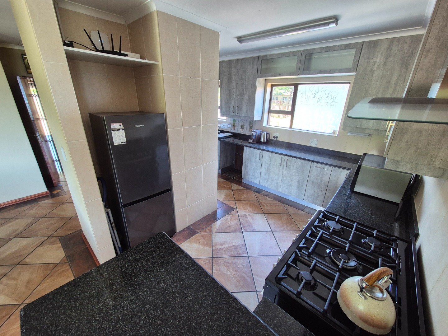 Discover this inviting multi-level residence nestled in the picturesque coastal suburb of Leisure Bay, Port Edward. Designed for comfortable living and entertaining, this property offers six spacious bedrooms and three well-appointed bathrooms, including one en-suite, ensuring ample accommodation for family and guests. The interior features a functional kitchen equipped with modern grey cabinetry, dark granite countertops, and a gas range, flowing seamlessly into the dining room and a welcoming lounge area, characterized by an open-plan design.