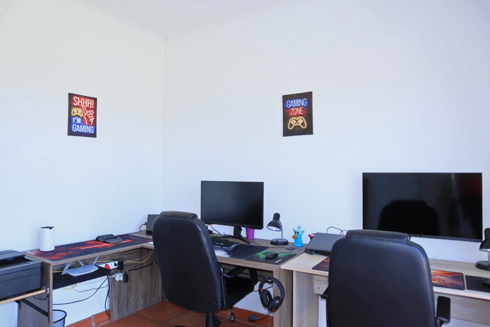 Outdoor Fun: The level, low-maintenance yard is perfect for children's play, complemented by a sheltered braai area ideal for secure family gatherings.