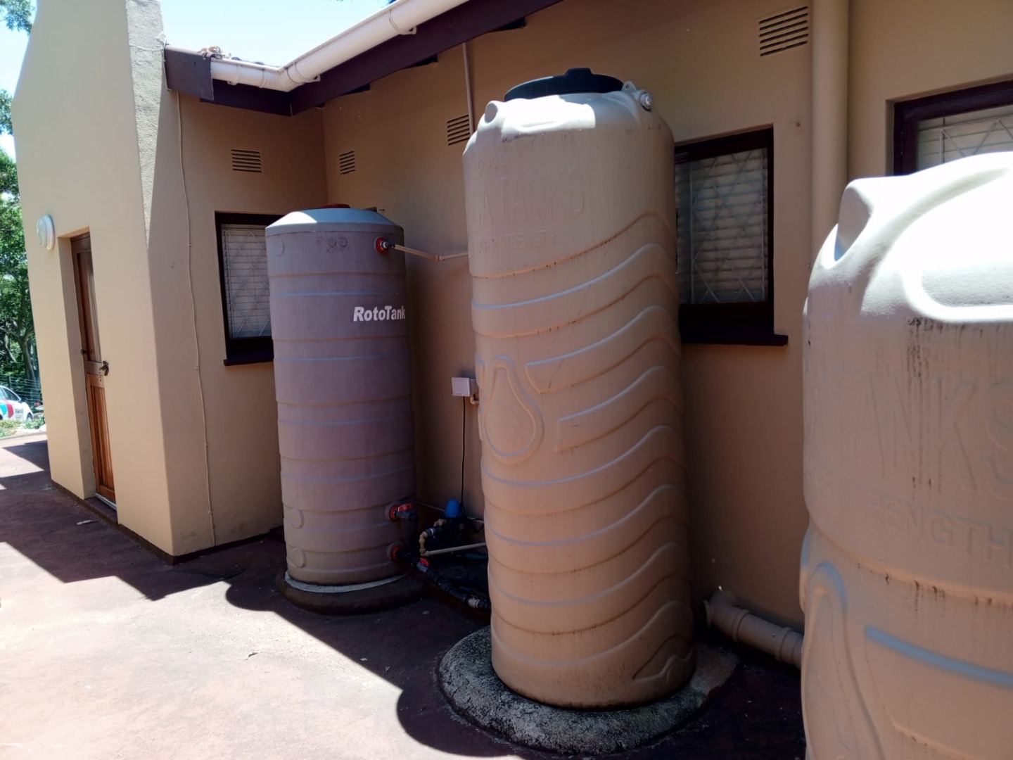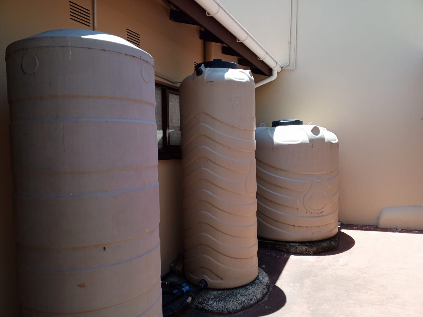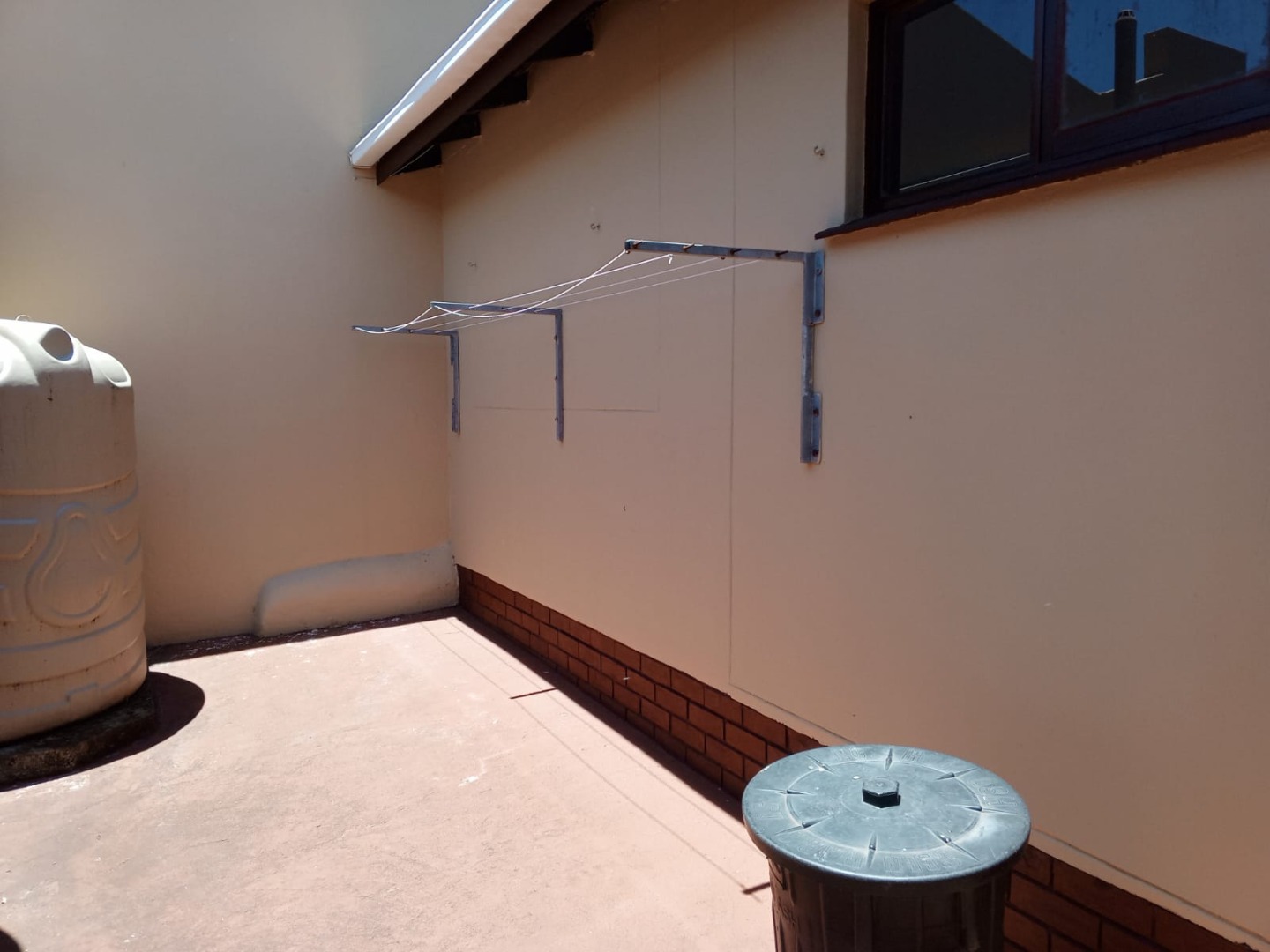 The townhouse offers two well-sized bedrooms with built-in cupboards, ceiling fans, and inverter extensions for lighting. There is a guest bathroom with a shower, basin, and toilet, while the spacious main bedroom features an en-suite bathroom with a bath, basin, and toilet, along with ample cupboard space. Additional features include an automated garage, three JoJo tanks (4,000 litres) with motors already connected, burglar proofing, fibre installed (activation required), security gates within the home, and a security system ready for activation. Conveniently located close to amenities, transport routes, malls, shops, hospitals, and the police station (approximately 12km away), with easy access to highways and the toll gate, this pet-friendly unit allows one small breed dog and offers comfortable, secure living in a sought-after complex.