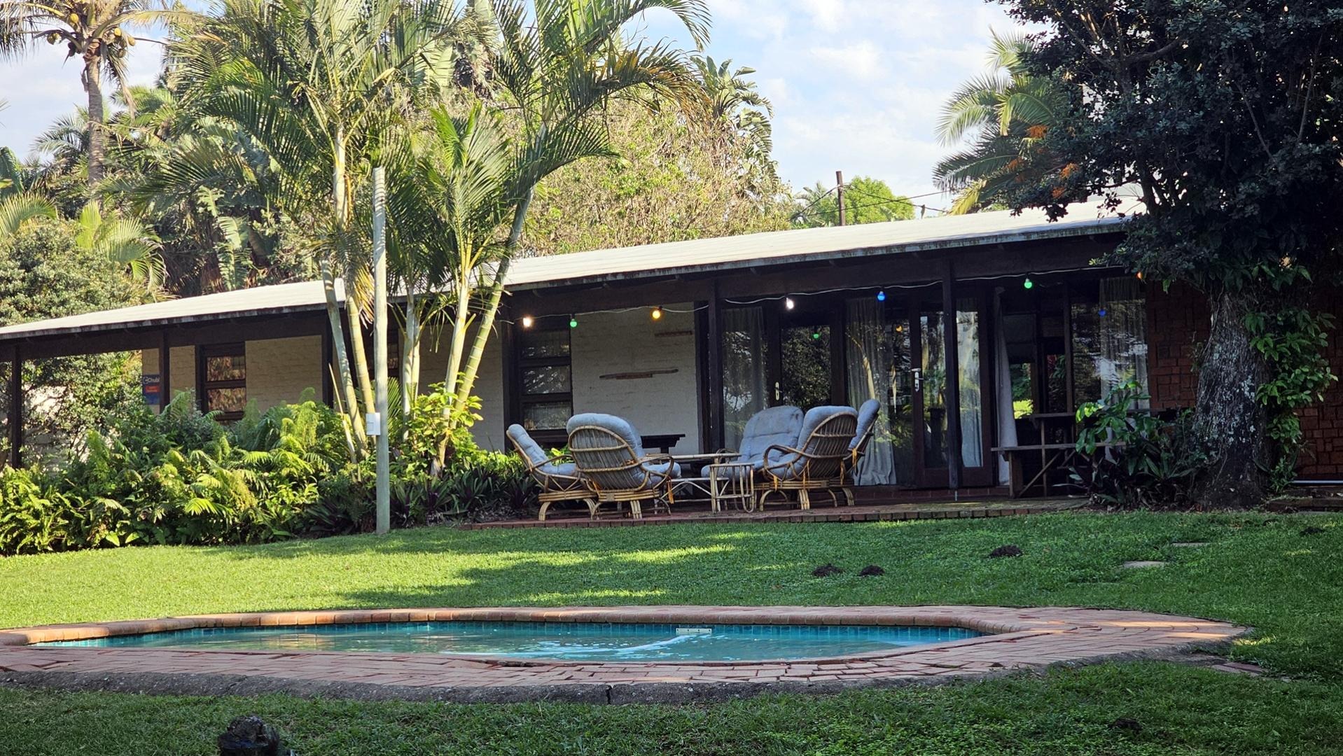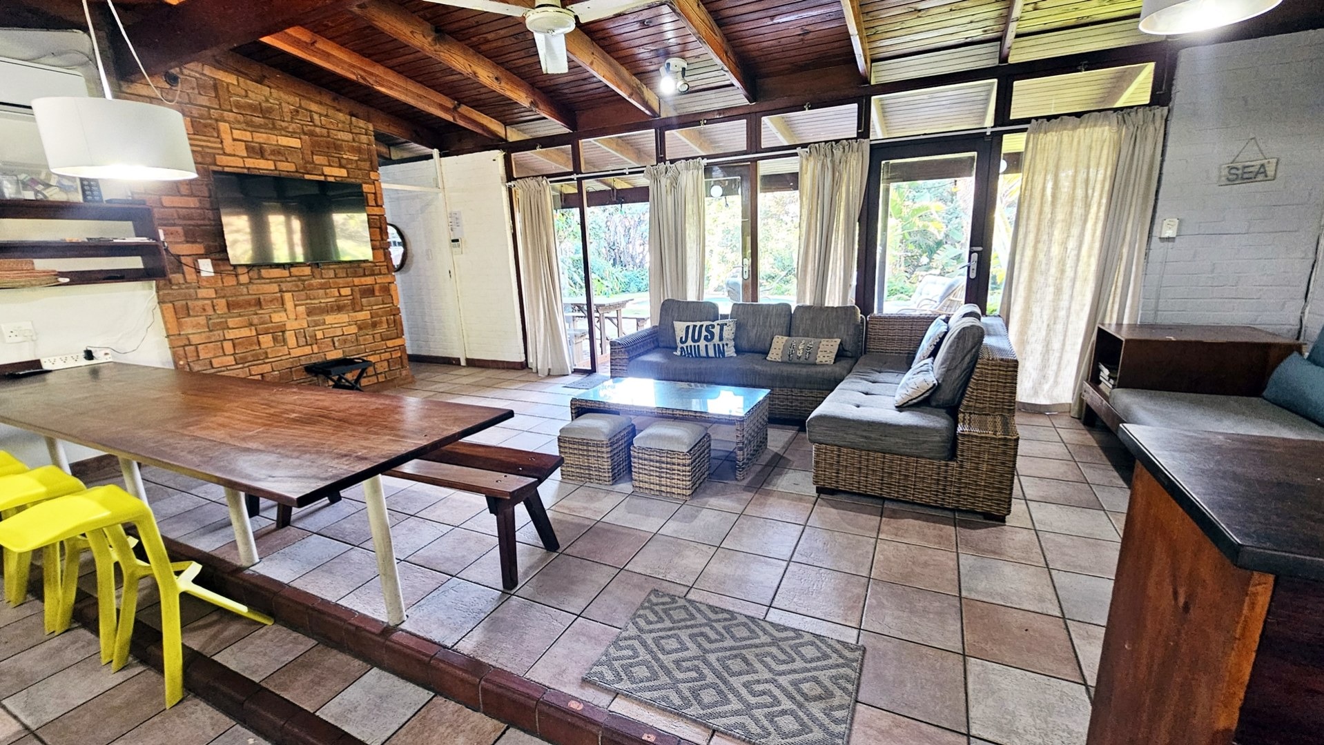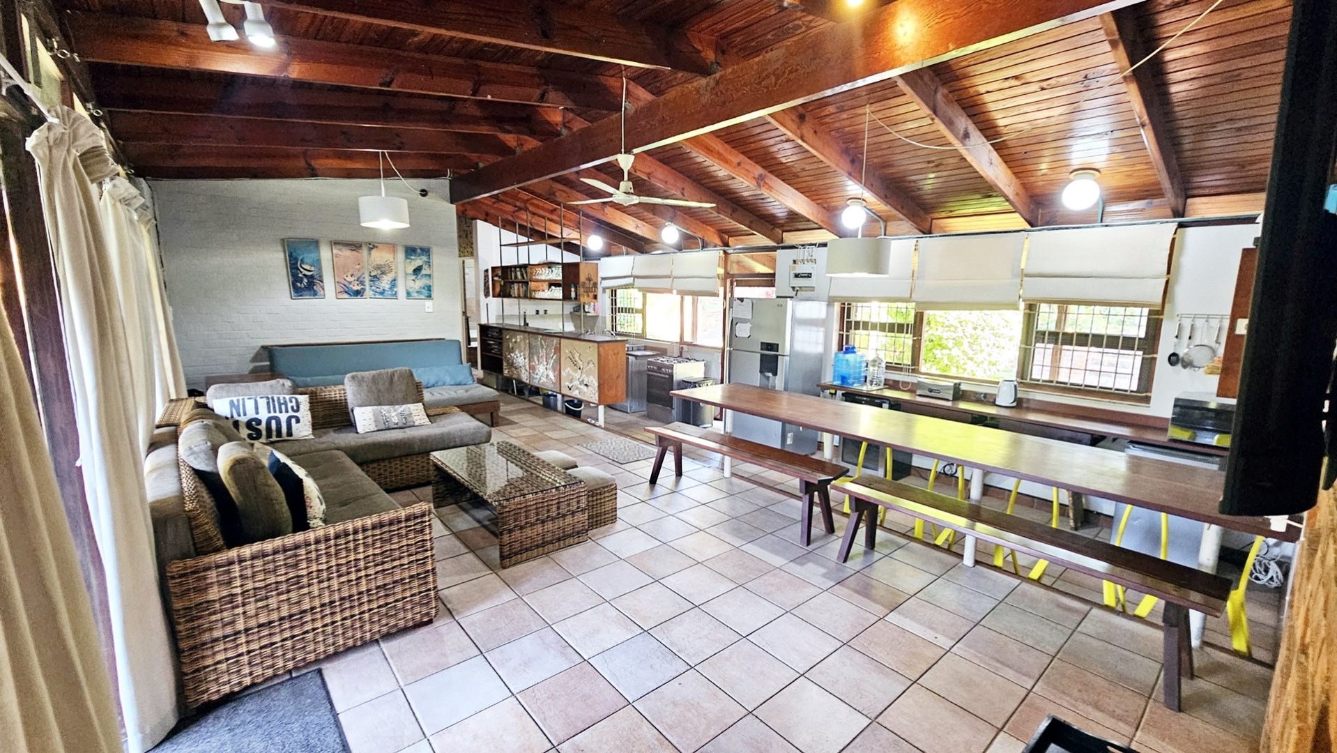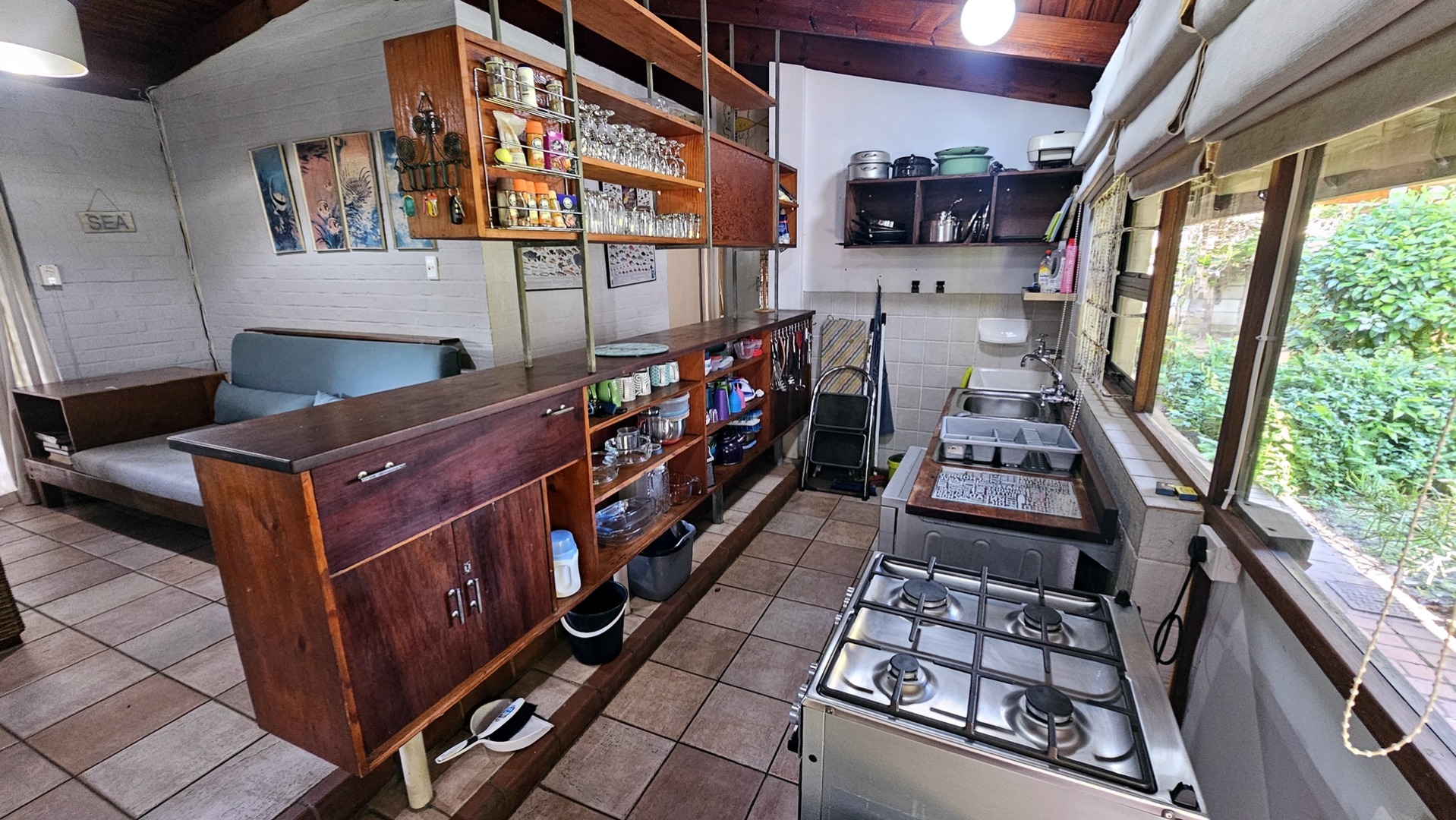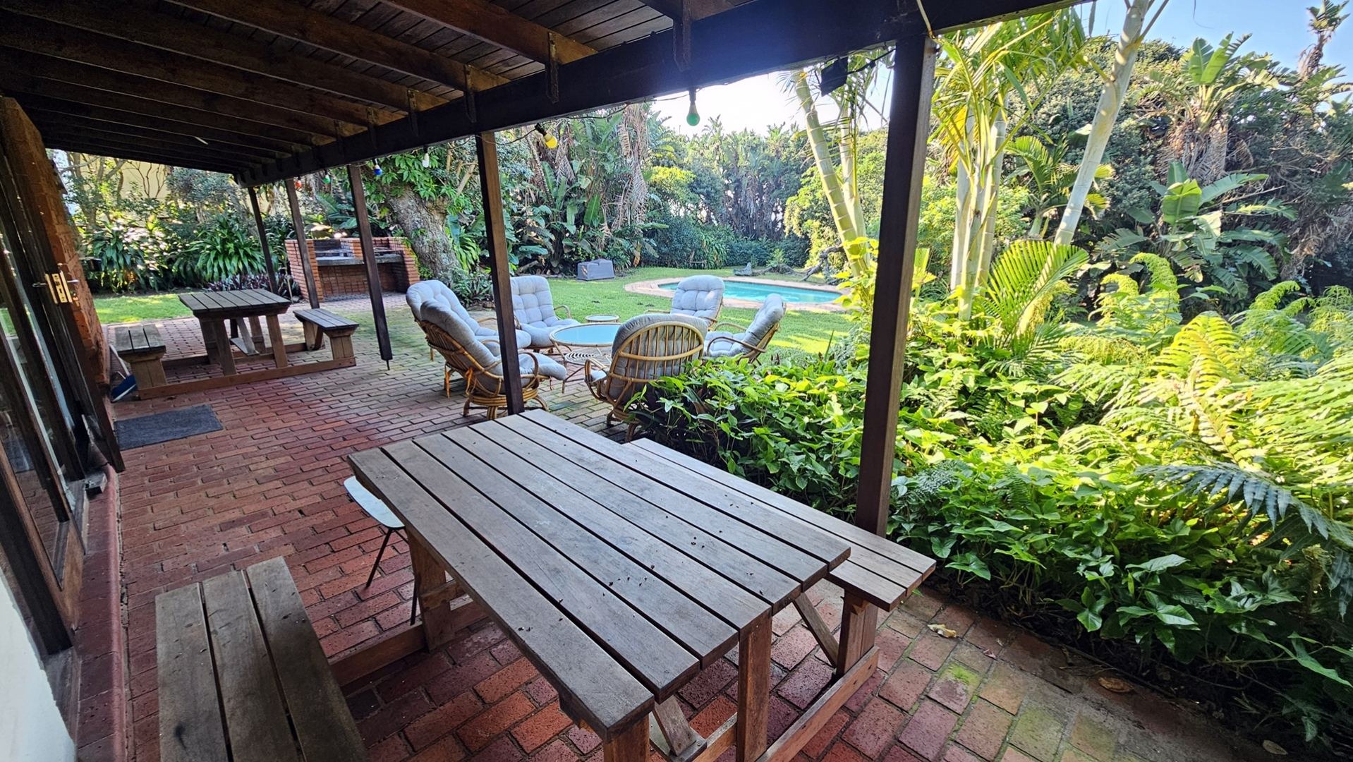 In addition to the main residence, a separate one-bedroom flatlet provides versatility for accommodating guests or generating rental income. Practical amenities abound, including a dedicated laundry area, ensuring that daily tasks are effortlessly managed. Outside, the meticulously landscaped gardens enchant with their lush greenery, providing a serene backdrop to the sparkling swimming pool—a refreshing oasis on warm days. Entertaining is a delight with the built-in braai, perfect for hosting gatherings and creating lasting memories with loved ones. Security is paramount, with the property fortified to offer peace of mind, allowing you to fully immerse yourself in the idyllic coastal lifestyle without worry.