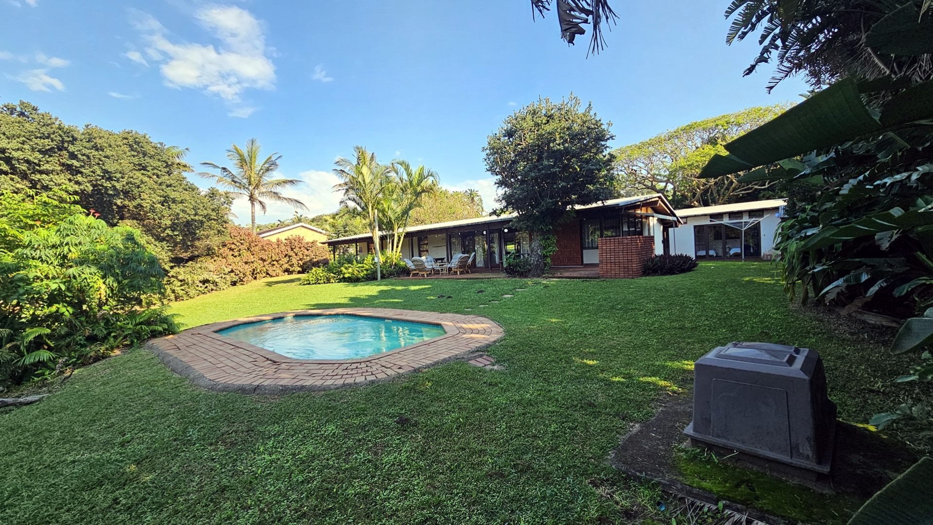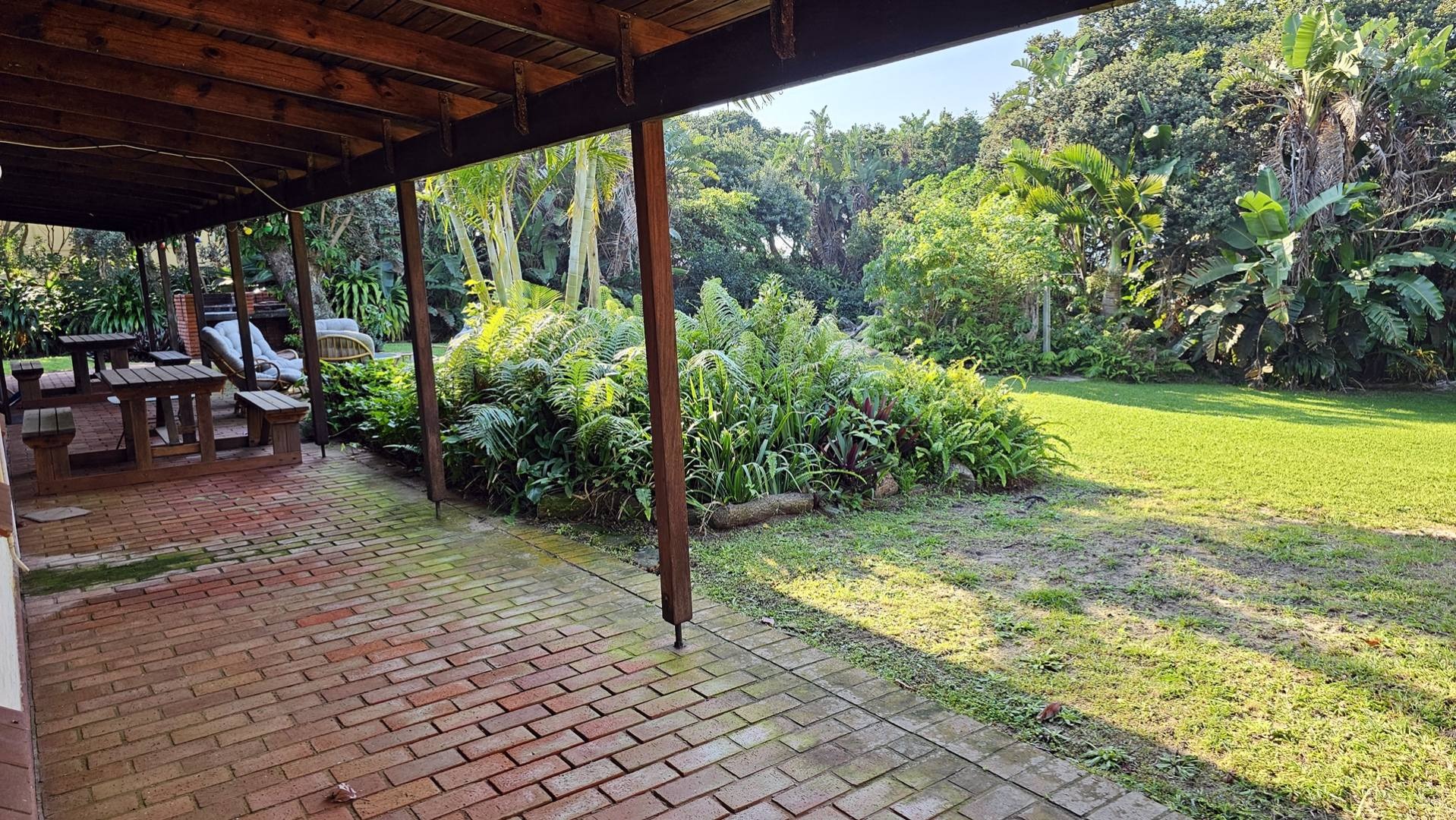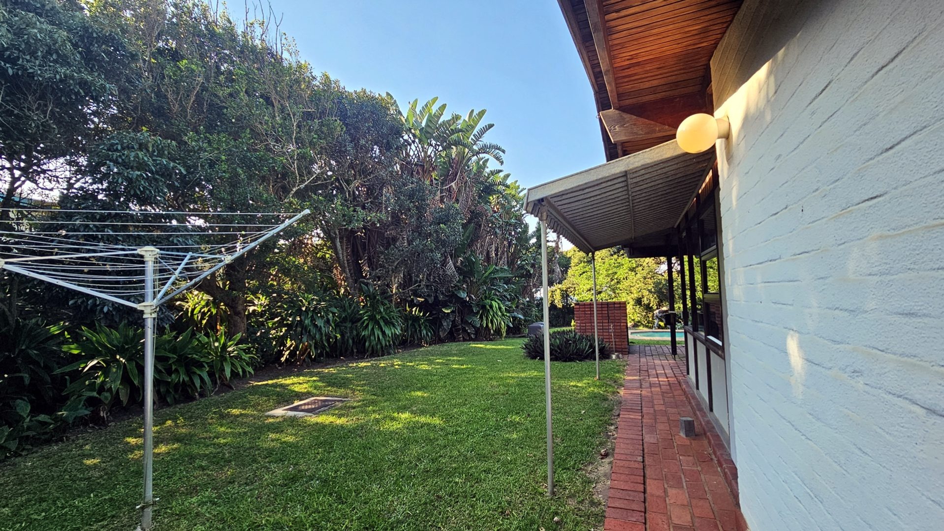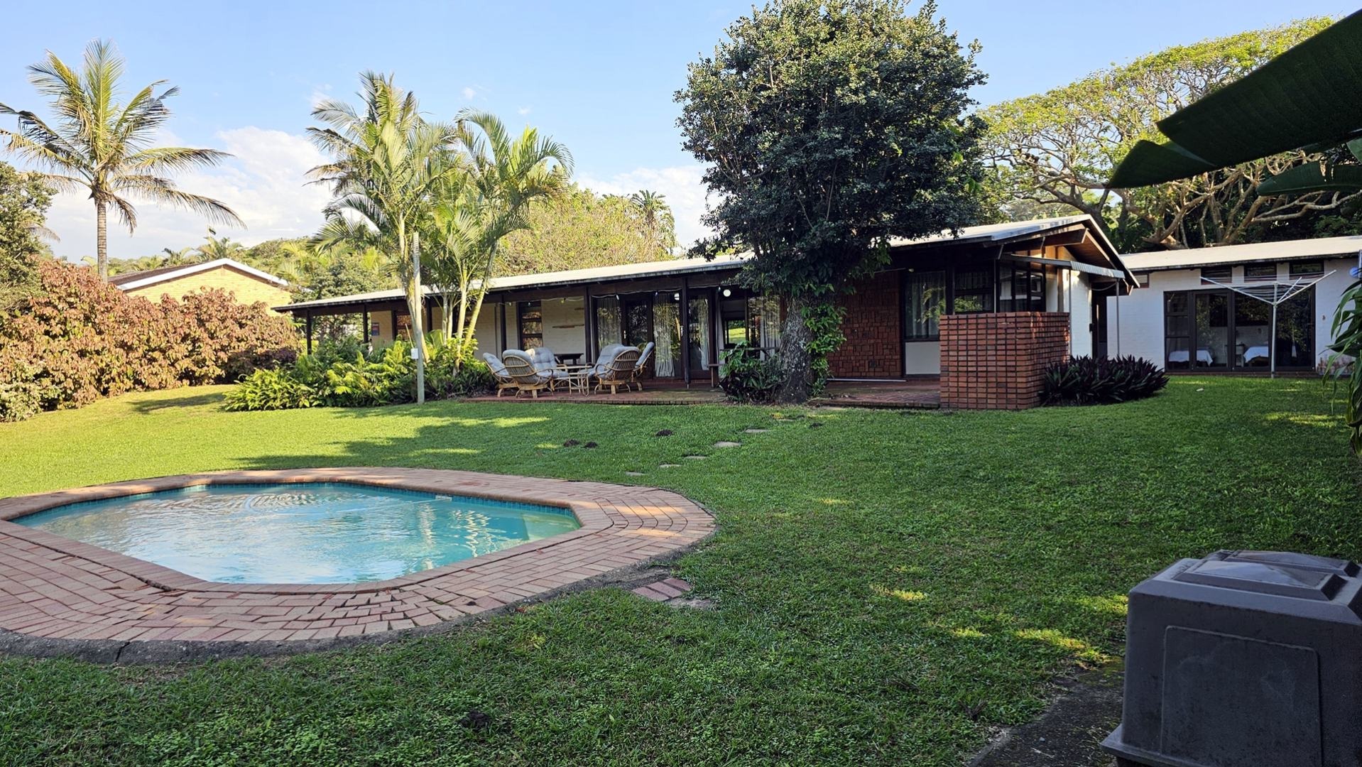 In addition to the main residence, a separate one-bedroom flatlet provides versatility for accommodating guests or generating rental income. Practical amenities abound, including a dedicated laundry area, ensuring that daily tasks are effortlessly managed. Outside, the meticulously landscaped gardens enchant with their lush greenery, providing a serene backdrop to the sparkling swimming pool—a refreshing oasis on warm days. Entertaining is a delight with the built-in braai, perfect for hosting gatherings and creating lasting memories with loved ones. Security is paramount, with the property fortified to offer peace of mind, allowing you to fully immerse yourself in the idyllic coastal lifestyle without worry.