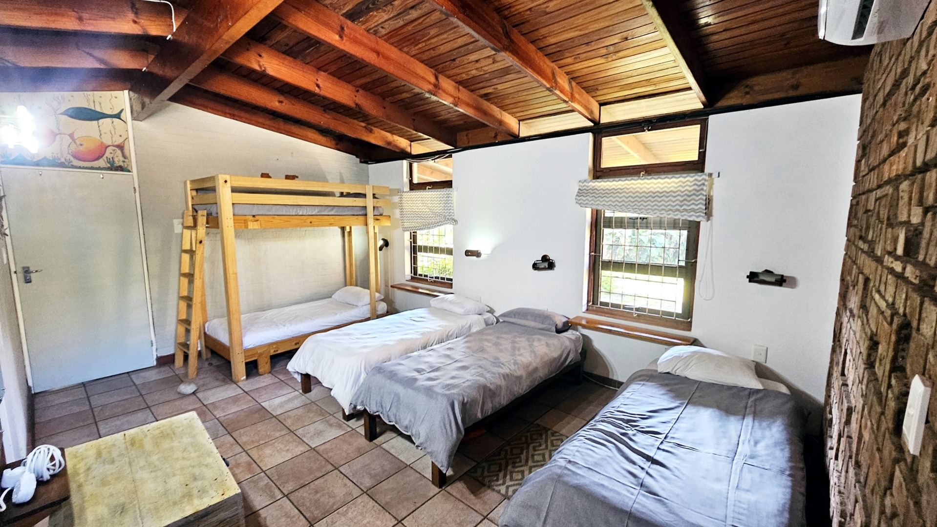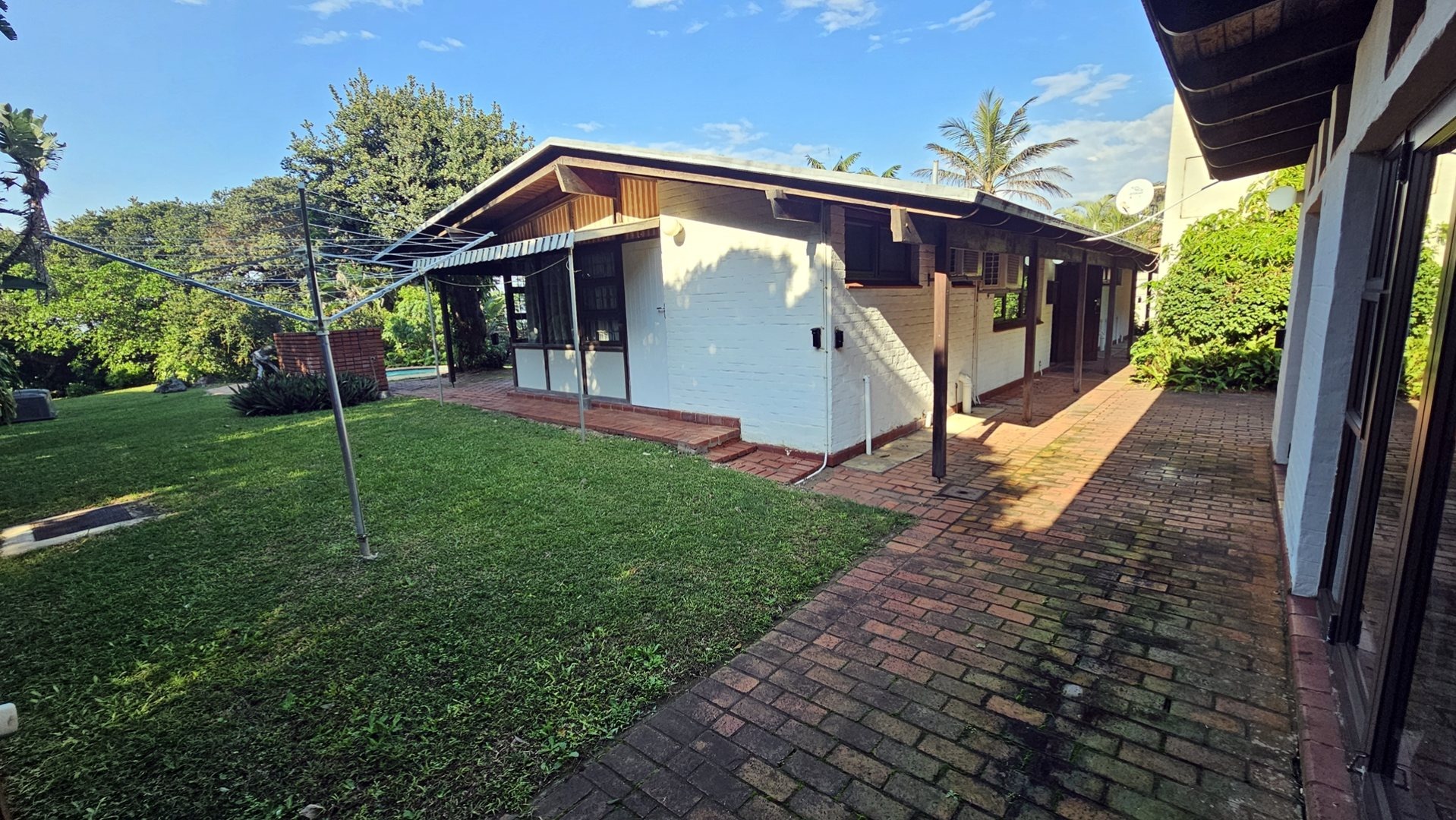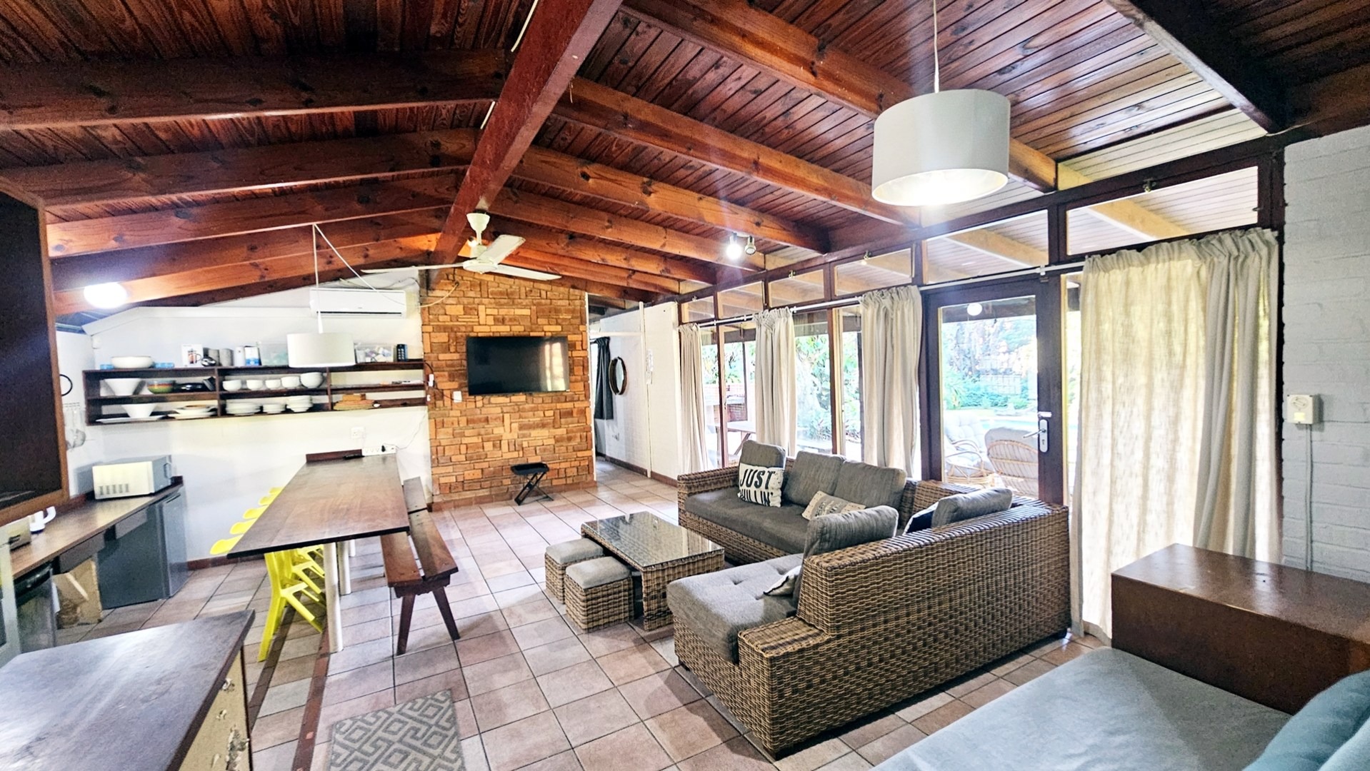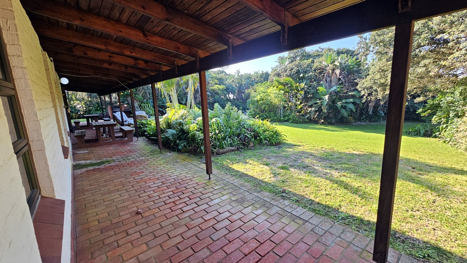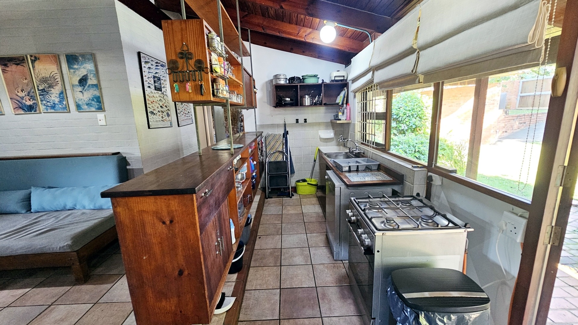 In addition to the main residence, a separate one-bedroom flatlet provides versatility for accommodating guests or generating rental income. Practical amenities abound, including a dedicated laundry area, ensuring that daily tasks are effortlessly managed. Outside, the meticulously landscaped gardens enchant with their lush greenery, providing a serene backdrop to the sparkling swimming pool—a refreshing oasis on warm days. Entertaining is a delight with the built-in braai, perfect for hosting gatherings and creating lasting memories with loved ones. Security is paramount, with the property fortified to offer peace of mind, allowing you to fully immerse yourself in the idyllic coastal lifestyle without worry.