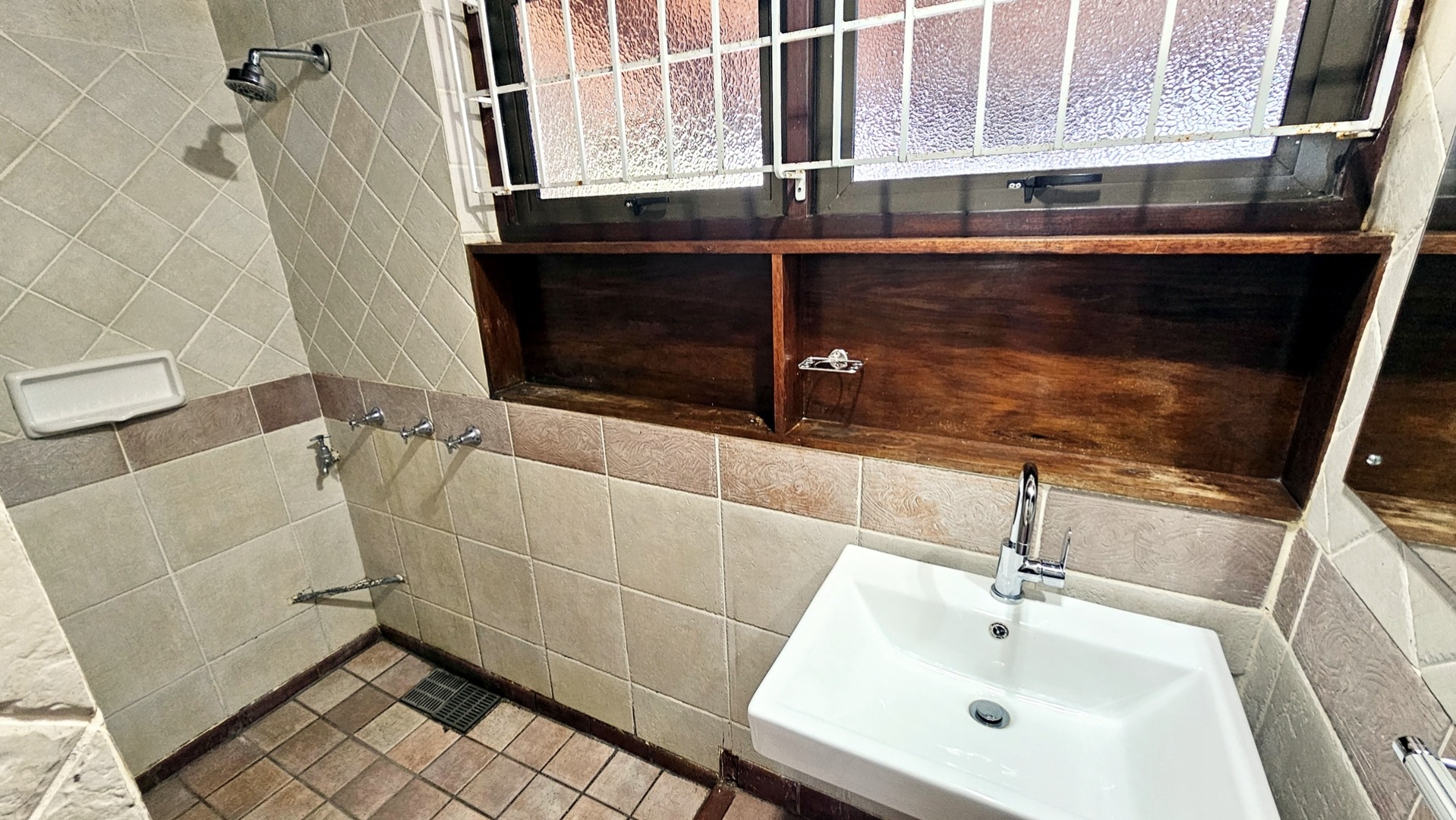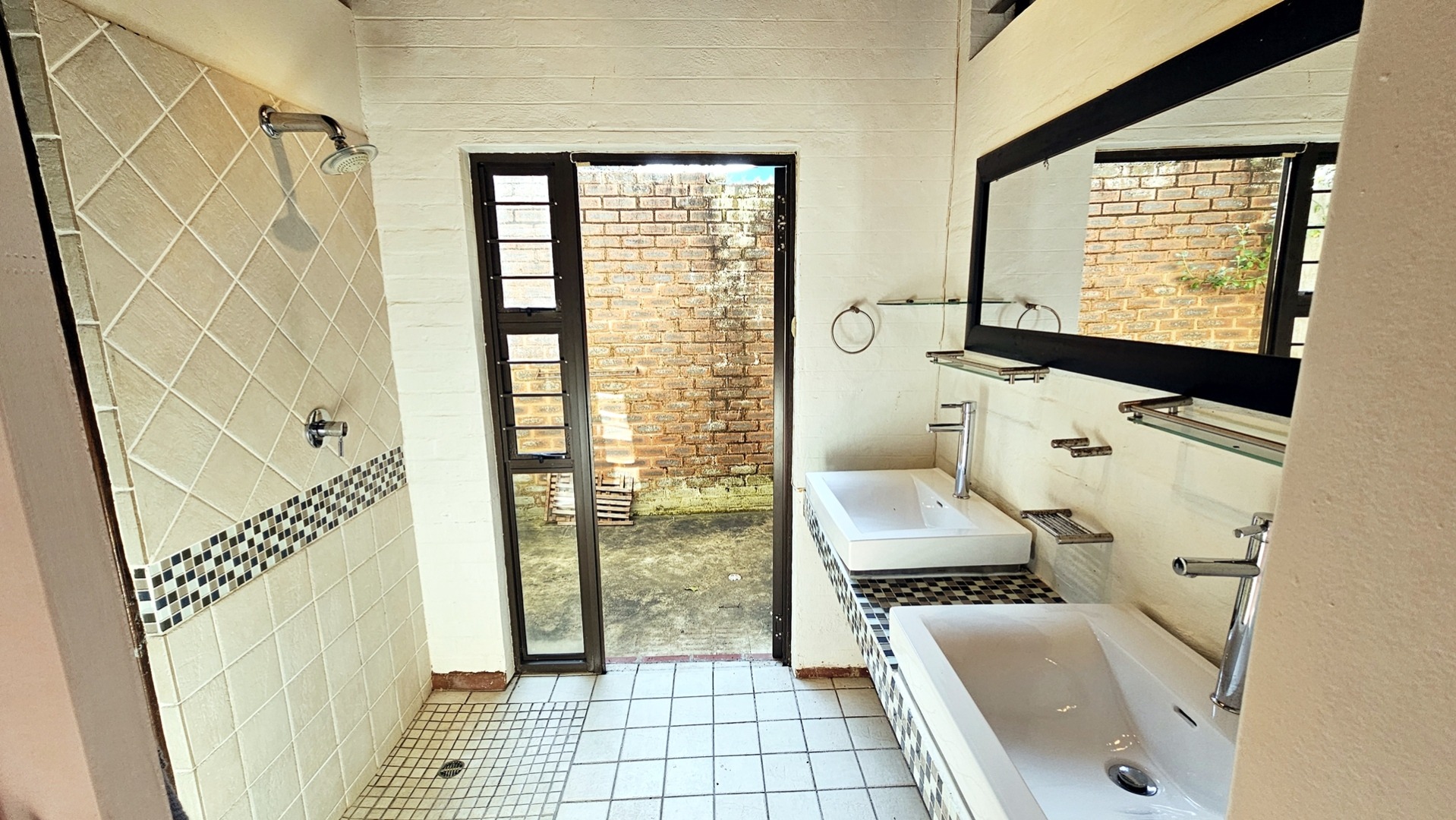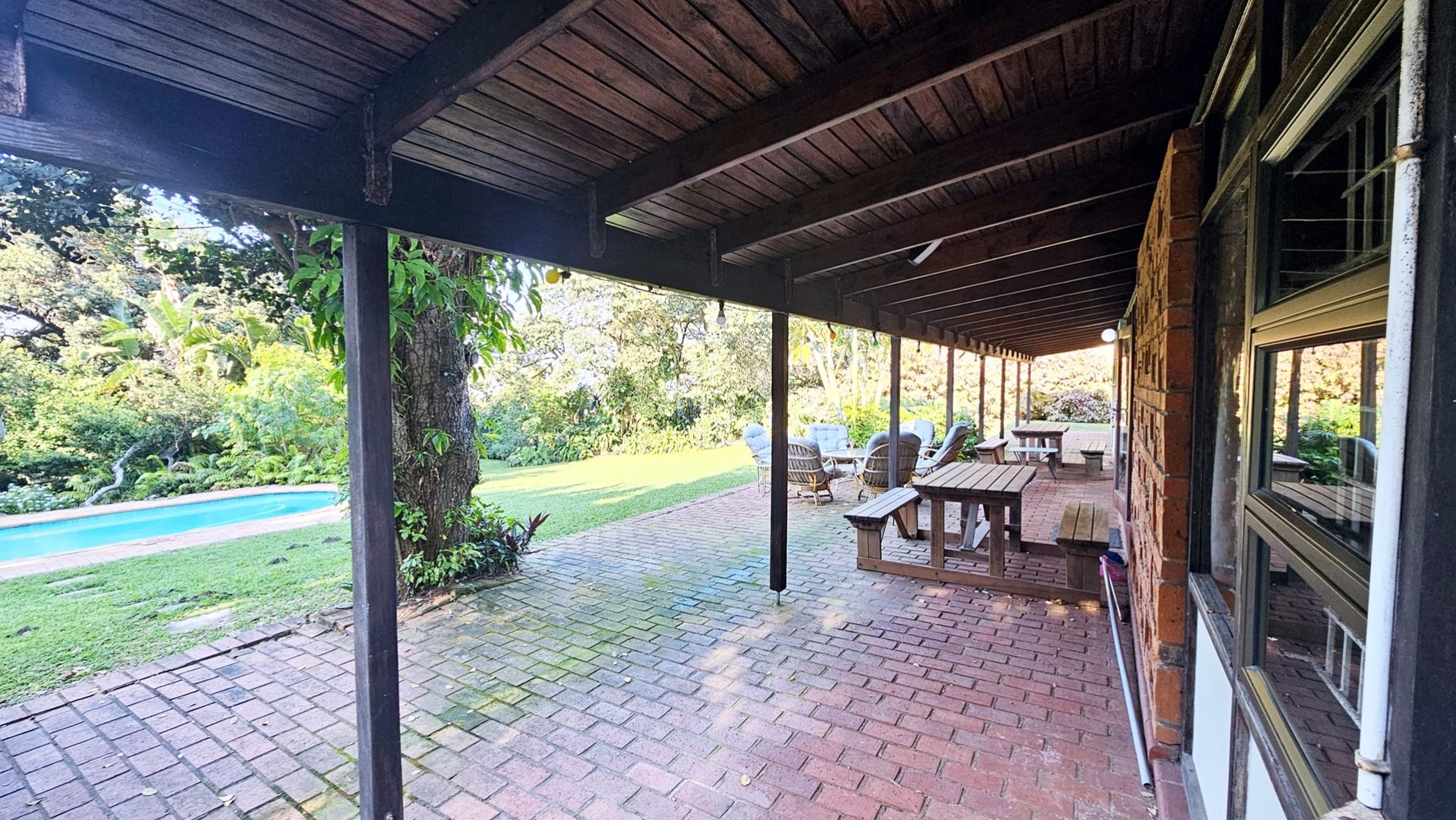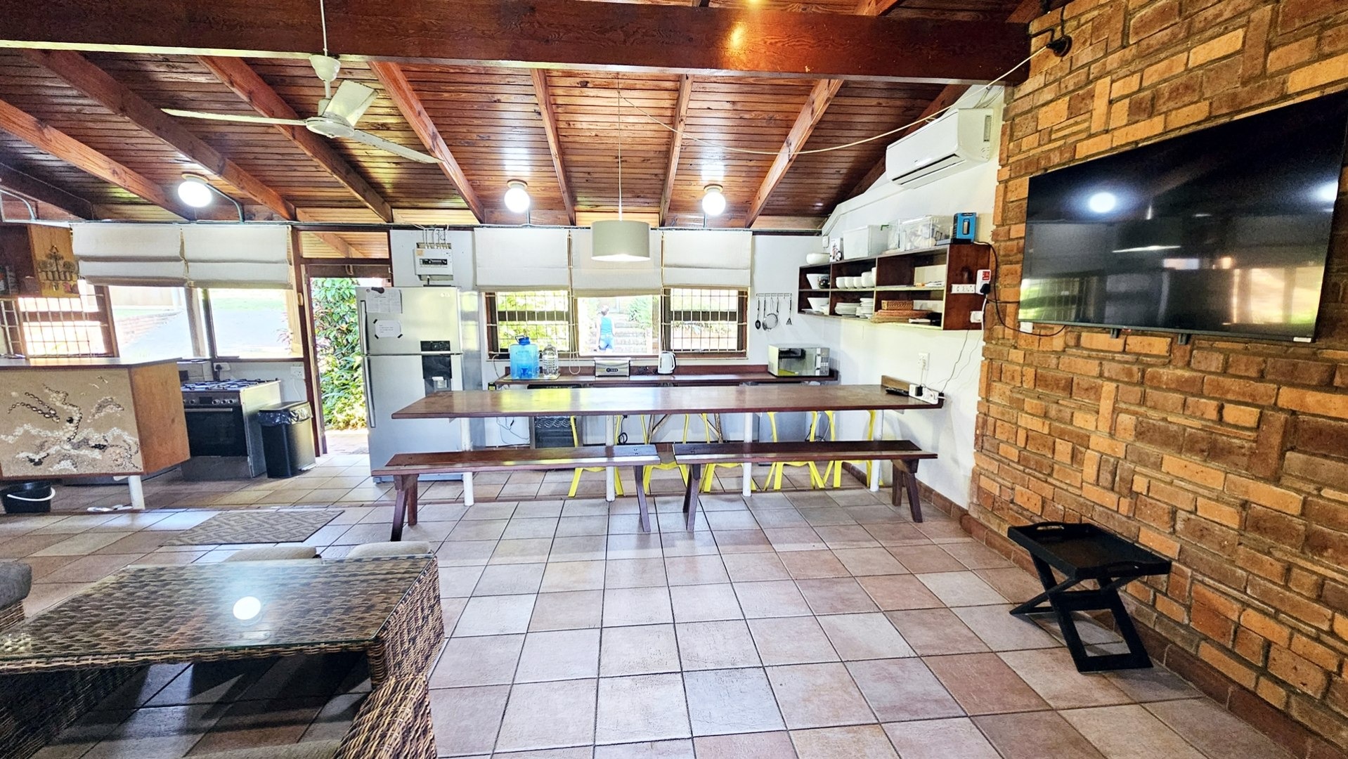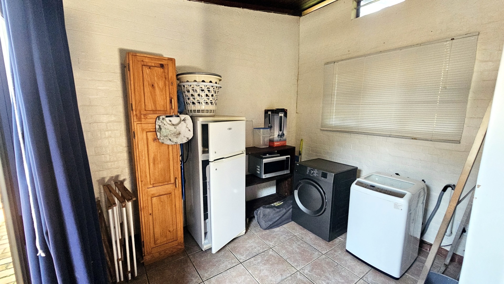 In addition to the main residence, a separate one-bedroom flatlet provides versatility for accommodating guests or generating rental income. Practical amenities abound, including a dedicated laundry area, ensuring that daily tasks are effortlessly managed. Outside, the meticulously landscaped gardens enchant with their lush greenery, providing a serene backdrop to the sparkling swimming pool—a refreshing oasis on warm days. Entertaining is a delight with the built-in braai, perfect for hosting gatherings and creating lasting memories with loved ones. Security is paramount, with the property fortified to offer peace of mind, allowing you to fully immerse yourself in the idyllic coastal lifestyle without worry.