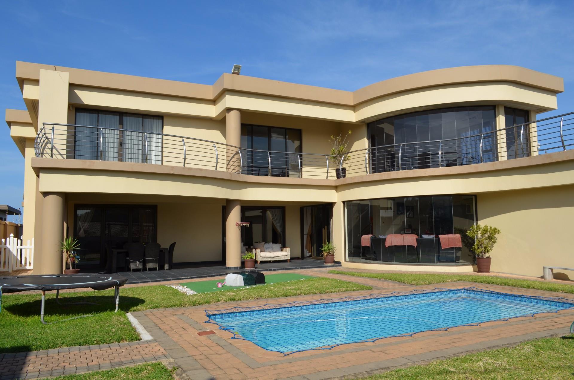 Discover this exceptional 5-bedroom, 4-bathroom residence nestled in the desirable coastal suburb of Oslo Beach, Port Shepstone. Ideal as a holiday home or permanent family residence, it boasts stunning scenic and sea views. Oslo Beach is renowned for its tranquil environment and beautiful beaches, offering an idyllic South African lifestyle. Step inside to find a thoughtfully designed interior featuring five spacious bedrooms, all air-conditioned for comfort. Four include private en-suite bathrooms, complemented by an additional guest toilet. The home also offers a dedicated family TV room, a well-appointed kitchen with a scullery and pantry, and a walk-in closet in the main bedroom, ensuring ample storage and convenience. The outdoor spaces are equally impressive, designed for relaxation and entertainment. Enjoy a refreshing swim in the private pool or unwind on the patio and balcony, soaking in the coastal breeze and views. The property features a well-maintained garden with an irrigation system, paving, and a gym. With four garages, eight covered parking bays, and four open parking spaces, vehicle accommodation is abundant. Security is paramount, with an alarm system, electric fencing, CCTV, and an access gate providing peace of mind. This home also embraces sustainable living with solar panels, a solar geyser, and water tanks, contributing to reduced utility costs and environmental impact. Fibre connectivity is available, ensuring high-speed internet access. Key Features: * 5 Bedrooms, 4 Bathrooms (4 En-suite) * Stunning Sea and Scenic Views * Private Pool, Patio, and Balcony * 4 Garages, 8 Covered, 4 Open Parking * Air Conditioning and Walk-in Closet * Modern Kitchen with Scullery & Pantry * Advanced Security (Alarm, CCTV, Electric Fence) * Eco-friendly: Solar Panels, Solar Geyser, Water Tanks * Fibre Ready & Pet-Friendly Garden
