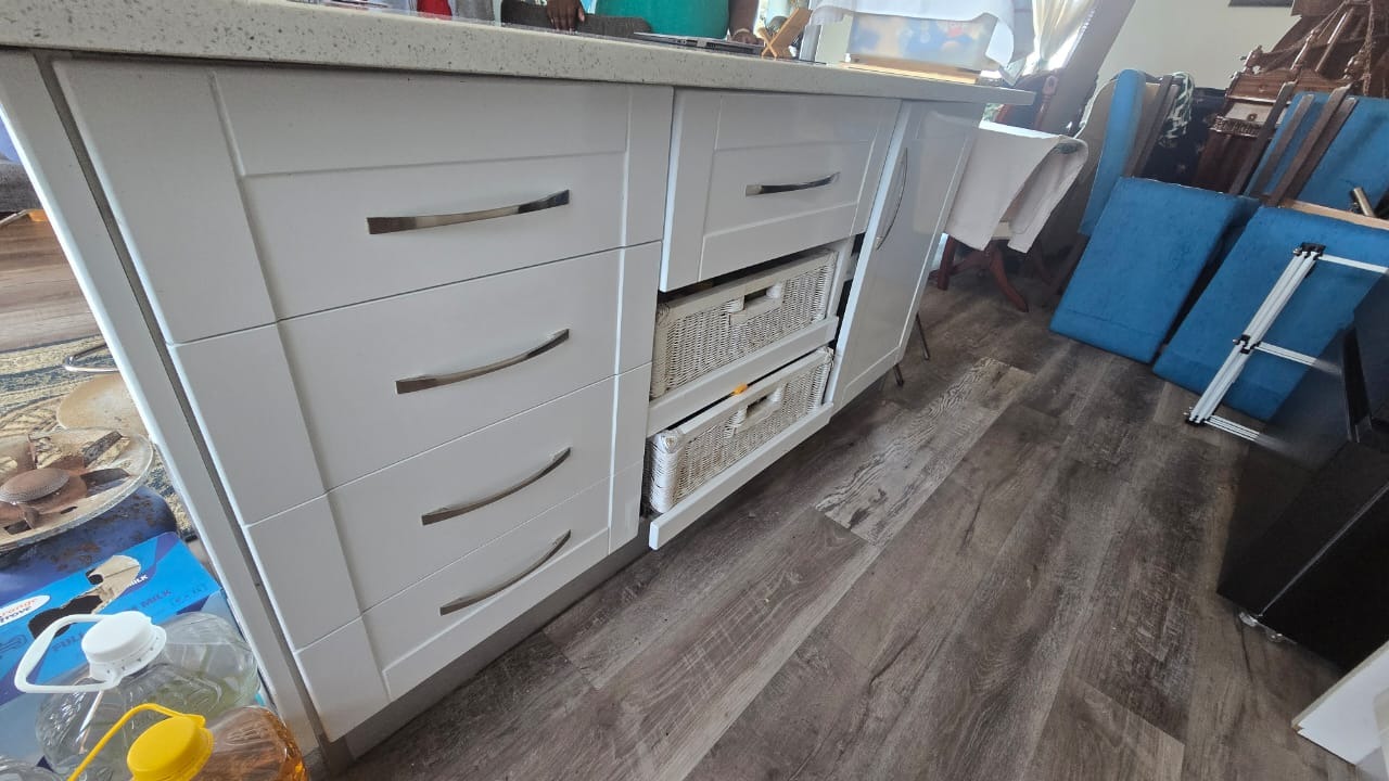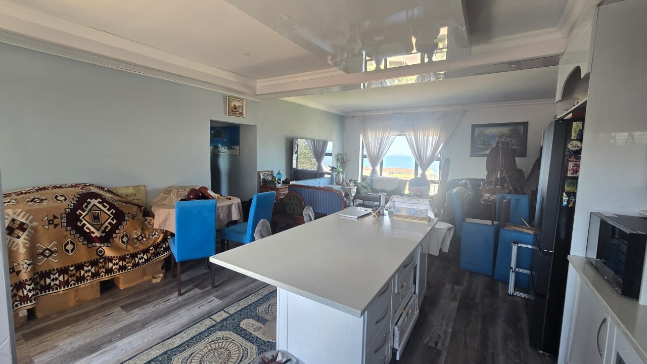 kitchen flows seamlessly into a spacious open-plan lounge and dining area, perfect for entertaining while soaking in the sea view.