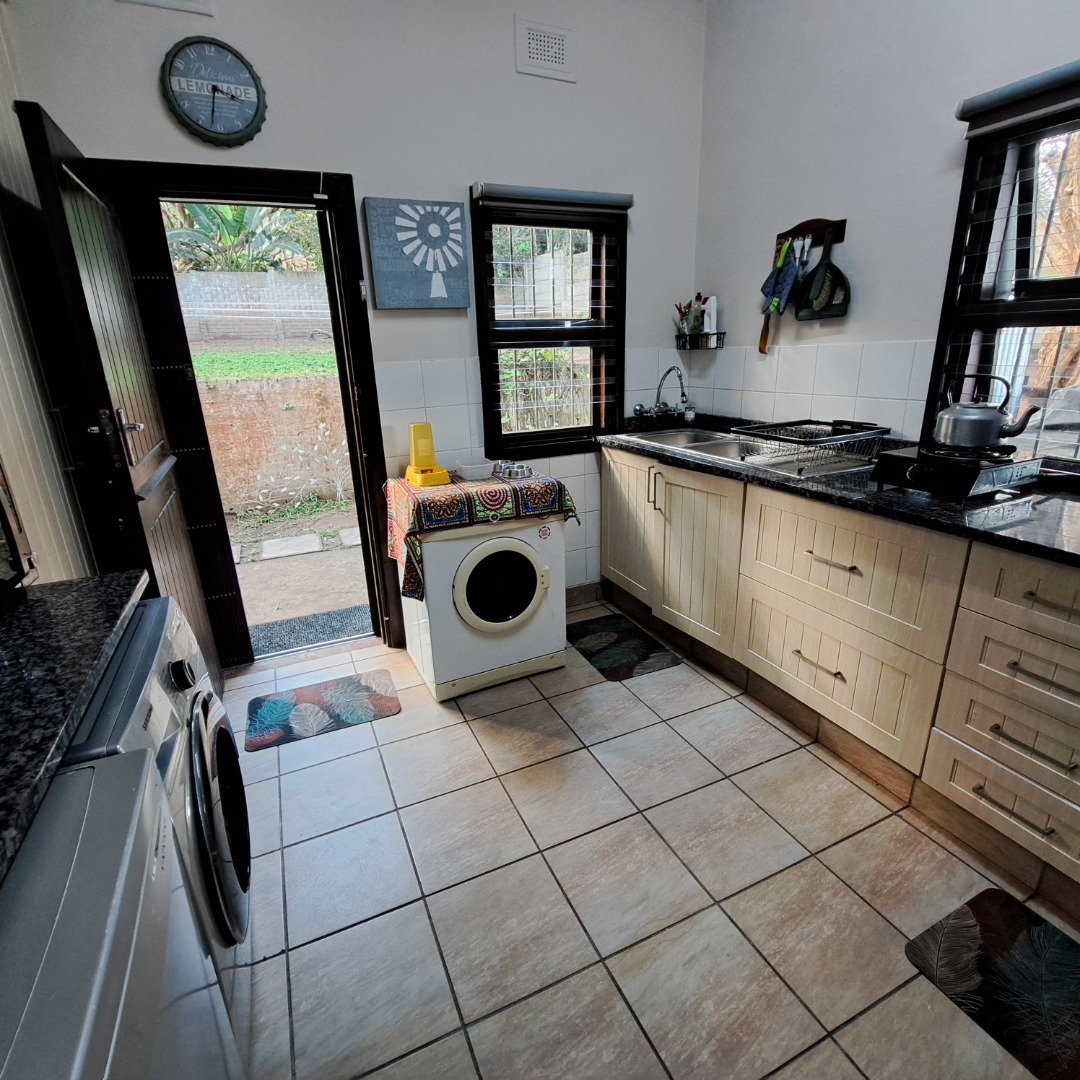 Security is well-addressed with burglar bars on windows, an access gate, and CCTV surveillance, providing peace of mind. The home is also equipped with modern conveniences such as fibre connectivity, a battery inverter for power backup, and water tanks, enhancing self-sufficiency and comfort.