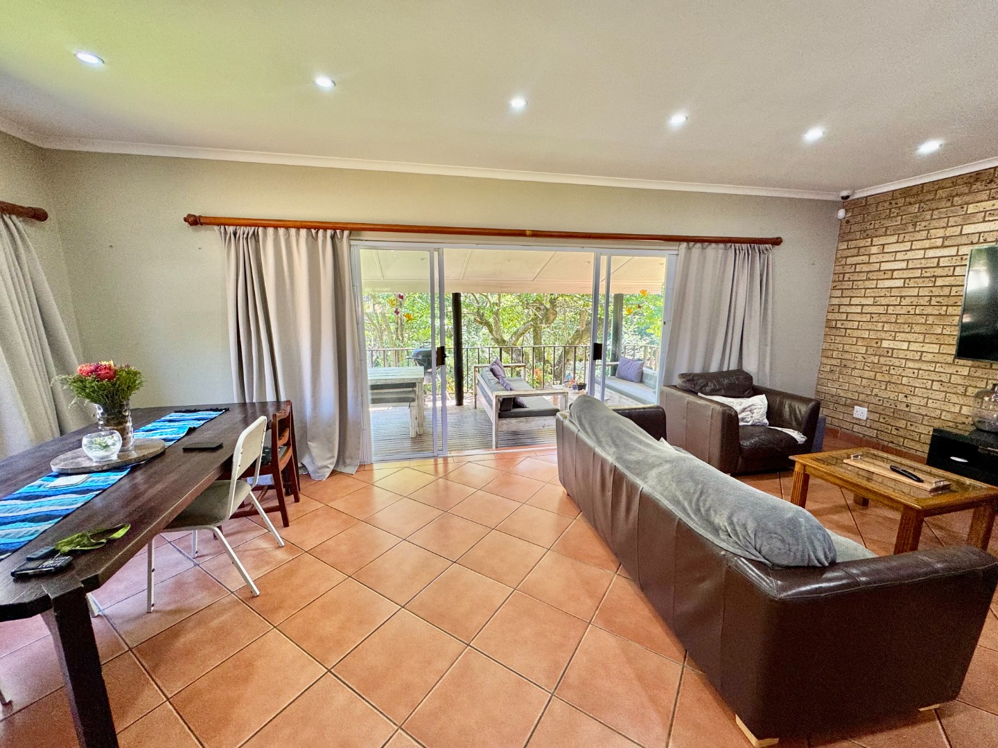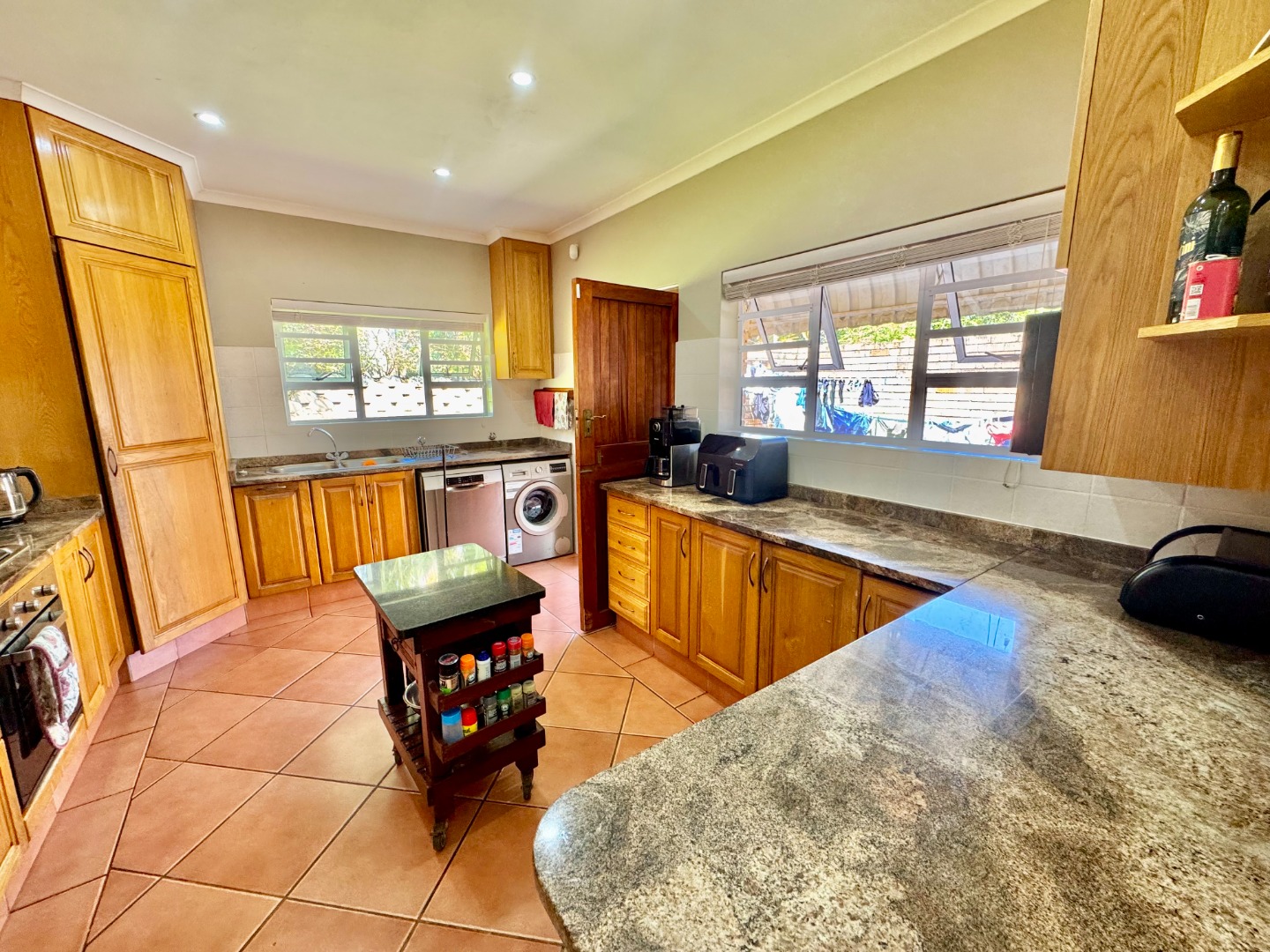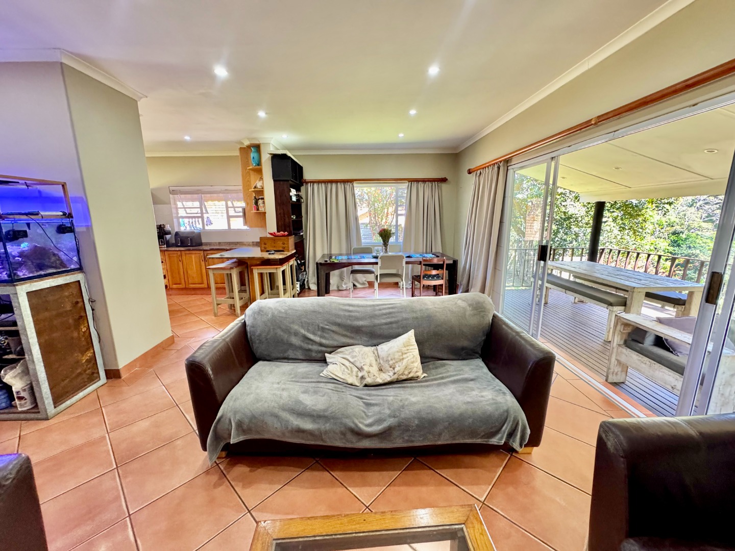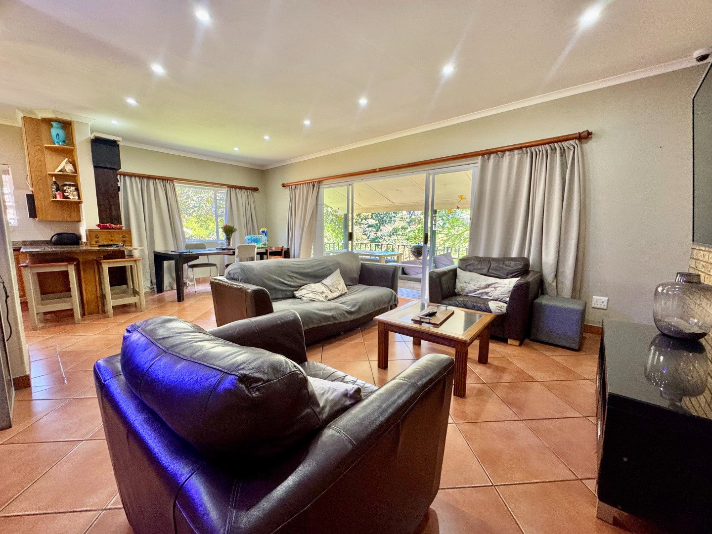 The living and dining spaces extend effortlessly to an undercover patio that overlooks the tranquil garden, offering an ideal setting for relaxation or entertaining. Additional features include double automated garages, a single carport, a top-of-the-range solar system, and a smart security system with phone-controlled surveillance cameras. At the edge of the picturesque garden lies a natural stream that attracts gentle wildlife such as duikers and porcupines, adding a touch of magic to the setting. This property is a hidden gem that perfectly balances elegance, sustainability, and serenity. Do not miss your chance to call it home as it will not stay on the market for long.