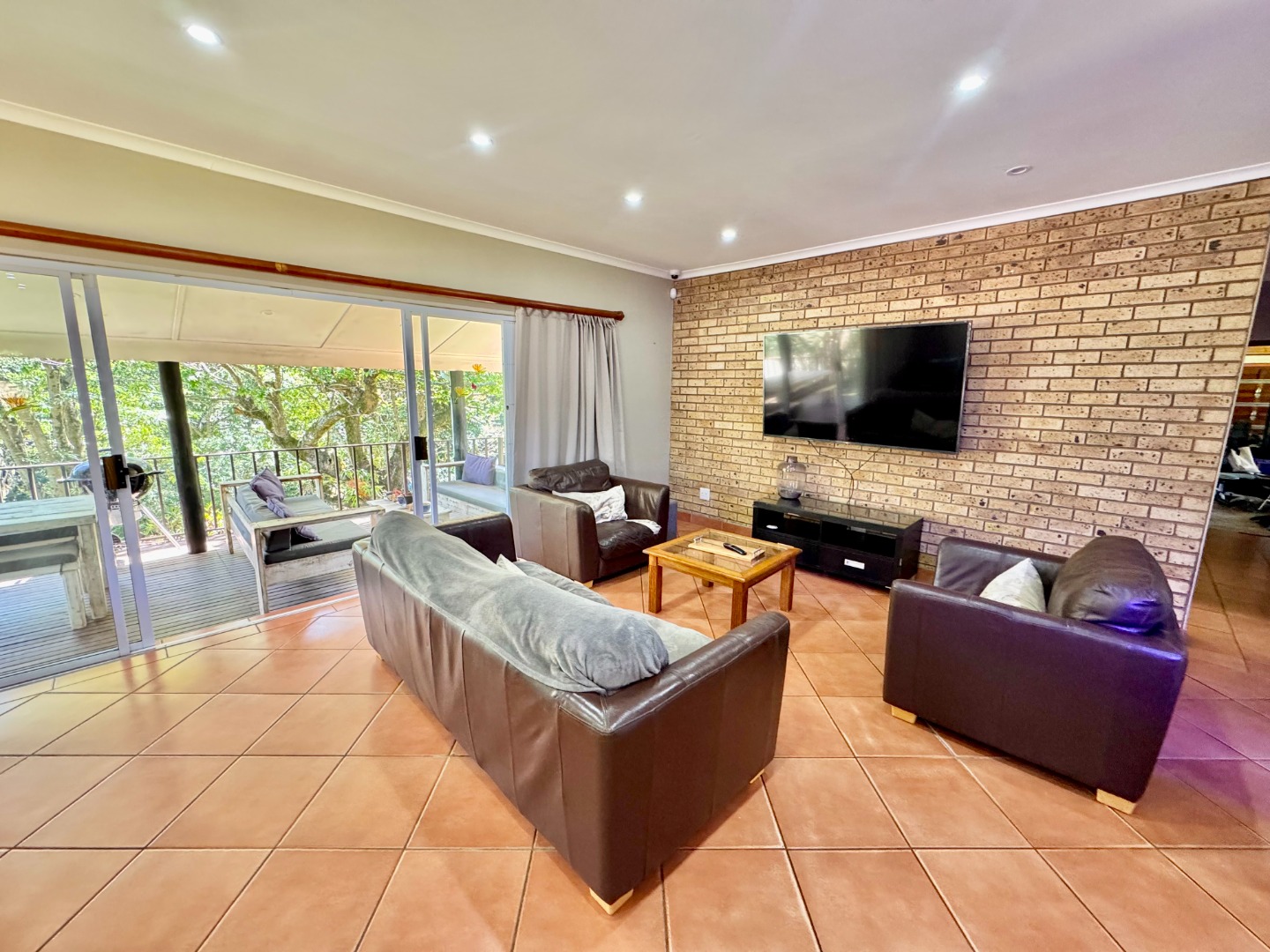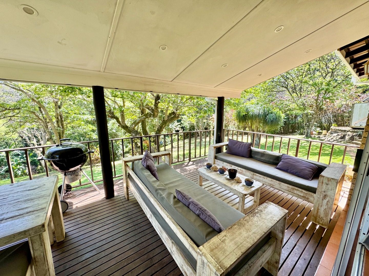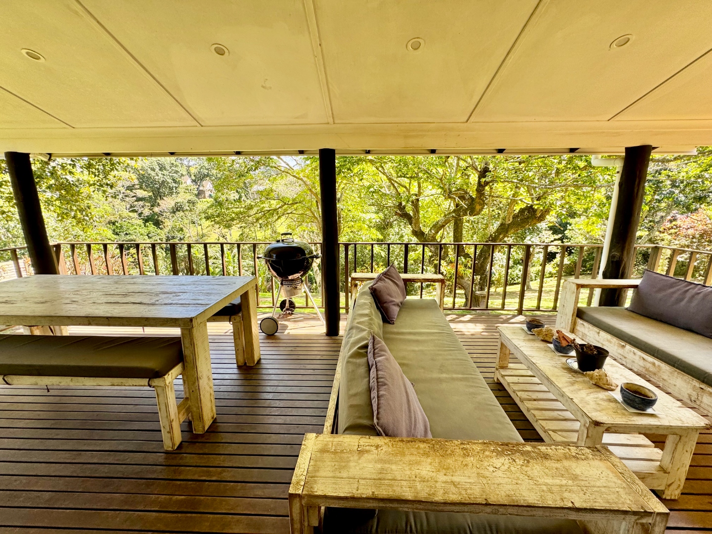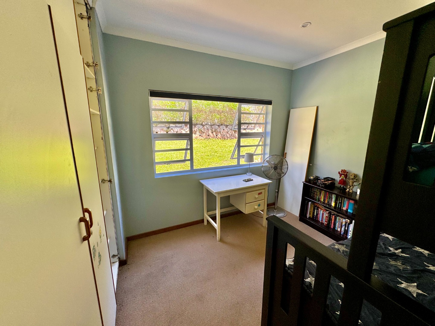 The living and dining spaces extend effortlessly to an undercover patio that overlooks the tranquil garden, offering an ideal setting for relaxation or entertaining. Additional features include double automated garages, a single carport, a top-of-the-range solar system, and a smart security system with phone-controlled surveillance cameras. At the edge of the picturesque garden lies a natural stream that attracts gentle wildlife such as duikers and porcupines, adding a touch of magic to the setting. This property is a hidden gem that perfectly balances elegance, sustainability, and serenity. Do not miss your chance to call it home as it will not stay on the market for long.